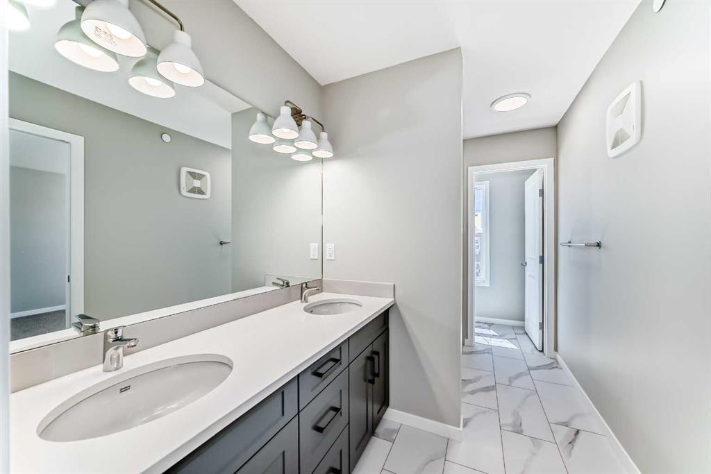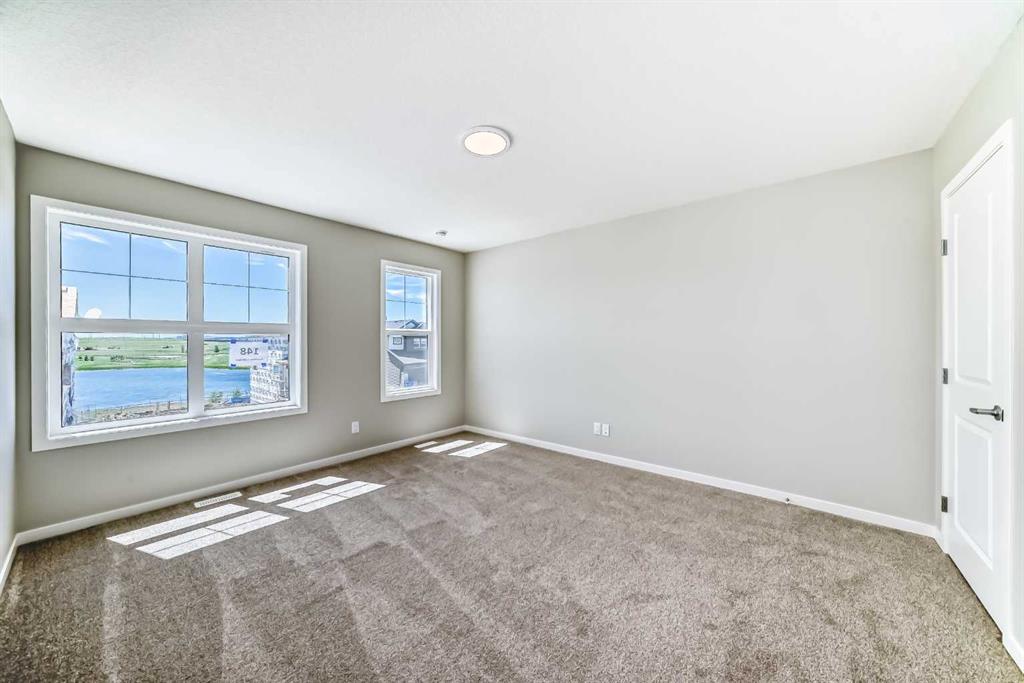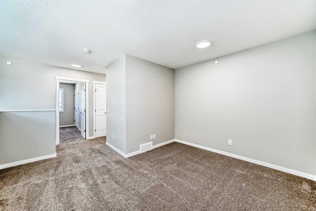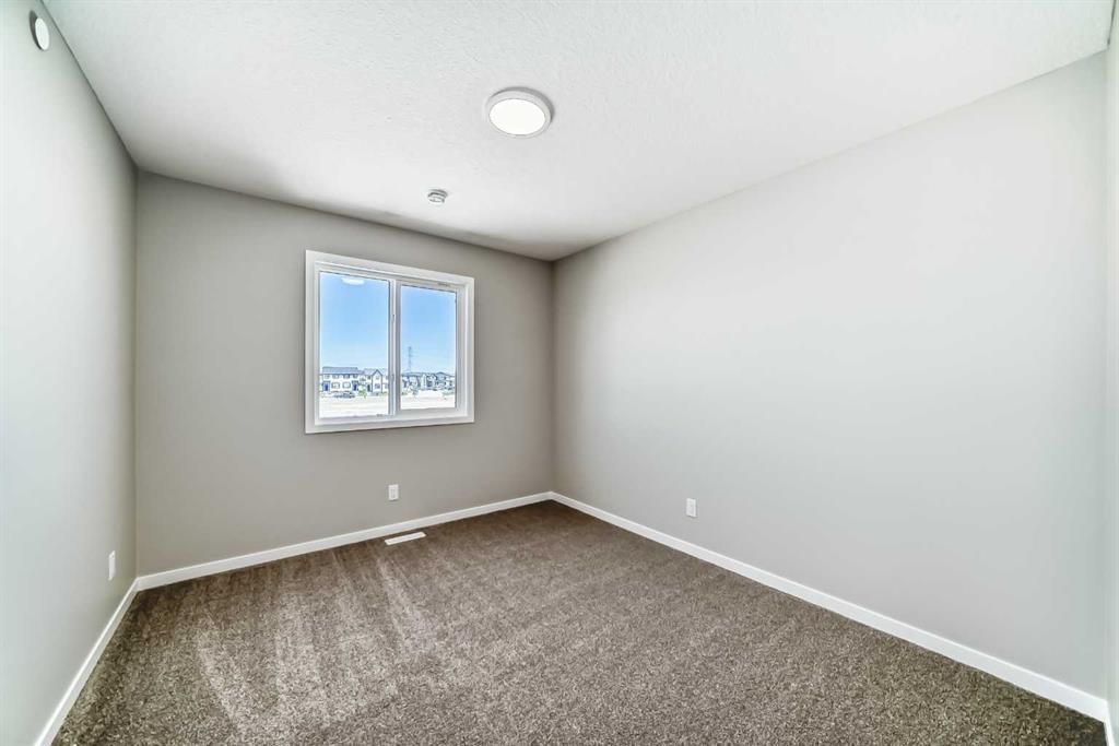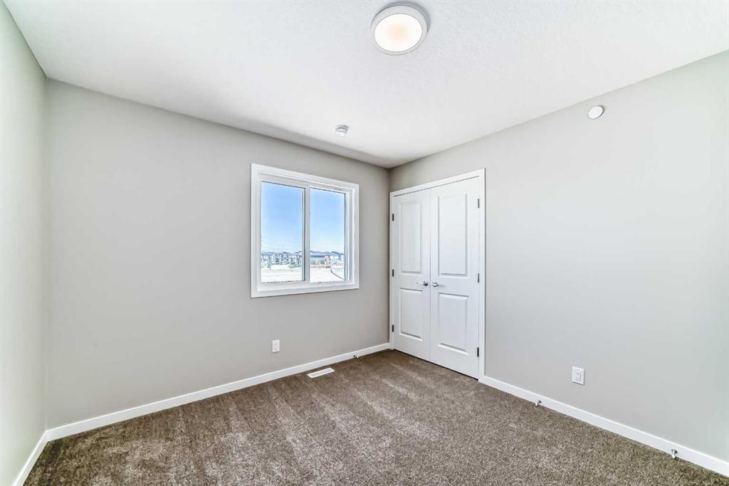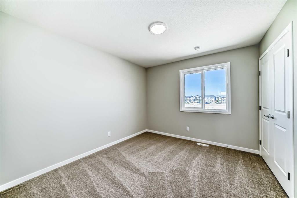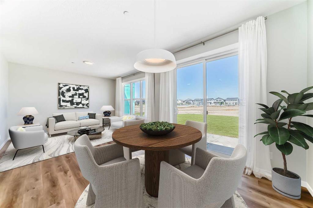 Welcome to the exquisite "Carisa" floor plan, where nearly 1,700 SqFt of thoughtfully designed space combines modern elegance with unmatched functionality. This home’s layout is tailored for both comfort and style, creating the perfect setting for family living and entertaining. As you step inside, you’ll be greeted by the warmth and durability of vinyl plank flooring that flows seamlessly throughout the main level, accentuating the modern finishes and striking architectural details. Natural light pours in through the back wall of windows, infusing the open-concept living areas with an inviting ambiance. Dual sliding patio doors extend your living space to the expansive backyard, ready for your personal touch to create the ultimate indoor-outdoor oasis. At the heart of the home, the kitchen is a chef’s dream. Featuring two-tone cabinetry, sleek quartz countertops, and a stylish tile backsplash that wraps elegantly around a chimney-style hood fan, this kitchen is as functional as it is beautiful. Stainless steel appliances and a thoughtfully positioned mudroom with direct kitchen access ensure that even grocery days are effortless. A cozy dining nook and a spacious living room, are perfectly positioned to enjoy the home’s abundant natural light. The smartly designed pocket office offers the perfect work-from-home setup or a dedicated homework space for the kids. Upstairs, a versatile bonus room serves as the ideal family retreat, separating the serene primary suite from the secondary bedrooms. The primary suite is a tranquil haven, complete with a luxurious 4-piece ensuite featuring an oversized shower and ample space to unwind. The two additional bedrooms are generously sized, making them ideal for children or guests. With an upstairs laundry room and a stylish 4-piece bathroom, convenience is woven into every detail of this home. **This home also comes complete with full front and backyard landscaping, including sod, mulch on the side yards, and trees/shrubs in the front as per community guidelines. Located in the vibrant southeast Calgary community of Hotchkiss, this home offers more than just a beautiful living space. Residents enjoy stunning mountain views, 51 acres of park space, interconnected walking paths, and a central wetland. Designed with families in mind, Hotchkiss is a community where you can truly belong and thrive.