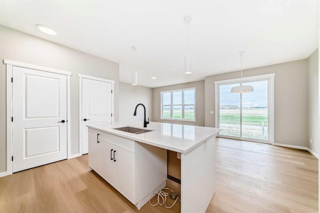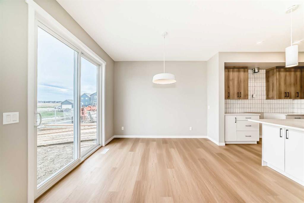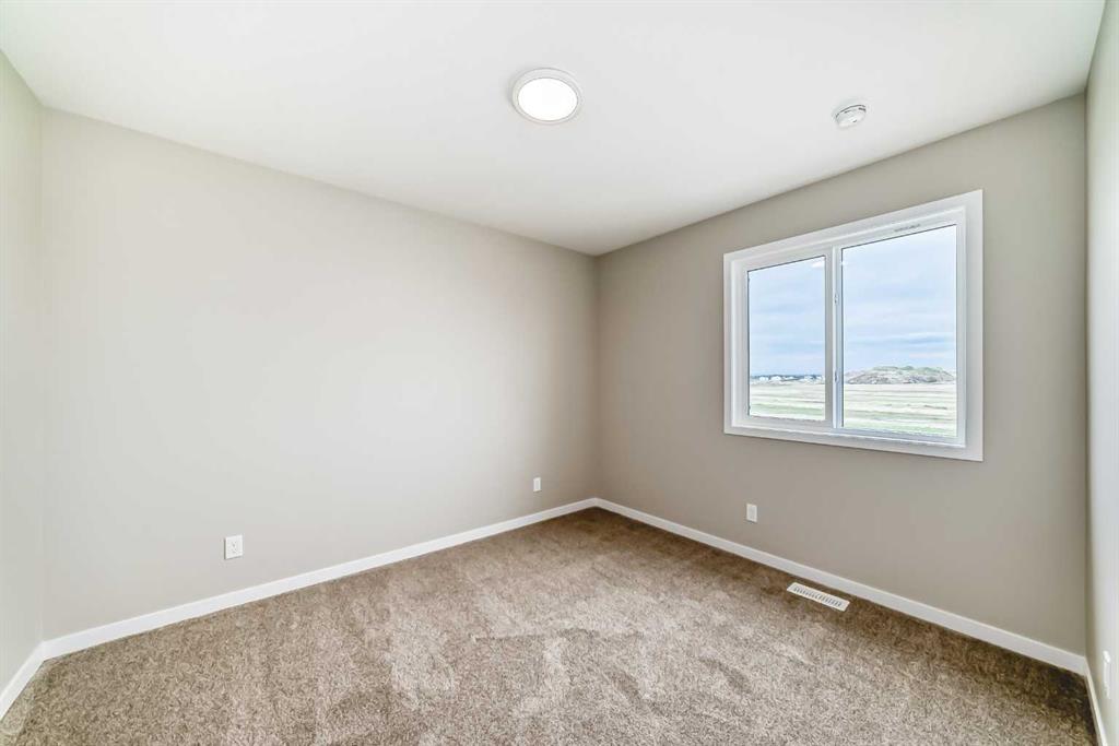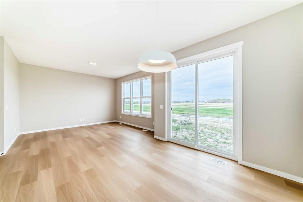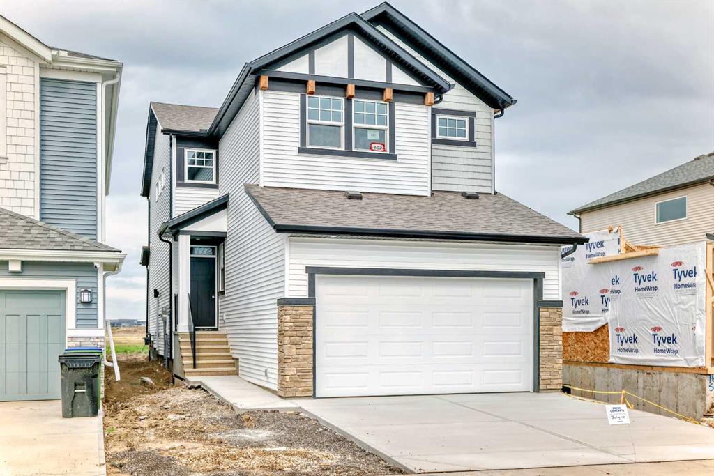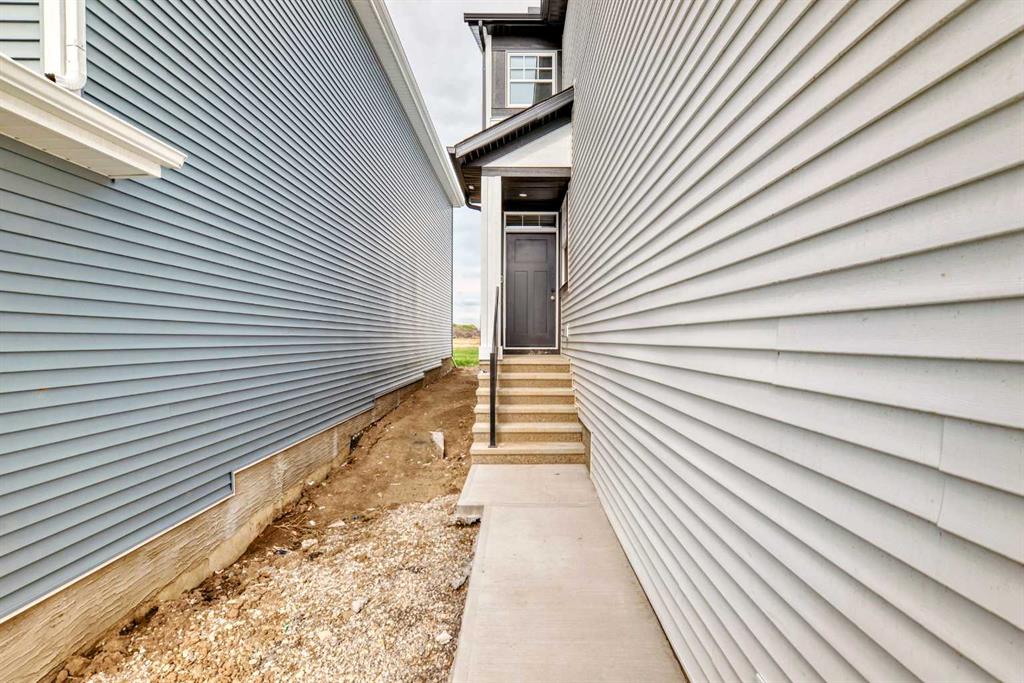 Welcome to the Kalara in Rangeview – where thoughtful design meets everyday comfort at an approachable price point. This beautifully designed spec home is built to support the needs of modern families, offering a perfect blend of functionality, flexibility, and style. The open-concept main floor creates a natural flow between the kitchen, dining, and lifestyle areas—ideal for entertaining or relaxed family living. Thanks to the south-facing backyard, natural light fills the main living space, adding warmth and energy throughout the day. The kitchen shines as the heart of the home, featuring pot lights, a built-in microwave, sleek chimney-style hood fan, and carefully selected finishes that marry form with function. A spacious walk-in pantry adds practical storage and organization for busy households. A main floor flex room offers a versatile space that can serve as a home office, study nook, or playroom—whatever suits your family’s needs. Upstairs, a centrally located loft provides even more flexibility, whether used as a cozy media area or a place for the kids to unwind. The nearby laundry room makes daily chores convenient and efficient. The primary suite offers a peaceful retreat, complete with a stylish ensuite and generous walk-in closet. Three additional bedrooms upstairs provide plenty of room for a growing family. This home also includes a 9-foot foundation and a separate side entrance, offering potential for future basement development (subject to city approval)—whether that’s a guest suite, income helper, or extended family space. Rangeview is Calgary’s first garden-to-table community, thoughtfully planned to encourage connection, sustainability, and a true sense of neighborhood. Enjoy an abundance of parks, pathways, community gardens, and gathering spaces, all while being close to schools, shopping, and the South Health Campus.