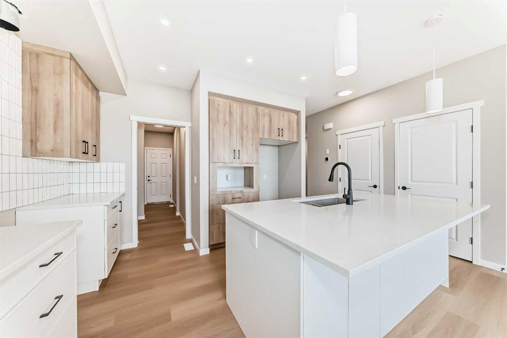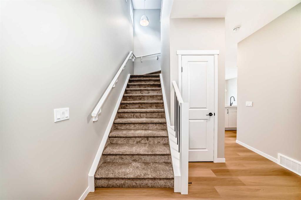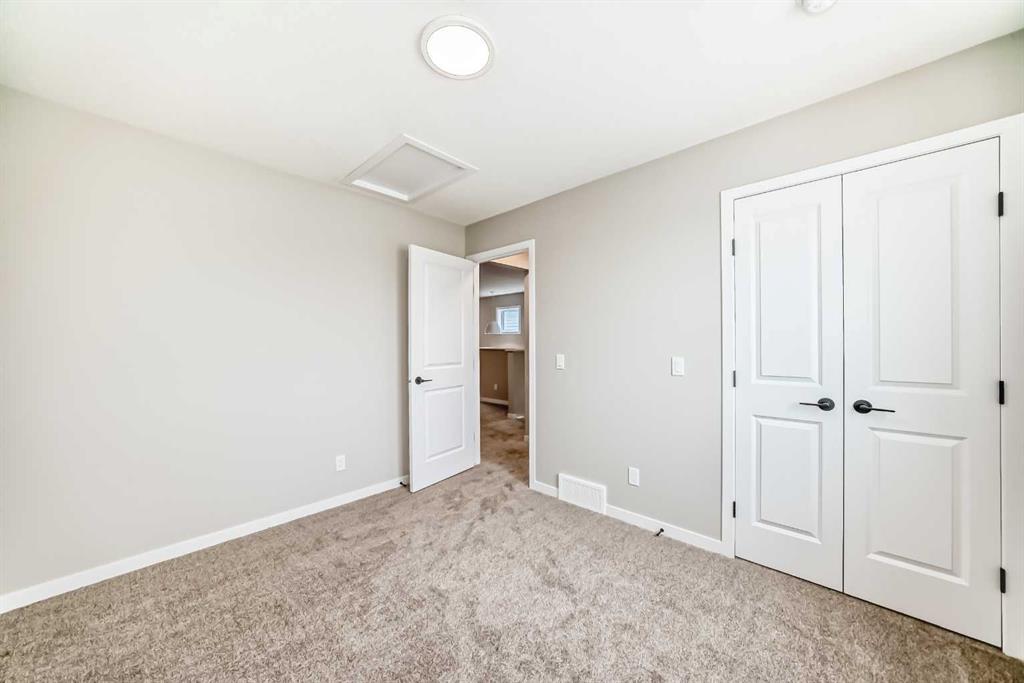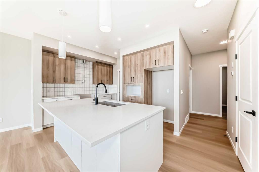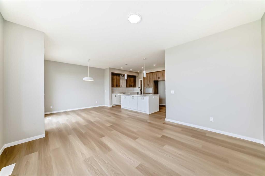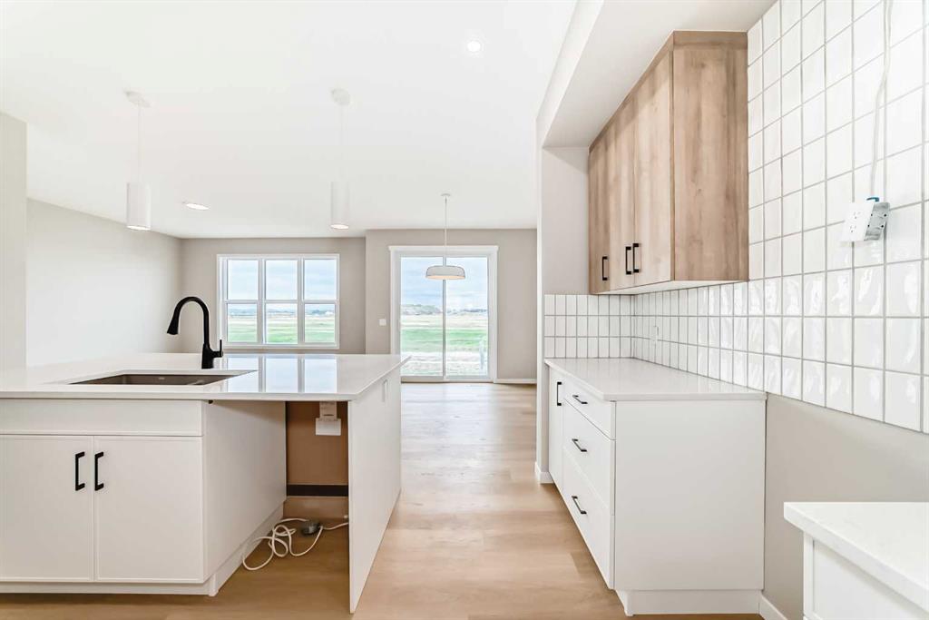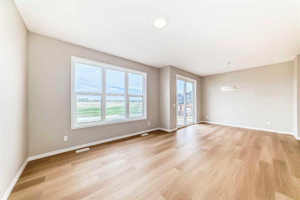 Welcome to the Kalara in Rangeview – where thoughtful design meets everyday comfort at an approachable price point. This beautifully designed spec home is built to support the needs of modern families, offering a perfect blend of functionality, flexibility, and style. The open-concept main floor creates a natural flow between the kitchen, dining, and lifestyle areas—ideal for entertaining or relaxed family living. Thanks to the south-facing backyard, natural light fills the main living space, adding warmth and energy throughout the day. The kitchen shines as the heart of the home, featuring pot lights, a built-in microwave, sleek chimney-style hood fan, and carefully selected finishes that marry form with function. A spacious walk-in pantry adds practical storage and organization for busy households. A main floor flex room offers a versatile space that can serve as a home office, study nook, or playroom—whatever suits your family’s needs. Upstairs, a centrally located loft provides even more flexibility, whether used as a cozy media area or a place for the kids to unwind. The nearby laundry room makes daily chores convenient and efficient. The primary suite offers a peaceful retreat, complete with a stylish ensuite and generous walk-in closet. Three additional bedrooms upstairs provide plenty of room for a growing family. This home also includes a 9-foot foundation and a separate side entrance, offering potential for future basement development (subject to city approval)—whether that’s a guest suite, income helper, or extended family space. Rangeview is Calgary’s first garden-to-table community, thoughtfully planned to encourage connection, sustainability, and a true sense of neighborhood. Enjoy an abundance of parks, pathways, community gardens, and gathering spaces, all while being close to schools, shopping, and the South Health Campus.
