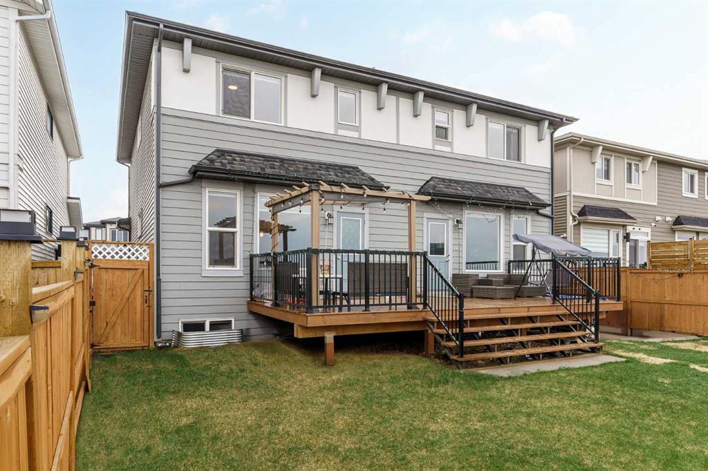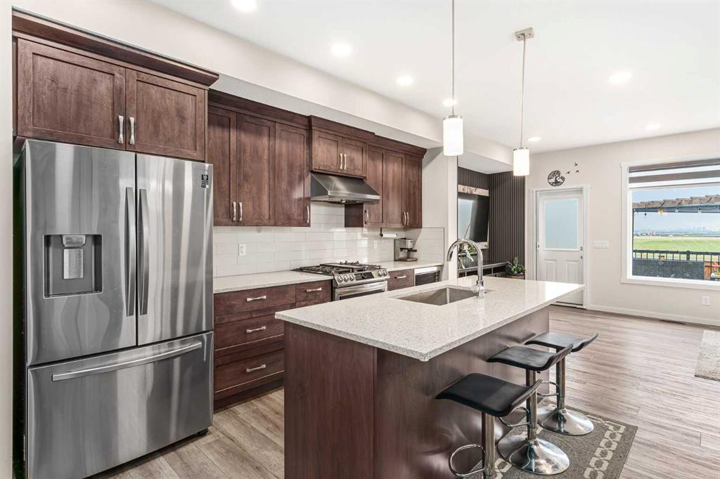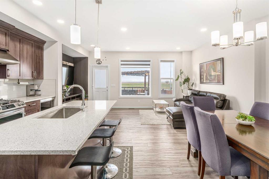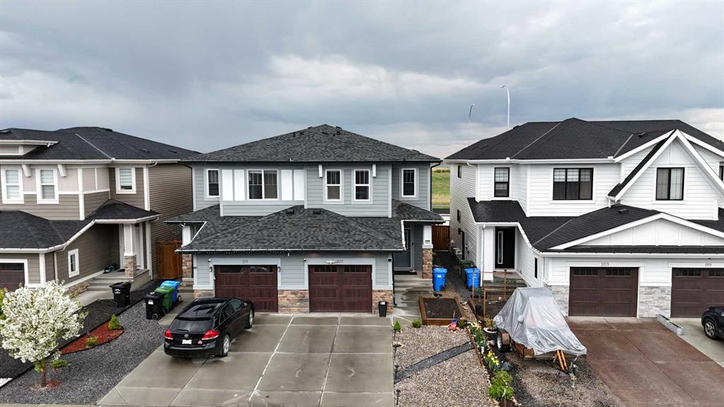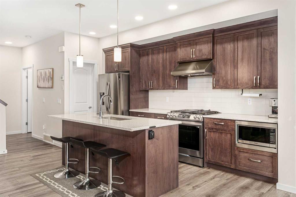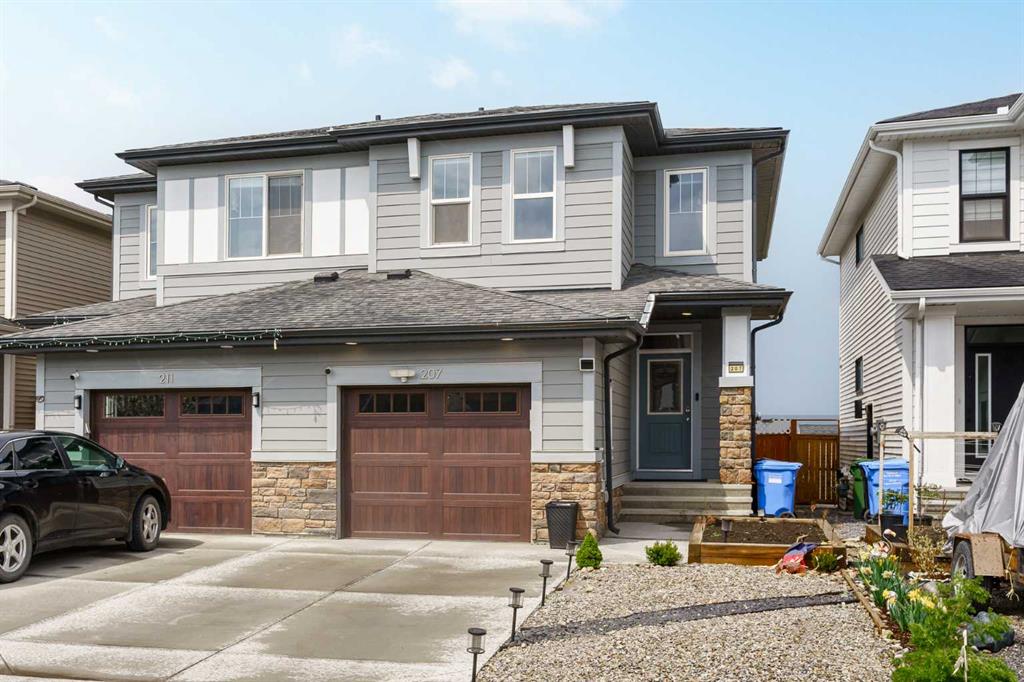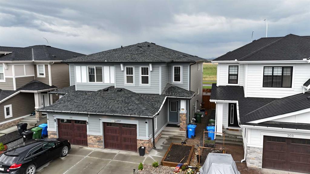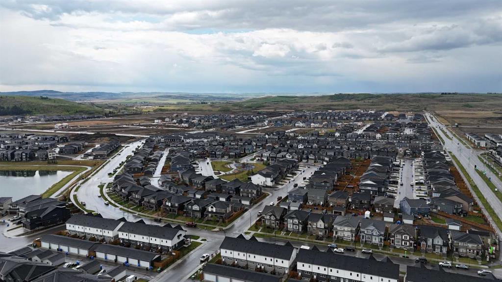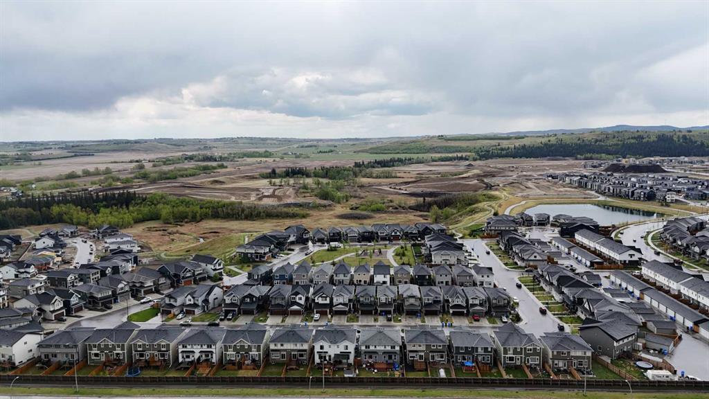 Welcome to this beautifully appointed 3-bedroom, 2.5-bath duplex in the tranquil and thoughtfully designed community of Pine Creek—one of Calgary’s most exciting new neighbourhoods in the Southwest. Blending modern comfort with natural surroundings, this home offers the perfect balance of lifestyle, convenience, and community charm. From the moment you arrive, you’re greeted by undeniable curb appeal. Set on a quiet, family-friendly street, the home features a single attached garage, and a spacious backyard with an oversized deck—ideal for summer BBQs and long evenings enjoying skyline views. A separate side entrance to the basement presents the opportunity for a future suite already roughed in (A secondary suite would be subject to approval and permitting by the city/municipality), making it a smart choice for multigenerational living or rental potential. Inside, the main floor is flooded with natural light thanks to oversized windows and 9-foot ceilings. Light-toned luxury vinyl plank flooring flows throughout the space, enhancing the airy and inviting feel. The heart of the home is the kitchen—complete with stainless steel appliances, rich dark cabinetry raised to the bulkhead, quartz countertops, a large pantry, and a generous centre island that’s perfect for meal prep and casual gatherings. A bright dining area with a transom window sits just off the kitchen, while the rear living room stretches across the back of the home and features wall-to-wall windows, patio door, and a custom wood slat entertainment wall that brings style and personality to the space. Upstairs, a central bonus room offers a flexible area for movie nights, a kids’ play zone, or a cozy home office. The primary bedroom is a serene retreat with downtown Calgary views, a walk-in closet, and a spa-inspired 4-piece ensuite. Two additional bedrooms, another full bathroom, and a dedicated laundry room with built-in shelving round out the upper level. Living in Pine Creek means more than just owning a beautiful home—it’s about embracing a lifestyle surrounded by nature. With over 50% of the land preserved as environmental reserve, you’ll enjoy access to scenic walking paths, wetlands, storm ponds, and playgrounds. This family-focused community is designed for connection, with future plans for a school, sports field, and even more parks. All of this while being just minutes from key amenities like South Health Campus, Spruce Meadows, Fish Creek Park, and easy commuter routes via Macleod Trail and Stoney Trail. Whether you're starting a family, expanding your space, or looking for the flexibility of future rental income, this home checks all the boxes. Experience the peace, possibility, and pride of ownership that Pine Creek is quickly becoming known for.