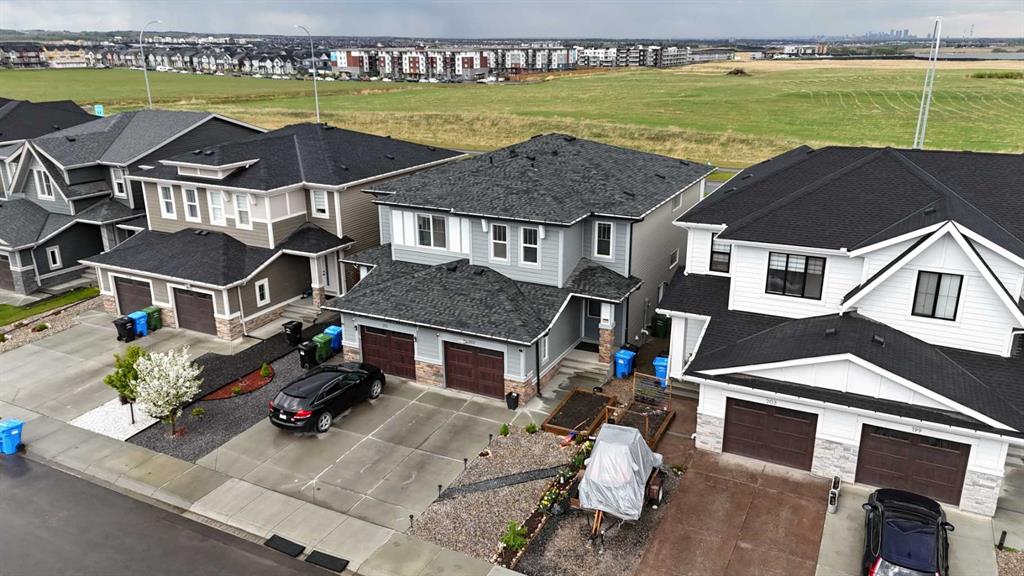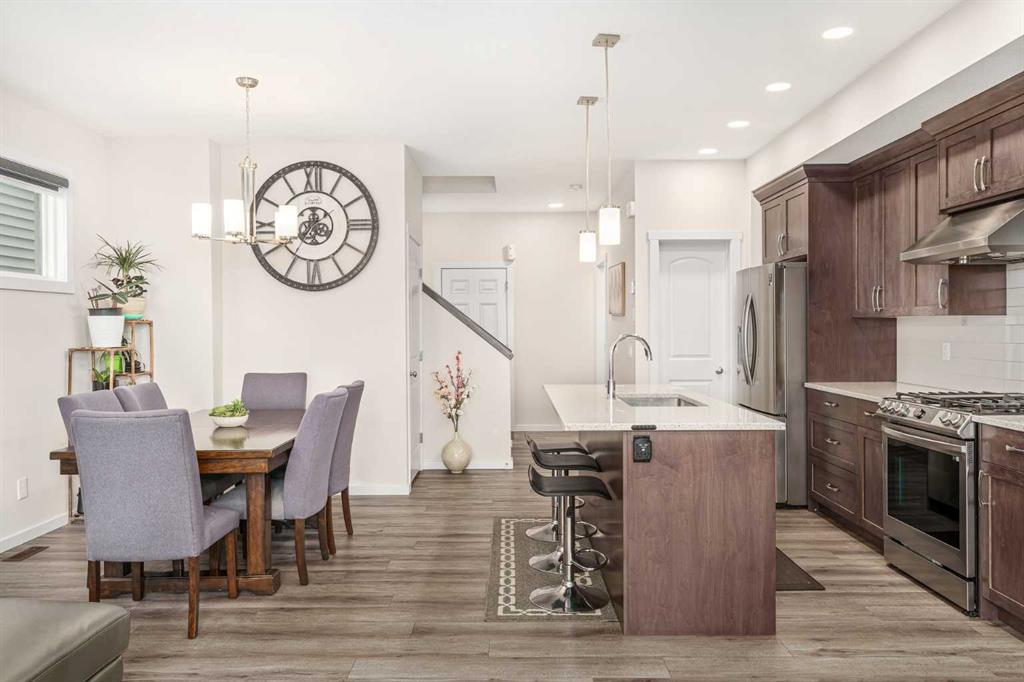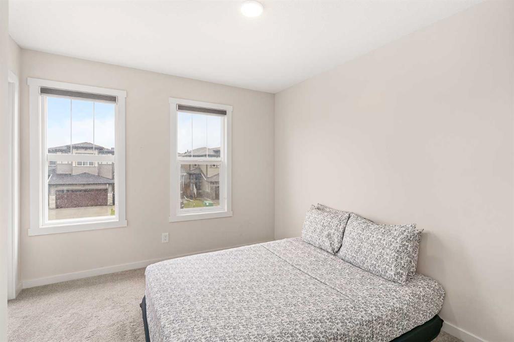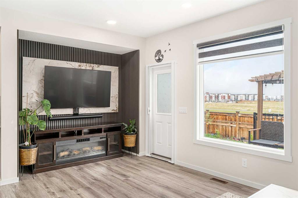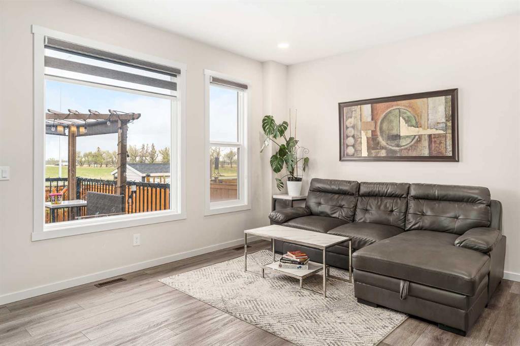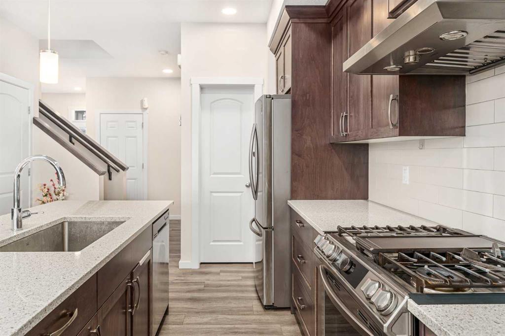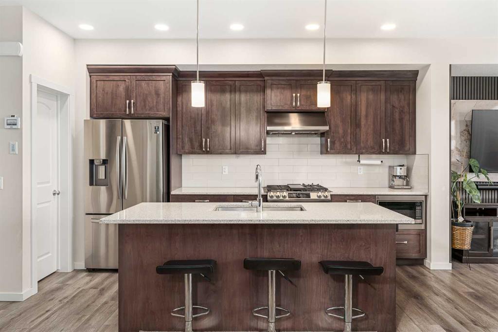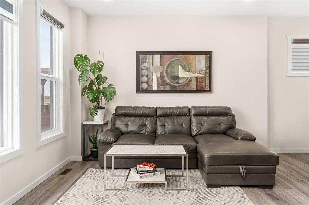 Welcome to this beautifully appointed 3-bedroom, 2.5-bath duplex in the tranquil and thoughtfully designed community of Pine Creek—one of Calgary’s most exciting new neighbourhoods in the Southwest. Blending modern comfort with natural surroundings, this home offers the perfect balance of lifestyle, convenience, and community charm. From the moment you arrive, you’re greeted by undeniable curb appeal. Set on a quiet, family-friendly street, the home features a single attached garage, and a spacious backyard with an oversized deck—ideal for summer BBQs and long evenings enjoying skyline views. A separate side entrance to the basement presents the opportunity for a future suite already roughed in (A secondary suite would be subject to approval and permitting by the city/municipality), making it a smart choice for multigenerational living or rental potential. Inside, the main floor is flooded with natural light thanks to oversized windows and 9-foot ceilings. Light-toned luxury vinyl plank flooring flows throughout the space, enhancing the airy and inviting feel. The heart of the home is the kitchen—complete with stainless steel appliances, rich dark cabinetry raised to the bulkhead, quartz countertops, a large pantry, and a generous centre island that’s perfect for meal prep and casual gatherings. A bright dining area with a transom window sits just off the kitchen, while the rear living room stretches across the back of the home and features wall-to-wall windows, patio door, and a custom wood slat entertainment wall that brings style and personality to the space. Upstairs, a central bonus room offers a flexible area for movie nights, a kids’ play zone, or a cozy home office. The primary bedroom is a serene retreat with downtown Calgary views, a walk-in closet, and a spa-inspired 4-piece ensuite. Two additional bedrooms, another full bathroom, and a dedicated laundry room with built-in shelving round out the upper level. Living in Pine Creek means more than just owning a beautiful home—it’s about embracing a lifestyle surrounded by nature. With over 50% of the land preserved as environmental reserve, you’ll enjoy access to scenic walking paths, wetlands, storm ponds, and playgrounds. This family-focused community is designed for connection, with future plans for a school, sports field, and even more parks. All of this while being just minutes from key amenities like South Health Campus, Spruce Meadows, Fish Creek Park, and easy commuter routes via Macleod Trail and Stoney Trail. Whether you're starting a family, expanding your space, or looking for the flexibility of future rental income, this home checks all the boxes. Experience the peace, possibility, and pride of ownership that Pine Creek is quickly becoming known for.