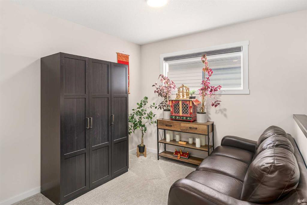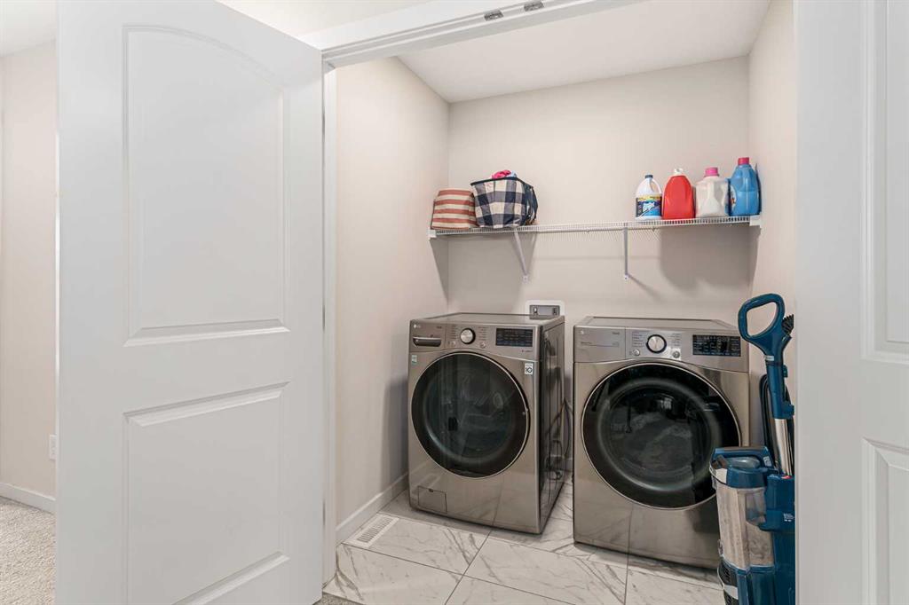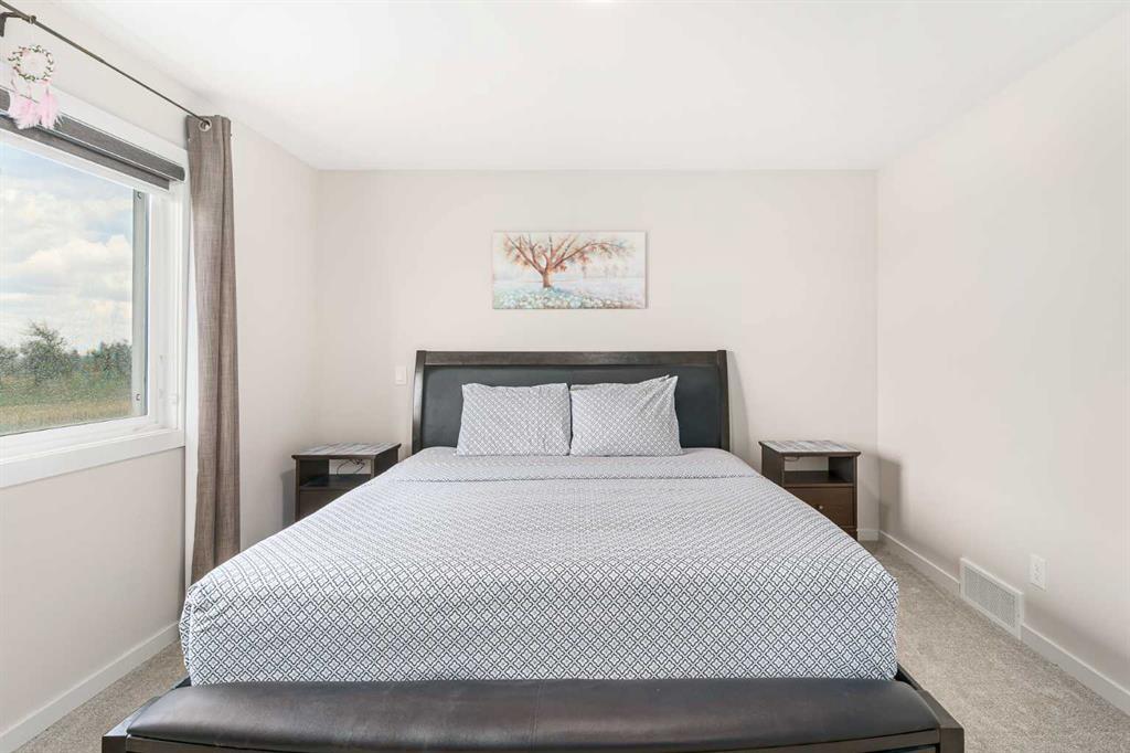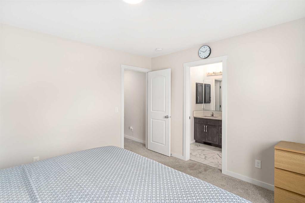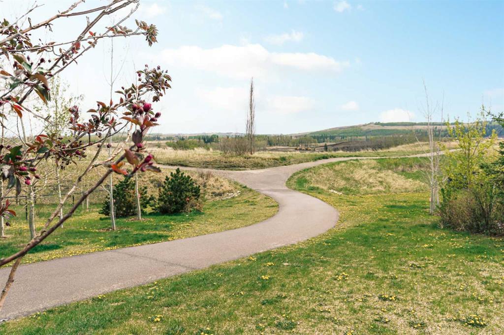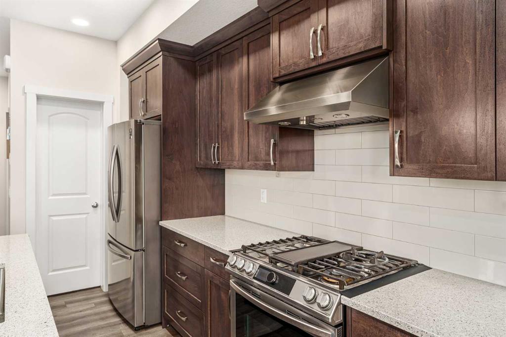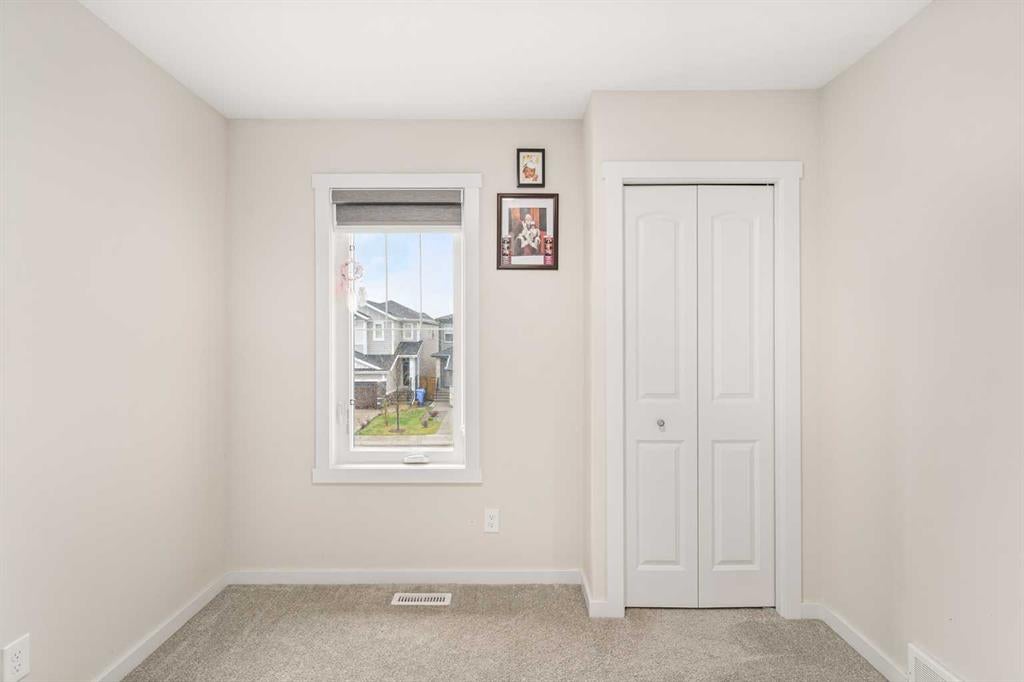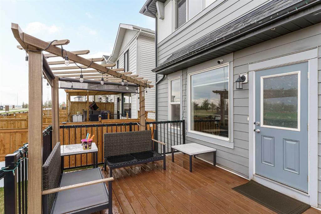 Welcome to this beautifully appointed 3-bedroom, 2.5-bath duplex in the tranquil and thoughtfully designed community of Pine Creek—one of Calgary’s most exciting new neighbourhoods in the Southwest. Blending modern comfort with natural surroundings, this home offers the perfect balance of lifestyle, convenience, and community charm. From the moment you arrive, you’re greeted by undeniable curb appeal. Set on a quiet, family-friendly street, the home features a single attached garage, and a spacious backyard with an oversized deck—ideal for summer BBQs and long evenings enjoying skyline views. A separate side entrance to the basement presents the opportunity for a future suite already roughed in (A secondary suite would be subject to approval and permitting by the city/municipality), making it a smart choice for multigenerational living or rental potential. Inside, the main floor is flooded with natural light thanks to oversized windows and 9-foot ceilings. Light-toned luxury vinyl plank flooring flows throughout the space, enhancing the airy and inviting feel. The heart of the home is the kitchen—complete with stainless steel appliances, rich dark cabinetry raised to the bulkhead, quartz countertops, a large pantry, and a generous centre island that’s perfect for meal prep and casual gatherings. A bright dining area with a transom window sits just off the kitchen, while the rear living room stretches across the back of the home and features wall-to-wall windows, patio door, and a custom wood slat entertainment wall that brings style and personality to the space. Upstairs, a central bonus room offers a flexible area for movie nights, a kids’ play zone, or a cozy home office. The primary bedroom is a serene retreat with downtown Calgary views, a walk-in closet, and a spa-inspired 4-piece ensuite. Two additional bedrooms, another full bathroom, and a dedicated laundry room with built-in shelving round out the upper level. Living in Pine Creek means more than just owning a beautiful home—it’s about embracing a lifestyle surrounded by nature. With over 50% of the land preserved as environmental reserve, you’ll enjoy access to scenic walking paths, wetlands, storm ponds, and playgrounds. This family-focused community is designed for connection, with future plans for a school, sports field, and even more parks. All of this while being just minutes from key amenities like South Health Campus, Spruce Meadows, Fish Creek Park, and easy commuter routes via Macleod Trail and Stoney Trail. Whether you're starting a family, expanding your space, or looking for the flexibility of future rental income, this home checks all the boxes. Experience the peace, possibility, and pride of ownership that Pine Creek is quickly becoming known for.