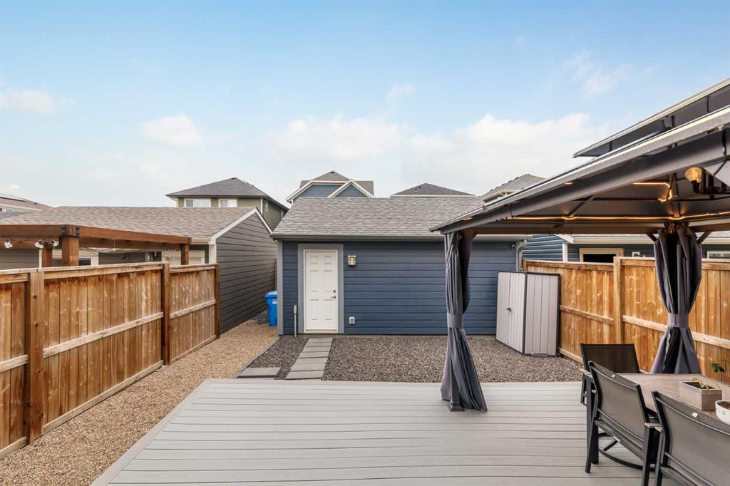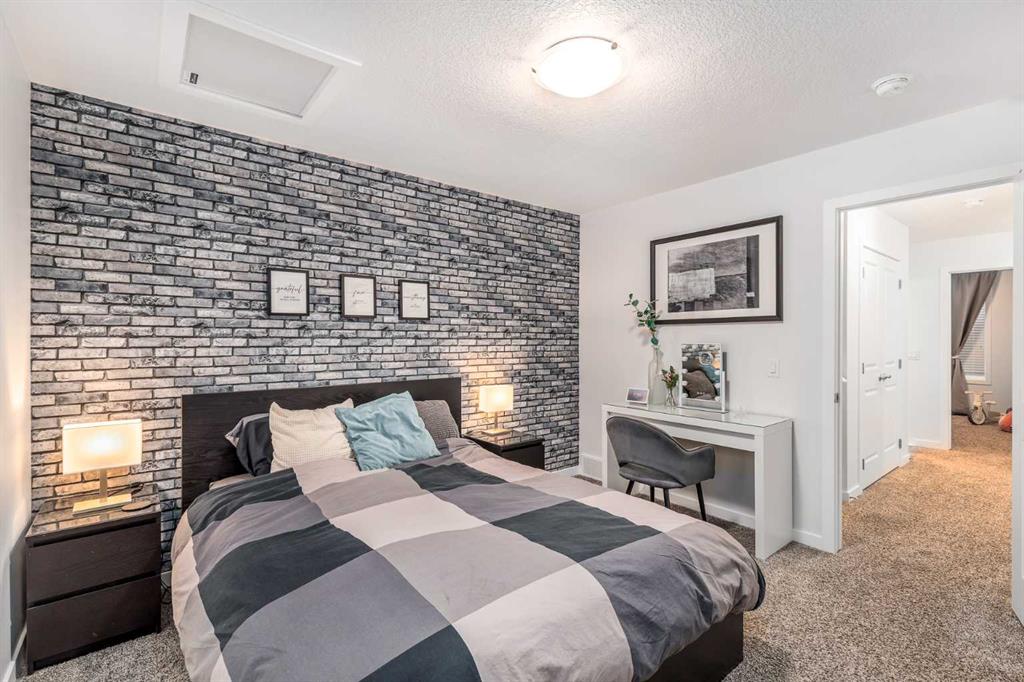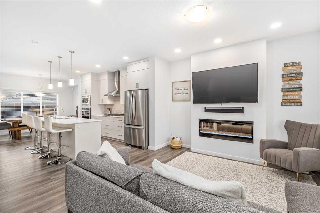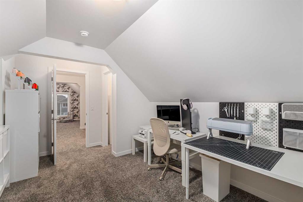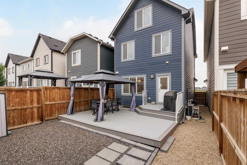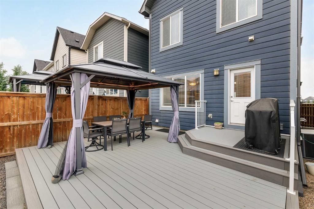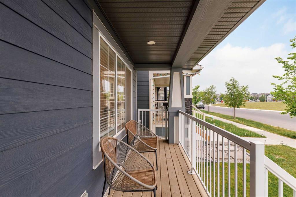 Welcome to this incredibly rare and thoughtfully designed home in the award-winning lake community of Mahogany—only the second time this floor plan has been available in this community! Built by Excel Homes, this unique layout offers over 2,000 sq ft above grade and is perfect for multi-generational living, a live-in nanny, or growing families needing extra space and flexibility. Set on a quiet street directly across from the future school field, this home greets you with fantastic curb appeal, including a charming full-width front porch—ideal for morning coffees or evening chats. Inside, you're welcomed by a spacious living room anchored by a modern electric fireplace, enhanced with five pot lights and a large front-facing window overlooking green space. At the heart of the home is the stylish central kitchen, complete with a large island, ceiling-height white oak cabinetry, quartz countertops, gas cooktop, built-in oven & microwave, and a stunning grey hammered tile backsplash that adds the perfect designer touch. The rear dining area easily accommodates a large table and features a big, bright window. A convenient mudroom with coat closet and 2-piece powder room lead out to the sun-drenched south-facing backyard. Enjoy low-maintenance landscaping with a large composite deck, stonework, and a double detached garage. The second level offers three bedrooms, including a front-facing primary suite with a charming brick wallpaper feature wall, a spacious walk-in closet, and a 3-piece ensuite with a stand-alone shower. Two additional bedrooms and a beautifully finished 4-piece main bath complete the level. The standout feature of this home is the third-floor loft, which includes a fourth bedroom, a cozy bonus room, a full 4-piece bathroom, and a flexible den space—perfect for a home office or study zone. Downstairs, the fully finished basement expands your living space with a large rec room, a fifth bedroom with egress window, another full bathroom, and a large storage closet beneath the stairs. The home is also equipped with central A/C for year-round comfort. This is a rare opportunity to own a lofted floor plan in one of Calgary’s most sought-after lake communities. Move in before the new school year begins and enjoy everything Mahogany has to offer! Mahogany isn’t just a neighbourhood—it’s a lifestyle. Enjoy access to Calgary’s largest lake, with over 64 acres of water, multiple beach entry points, walking trails, green spaces, and family-friendly amenities right outside your door. With gorgeous designer finishes and a floor plan that's as unique as it is rare, this home checks every box. It shows 10/10 and is ready to welcome its next owners—come experience it for yourself!