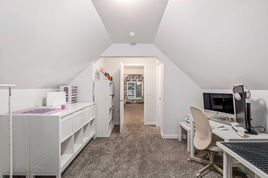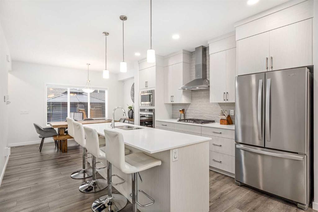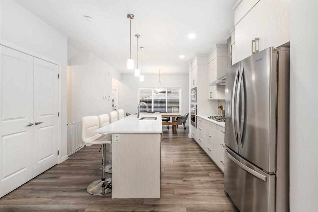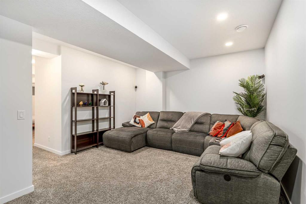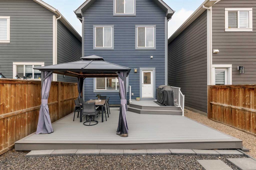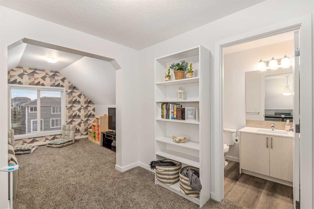 Welcome to this incredibly rare and thoughtfully designed home in the award-winning lake community of Mahogany—only the second time this floor plan has been available in this community! Built by Excel Homes, this unique layout offers over 2,000 sq ft above grade and is perfect for multi-generational living, a live-in nanny, or growing families needing extra space and flexibility. Set on a quiet street directly across from the future school field, this home greets you with fantastic curb appeal, including a charming full-width front porch—ideal for morning coffees or evening chats. Inside, you're welcomed by a spacious living room anchored by a modern electric fireplace, enhanced with five pot lights and a large front-facing window overlooking green space. At the heart of the home is the stylish central kitchen, complete with a large island, ceiling-height white oak cabinetry, quartz countertops, gas cooktop, built-in oven & microwave, and a stunning grey hammered tile backsplash that adds the perfect designer touch. The rear dining area easily accommodates a large table and features a big, bright window. A convenient mudroom with coat closet and 2-piece powder room lead out to the sun-drenched south-facing backyard. Enjoy low-maintenance landscaping with a large composite deck, stonework, and a double detached garage. The second level offers three bedrooms, including a front-facing primary suite with a charming brick wallpaper feature wall, a spacious walk-in closet, and a 3-piece ensuite with a stand-alone shower. Two additional bedrooms and a beautifully finished 4-piece main bath complete the level. The standout feature of this home is the third-floor loft, which includes a fourth bedroom, a cozy bonus room, a full 4-piece bathroom, and a flexible den space—perfect for a home office or study zone. Downstairs, the fully finished basement expands your living space with a large rec room, a fifth bedroom with egress window, another full bathroom, and a large storage closet beneath the stairs. The home is also equipped with central A/C for year-round comfort. This is a rare opportunity to own a lofted floor plan in one of Calgary’s most sought-after lake communities. Move in before the new school year begins and enjoy everything Mahogany has to offer! Mahogany isn’t just a neighbourhood—it’s a lifestyle. Enjoy access to Calgary’s largest lake, with over 64 acres of water, multiple beach entry points, walking trails, green spaces, and family-friendly amenities right outside your door. With gorgeous designer finishes and a floor plan that's as unique as it is rare, this home checks every box. It shows 10/10 and is ready to welcome its next owners—come experience it for yourself!