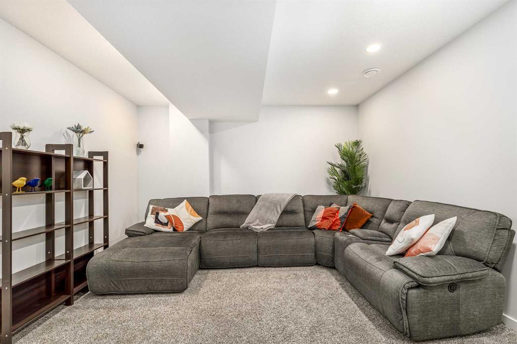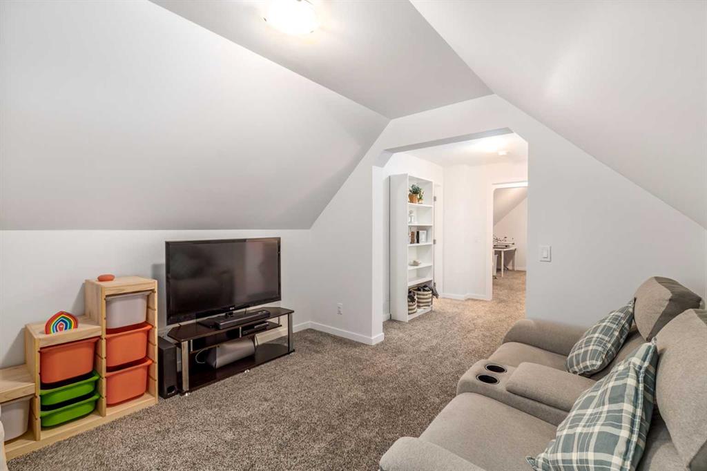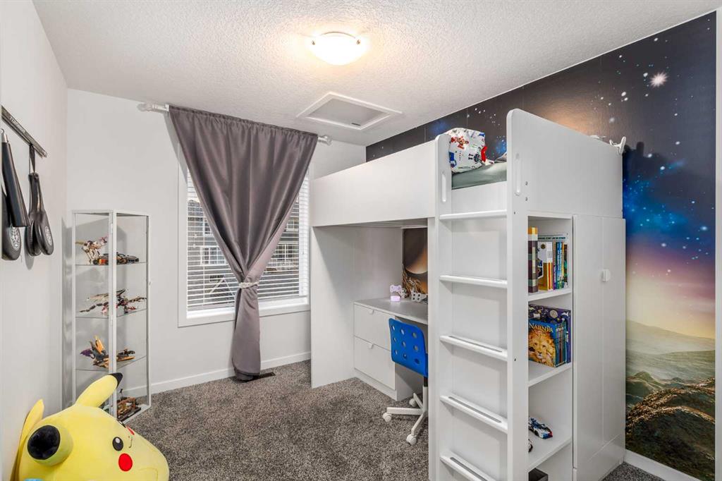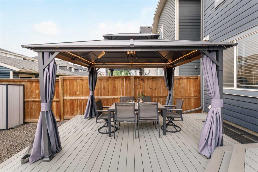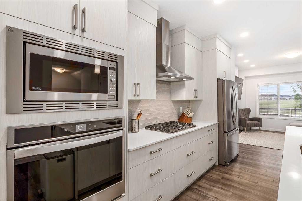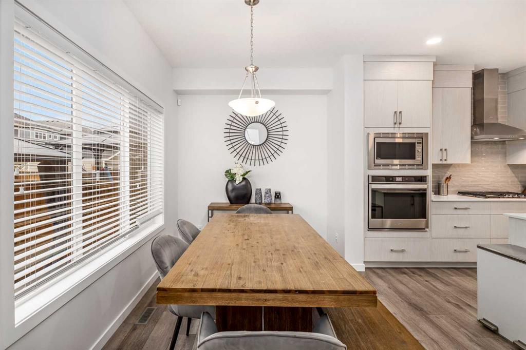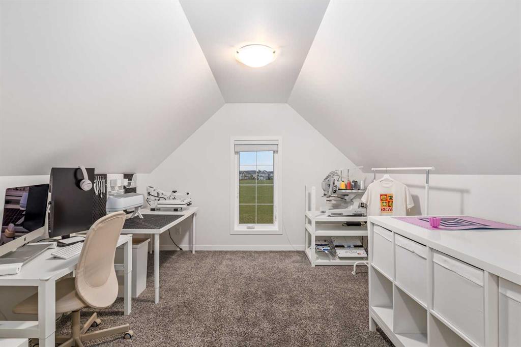 Welcome to this incredibly rare and thoughtfully designed home in the award-winning lake community of Mahogany—only the second time this floor plan has been available in this community! Built by Excel Homes, this unique layout offers over 2,000 sq ft above grade and is perfect for multi-generational living, a live-in nanny, or growing families needing extra space and flexibility. Set on a quiet street directly across from the future school field, this home greets you with fantastic curb appeal, including a charming full-width front porch—ideal for morning coffees or evening chats. Inside, you're welcomed by a spacious living room anchored by a modern electric fireplace, enhanced with five pot lights and a large front-facing window overlooking green space. At the heart of the home is the stylish central kitchen, complete with a large island, ceiling-height white oak cabinetry, quartz countertops, gas cooktop, built-in oven & microwave, and a stunning grey hammered tile backsplash that adds the perfect designer touch. The rear dining area easily accommodates a large table and features a big, bright window. A convenient mudroom with coat closet and 2-piece powder room lead out to the sun-drenched south-facing backyard. Enjoy low-maintenance landscaping with a large composite deck, stonework, and a double detached garage. The second level offers three bedrooms, including a front-facing primary suite with a charming brick wallpaper feature wall, a spacious walk-in closet, and a 3-piece ensuite with a stand-alone shower. Two additional bedrooms and a beautifully finished 4-piece main bath complete the level. The standout feature of this home is the third-floor loft, which includes a fourth bedroom, a cozy bonus room, a full 4-piece bathroom, and a flexible den space—perfect for a home office or study zone. Downstairs, the fully finished basement expands your living space with a large rec room, a fifth bedroom with egress window, another full bathroom, and a large storage closet beneath the stairs. The home is also equipped with central A/C for year-round comfort. This is a rare opportunity to own a lofted floor plan in one of Calgary’s most sought-after lake communities. Move in before the new school year begins and enjoy everything Mahogany has to offer! Mahogany isn’t just a neighbourhood—it’s a lifestyle. Enjoy access to Calgary’s largest lake, with over 64 acres of water, multiple beach entry points, walking trails, green spaces, and family-friendly amenities right outside your door. With gorgeous designer finishes and a floor plan that's as unique as it is rare, this home checks every box. It shows 10/10 and is ready to welcome its next owners—come experience it for yourself!