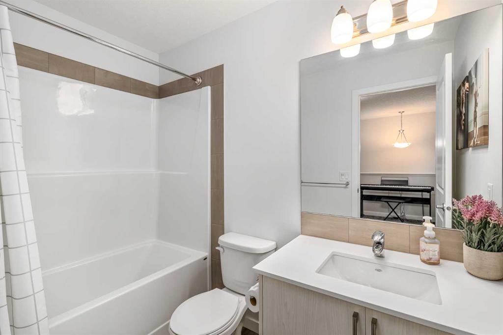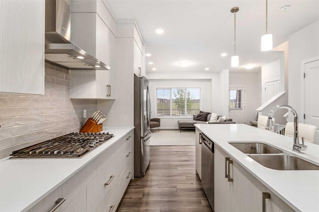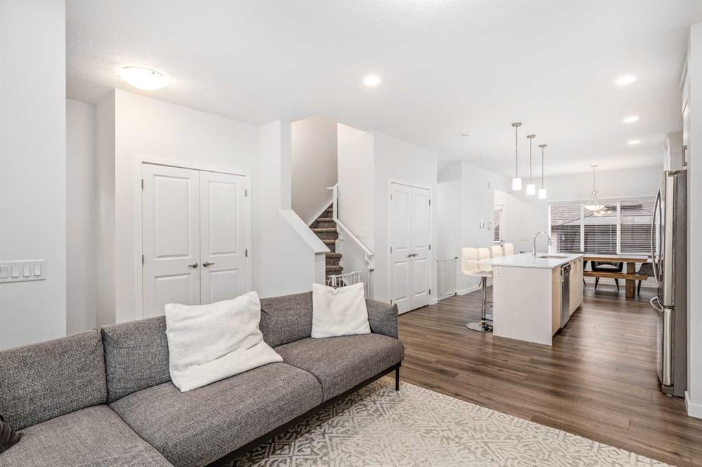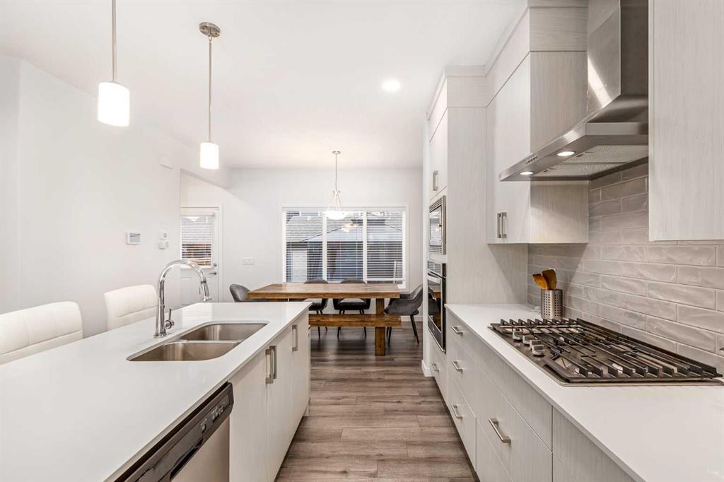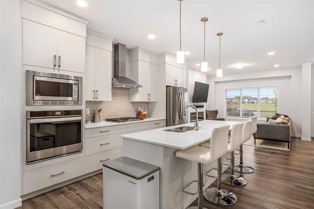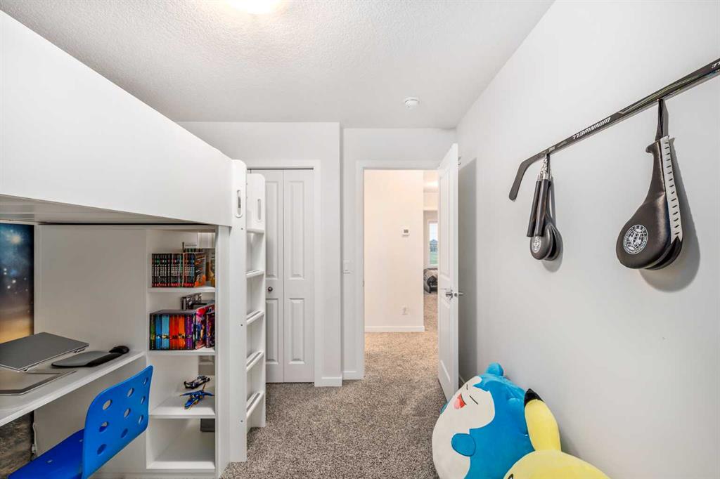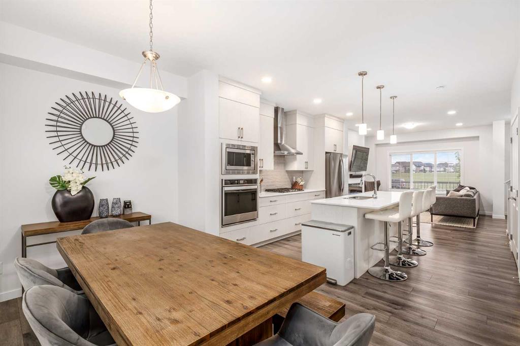 Welcome to this incredibly rare and thoughtfully designed home in the award-winning lake community of Mahogany—only the second time this floor plan has been available in this community! Built by Excel Homes, this unique layout offers over 2,000 sq ft above grade and is perfect for multi-generational living, a live-in nanny, or growing families needing extra space and flexibility. Set on a quiet street directly across from the future school field, this home greets you with fantastic curb appeal, including a charming full-width front porch—ideal for morning coffees or evening chats. Inside, you're welcomed by a spacious living room anchored by a modern electric fireplace, enhanced with five pot lights and a large front-facing window overlooking green space. At the heart of the home is the stylish central kitchen, complete with a large island, ceiling-height white oak cabinetry, quartz countertops, gas cooktop, built-in oven & microwave, and a stunning grey hammered tile backsplash that adds the perfect designer touch. The rear dining area easily accommodates a large table and features a big, bright window. A convenient mudroom with coat closet and 2-piece powder room lead out to the sun-drenched south-facing backyard. Enjoy low-maintenance landscaping with a large composite deck, stonework, and a double detached garage. The second level offers three bedrooms, including a front-facing primary suite with a charming brick wallpaper feature wall, a spacious walk-in closet, and a 3-piece ensuite with a stand-alone shower. Two additional bedrooms and a beautifully finished 4-piece main bath complete the level. The standout feature of this home is the third-floor loft, which includes a fourth bedroom, a cozy bonus room, a full 4-piece bathroom, and a flexible den space—perfect for a home office or study zone. Downstairs, the fully finished basement expands your living space with a large rec room, a fifth bedroom with egress window, another full bathroom, and a large storage closet beneath the stairs. The home is also equipped with central A/C for year-round comfort. This is a rare opportunity to own a lofted floor plan in one of Calgary’s most sought-after lake communities. Move in before the new school year begins and enjoy everything Mahogany has to offer! Mahogany isn’t just a neighbourhood—it’s a lifestyle. Enjoy access to Calgary’s largest lake, with over 64 acres of water, multiple beach entry points, walking trails, green spaces, and family-friendly amenities right outside your door. With gorgeous designer finishes and a floor plan that's as unique as it is rare, this home checks every box. It shows 10/10 and is ready to welcome its next owners—come experience it for yourself!