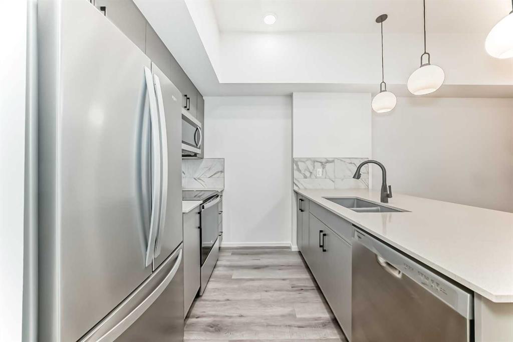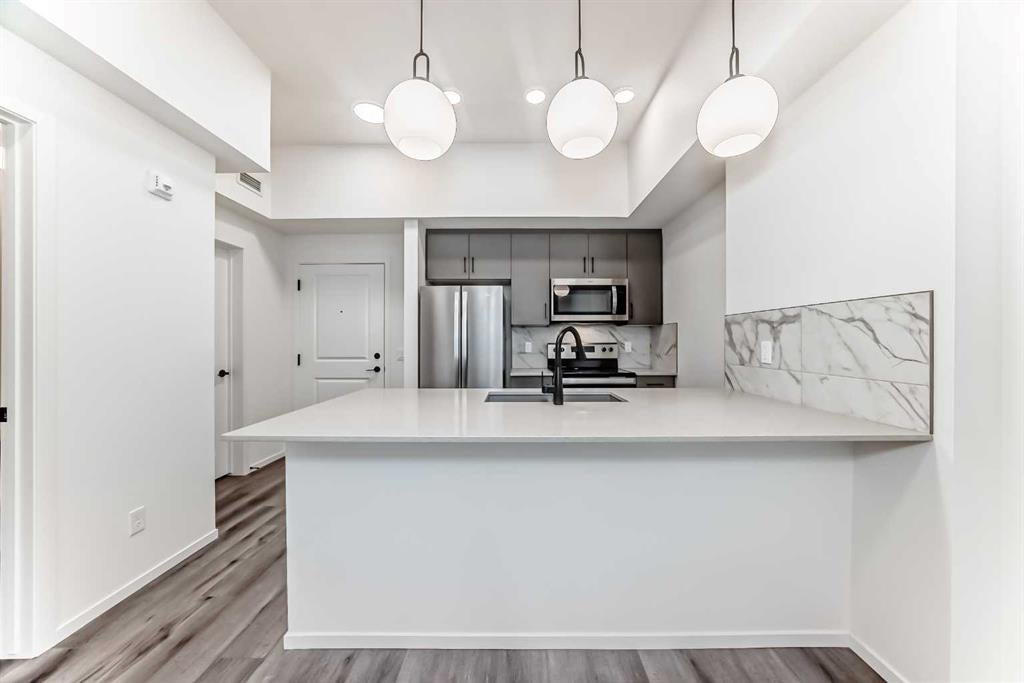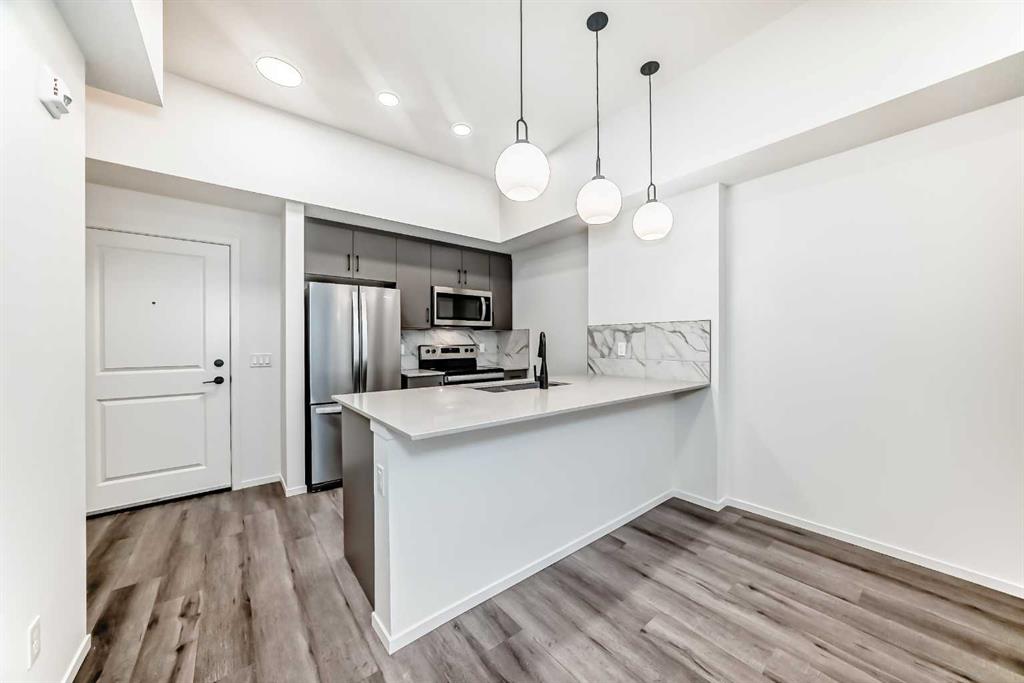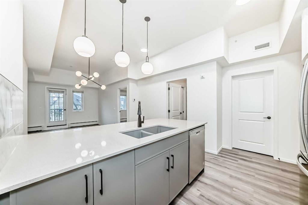 Welcome to Sandgate at Mahogany—where elevated living, thoughtful design, and a vibrant community come together. Built by the 2-Time Multi-Family Builder of the Year, this stunning top-floor 1-bedroom plus den unit offers the perfect blend of comfort, style, and functionality in one of Calgary’s most sought-after lake communities. Located on the top floor with 10' ceiling height, this unit provides the peace and quiet you’re looking for, along with an expansive private deck that’s perfect for morning coffee, evening relaxation, or entertaining friends with a summer BBQ. Inside, the open-concept layout is bright and airy, with 10-foot knockdown ceilings and large windows that fill the space with natural light. The kitchen is designed for both beauty and function, featuring 1 1/4" quartz countertops, extended upper cabinets, stainless steel Whirlpool appliances, and a central island that seamlessly connects to the dining area and spacious living room. Whether you’re hosting or enjoying a quiet night in, this layout offers flexibility for any lifestyle. Adding to the appeal is a dedicated den just off the living space—perfect for a home office, study area, or cozy reading nook. The generous primary bedroom includes a walkthrough closet with convenient cheater access to the stylish 4-piece bathroom. You’ll also appreciate the in-suite laundry and additional storage at the entry, making everyday living easy and organized. Beyond your door, Sandgate at Mahogany offers an incredible lifestyle. You’ll be just steps to Westman Village, where boutique shops, cafes, restaurants, fitness studios, and even a jazz club await. Enjoy 22 km of scenic pathways, two private beaches, dog parks, playgrounds, and Mahogany’s signature lake—offering swimming, paddleboarding, and year-round community events. Whether you’re a first-time buyer, downsizer, or investor, this is a rare opportunity to own a stylish, low-maintenance home in Calgary’s premier lake community.