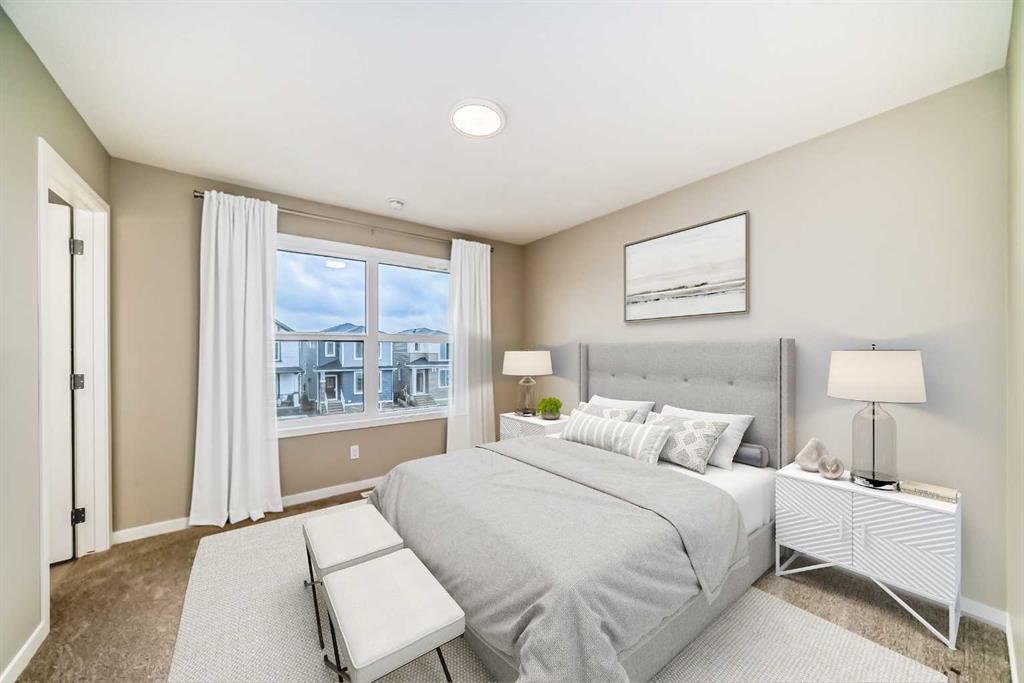 Welcome to the Cari, a beautifully designed home where modern style meets everyday functionality. With 1,264 sq. ft. of thoughtfully planned living space, this 3-bedroom, 2.5-bathroom residence is crafted to elevate your lifestyle while offering room to grow. From the moment you arrive, the curb appeal is undeniable with a landscaped front yard that sets the tone for the elegance inside. Step through the front door and into the bright and open main level, where luxury vinyl plank flooring seamlessly connects the living, dining, and kitchen areas. The heart of the home is the stunning L-shaped kitchen, featuring sleek two-tone cabinetry, gleaming quartz countertops, a central island, and stainless steel appliances that make cooking and entertaining both effortless and enjoyable. The open-concept design ensures that whether you’re hosting family dinners or relaxing with friends, every space feels welcoming and connected. Upstairs, the layout is just as impressive. The serene primary retreat offers the perfect escape, complete with a spa-inspired ensuite finished with quartz countertops and modern fixtures. Two additional generously sized bedrooms, along with a stylish full bathroom, provide plenty of space for family or guests. Convenience continues with an upper-level laundry room, designed with luxury vinyl tile flooring for both style and durability. The lower level holds endless potential with a 9’ foundation height and thoughtful rough-ins for a 3-piece bathroom and a wet bar sink. A separate side entrance adds flexibility for a future basement suite (A secondary suite would be subject to approval and permitting by the city/municipality). Every detail of the Cari has been carefully considered, from the knockdown ceiling texture to the quality finishes throughout. This is more than a home—it’s a place designed to adapt to your lifestyle and grow with you. Located in one of Calgary’s newest and most exciting communities, Hotchkiss is a neighborhood where modern living meets natural beauty. Nestled in the southeast, Hotchkiss offers a perfect balance of peaceful surroundings and urban convenience. Residents enjoy easy access to scenic pathways, parks, and green spaces, creating a community where outdoor living thrives. Families will appreciate the close proximity to schools, recreational amenities, and shopping, while commuters benefit from convenient connections to major roadways, making every part of the city accessible. With its vision for thoughtful planning and vibrant streetscapes, Hotchkiss is more than a place to live—it’s a place to belong. The Cari is not just a home; it’s an opportunity to enjoy stylish comfort in a thriving, growing community
