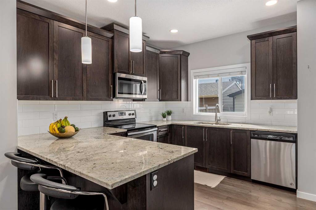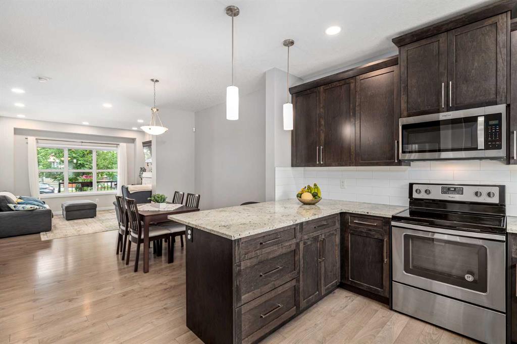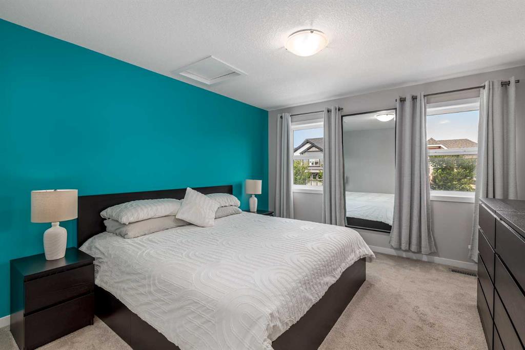 ** OPEN HOUSE SUNDAY Aug 10th 1-3 PM ** Welcome to this rare and thoughtfully designed home in the award-winning lake community of Mahogany! Built by Excel Homes, this unique lofted floor plan offers over 1,800 sq ft above grade and is ideal for multi-generational living, a live-in nanny, or families looking for flexible space. Set on a picturesque tree-lined street, this home captures timeless curb appeal with its full-width front porch—perfect for morning coffees or evening chats with neighbours. Step inside to a bright and inviting living room, centered around a beautiful gas fireplace with a white stone surround and mantle. Large front-facing windows fill the space with natural light, creating a warm and welcoming atmosphere. The dining room sits at the heart of the home, easily accommodating a large table for gatherings. At the rear, the kitchen offers both style and function with ceiling-height rich wood cabinetry, quartz countertops, stainless appliances, window above the sink and a classic white subway tile backsplash. From here, you’ll enjoy views of the sun-drenched west-facing backyard. A practical mudroom and 2-piece powder room complete the main level. Upstairs, you’ll find three spacious bedrooms, including a front-facing primary suite featuring a striking seafoam accent wall, a walk-in closet, and a 4-piece ensuite. Two additional bedrooms share a beautifully finished 4-piece main bath. The third-floor loft is a standout feature, offering a fourth bedroom, a full 4-piece bathroom, and a cozy bonus room — perfect for a media room, kids playroom, home office or study nook. The basement is undeveloped, providing endless opportunities for future customization, whether you envision a large rec room, additional bedrooms, or options are endless Outside, enjoy a sunny west facing backyard, perfect for those long summer nights. A double detached garage adds even more value and provides warmth and security to your vehicles all year long. Mahogany isn’t just a neighbourhood—it’s a lifestyle. With Calgary’s largest lake, 64 acres of water, multiple beach entry points, scenic walking paths, playgrounds, and family-friendly amenities, you’ll love calling this community home. Don’t miss the chance to make this rare lofted floor plan yours!