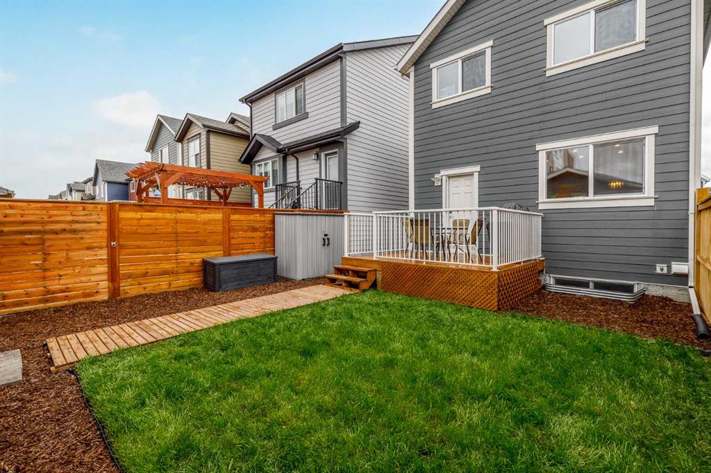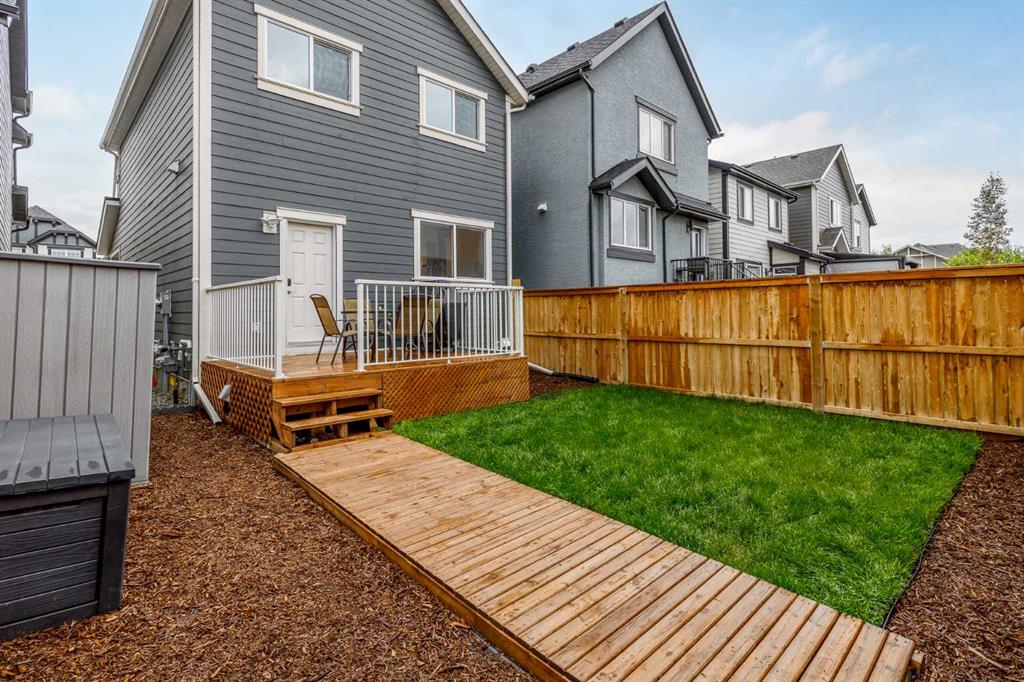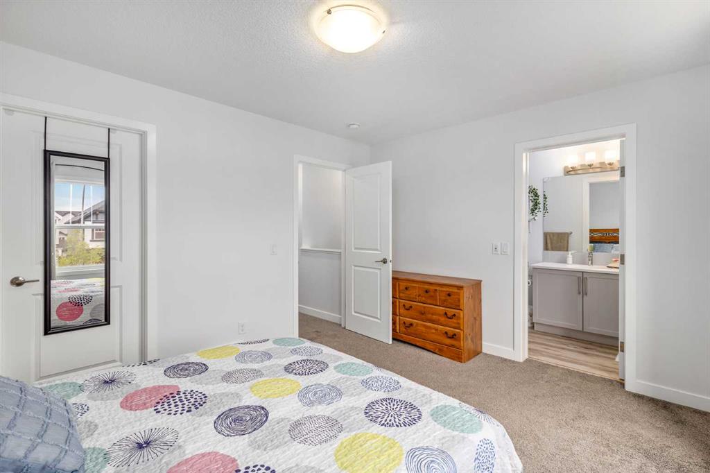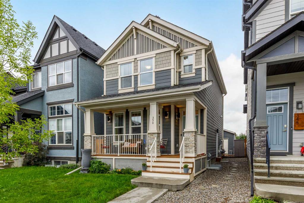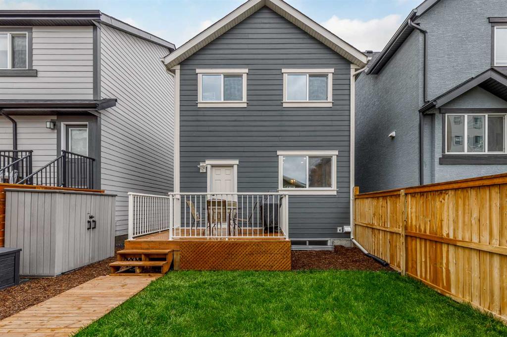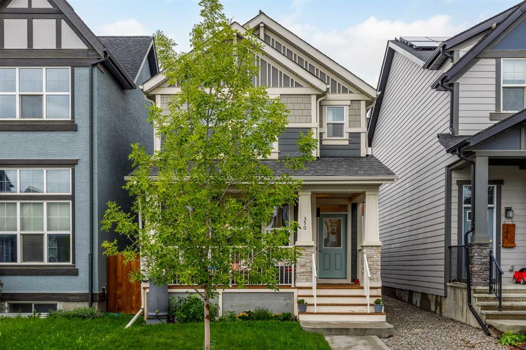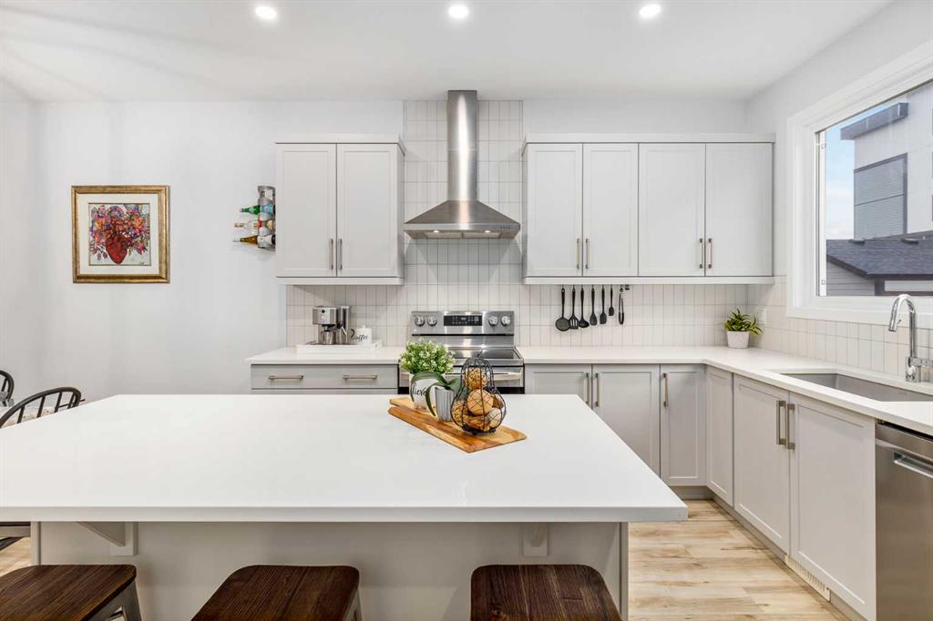 Welcome to this thoughtfully designed 2-storey home in the award-winning community of Mahogany, offering just over 1,450 sq ft of stylish living space above grade plus a fully developed legal basement suite. Built for comfort, versatility and modern living, this home blends timeless curb appeal with functional design inside and out. From the moment you arrive, you’ll be captivated by the home’s charming full-width front porch—a perfect extension of your living space where you can enjoy a morning coffee, watch the kids play, or simply soak in the vibrant energy of the neighbourhood. The open and airy layout immediately sets the tone for the rest of the home. Light oak-style luxury vinyl plank flooring runs throughout the main floor, complementing the neutral tones and giving the space a fresh, contemporary feel. At the front of the home, a spacious living room welcomes you with three large windows that flood the space with natural light. It’s the perfect gathering spot for relaxing evenings or hosting guests. Moving inward, the central dining area offers the ideal space for both casual weeknight meals and dinner parties, effortlessly connecting the living room and kitchen. The kitchen is a true showpiece, combining style and function with grey cabinetry, crisp white quartz countertops, a striking vertically stacked subway tile backsplash, stainless steel appliances, and a silgranite sink. The central island with seating creates a natural hub for conversation, while pot lighting keeps the space bright. A closet pantry across from the kitchen adds convenient storage. Off the kitchen, the rear entrance leads to your fully finished backyard complete with a deck—ideal for summer BBQs—and an oversized 22x24 double detached garage featuring EV charging capabilities and storage trusses above, giving you even more functionality. Upstairs, you’ll find two generously sized kids’ bedrooms at the back of the home, a full 4-piece bathroom, and a laundry closet tucked conveniently into the hallway. The primary suite at the front is bright and spacious, offering two large windows, a walk-in closet, and a private 4-piece ensuite for a true retreat experience. The legal basement suite, city approved was completed just 1.5 years ago, and adds incredible value. With its own separate entrance, this space offers a modern kitchenette featuring grey cabinetry, stainless steel appliances, quartz countertops, and subway tile backsplash. A cozy living area, one bedroom with a full-sized window and closet, a 4-piece bathroom, and a stand-alone washer/dryer make it completely self-contained. This home is also equipped with solar panels, offering energy efficiency and cost savings while reducing your carbon footprint. Enjoy lower utility bills & increased home value with this eco-friendly addition, designed to harness renewable energy & contribute to a more sustainable future. All of this, in Mahogany—the incredible 4-season lake community filled with amenities designed to enhance your lifestyle.