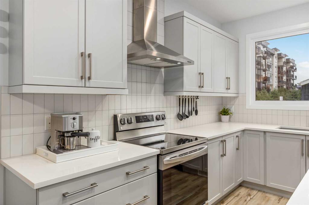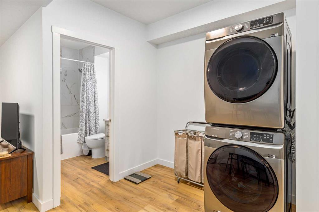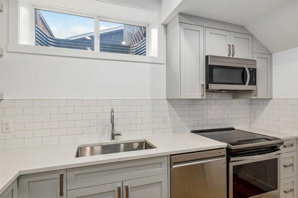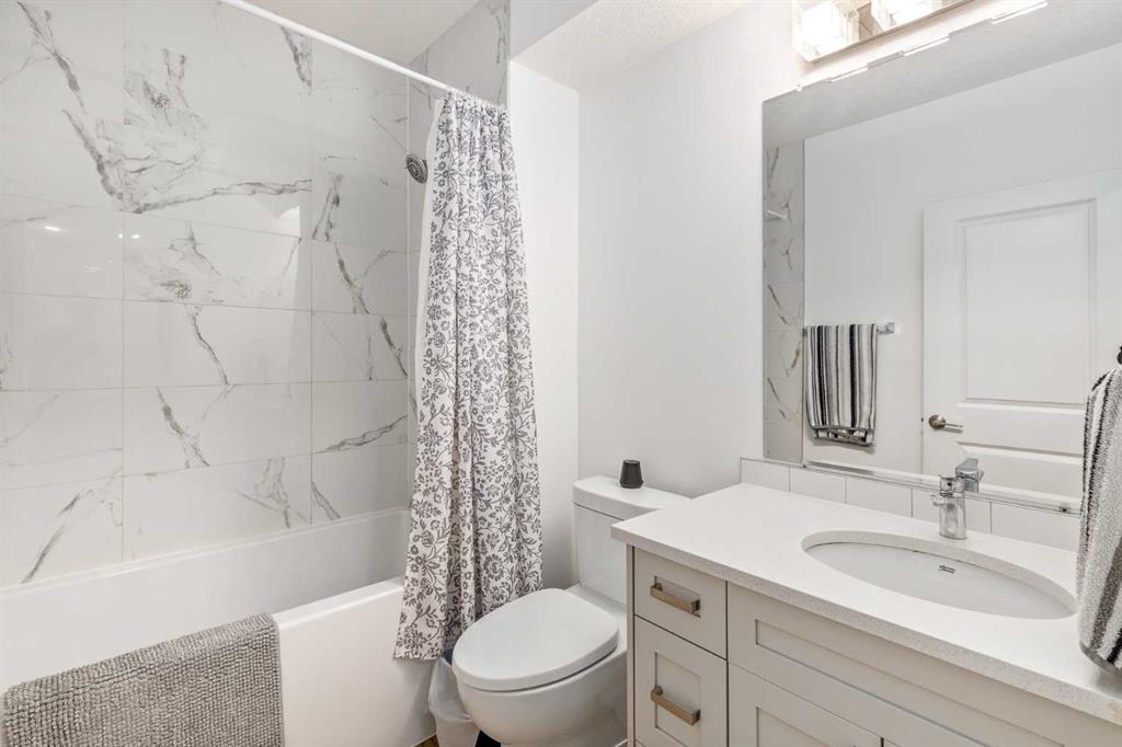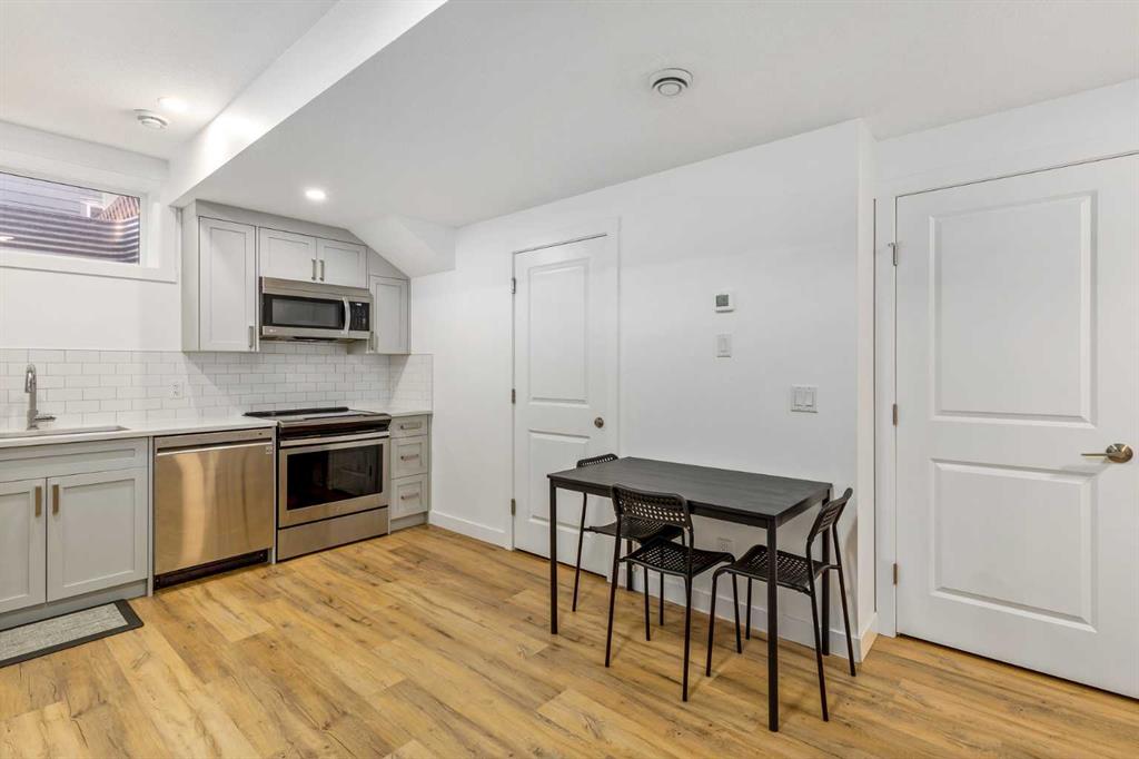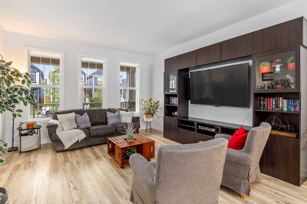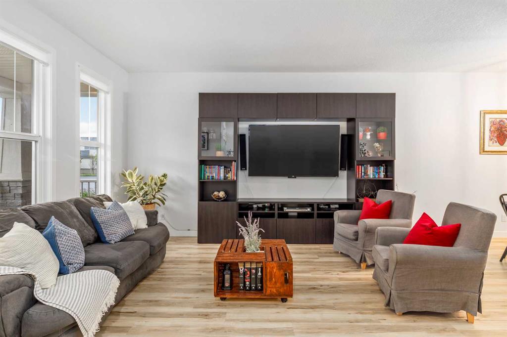 Welcome to this thoughtfully designed 2-storey home in the award-winning community of Mahogany, offering just over 1,450 sq ft of stylish living space above grade plus a fully developed legal basement suite. Built for comfort, versatility and modern living, this home blends timeless curb appeal with functional design inside and out. From the moment you arrive, you’ll be captivated by the home’s charming full-width front porch—a perfect extension of your living space where you can enjoy a morning coffee, watch the kids play, or simply soak in the vibrant energy of the neighbourhood. The open and airy layout immediately sets the tone for the rest of the home. Light oak-style luxury vinyl plank flooring runs throughout the main floor, complementing the neutral tones and giving the space a fresh, contemporary feel. At the front of the home, a spacious living room welcomes you with three large windows that flood the space with natural light. It’s the perfect gathering spot for relaxing evenings or hosting guests. Moving inward, the central dining area offers the ideal space for both casual weeknight meals and dinner parties, effortlessly connecting the living room and kitchen. The kitchen is a true showpiece, combining style and function with grey cabinetry, crisp white quartz countertops, a striking vertically stacked subway tile backsplash, stainless steel appliances, and a silgranite sink. The central island with seating creates a natural hub for conversation, while pot lighting keeps the space bright. A closet pantry across from the kitchen adds convenient storage. Off the kitchen, the rear entrance leads to your fully finished backyard complete with a deck—ideal for summer BBQs—and an oversized 22x24 double detached garage featuring EV charging capabilities and storage trusses above, giving you even more functionality. Upstairs, you’ll find two generously sized kids’ bedrooms at the back of the home, a full 4-piece bathroom, and a laundry closet tucked conveniently into the hallway. The primary suite at the front is bright and spacious, offering two large windows, a walk-in closet, and a private 4-piece ensuite for a true retreat experience. The legal basement suite, city approved was completed just 1.5 years ago, and adds incredible value. With its own separate entrance, this space offers a modern kitchenette featuring grey cabinetry, stainless steel appliances, quartz countertops, and subway tile backsplash. A cozy living area, one bedroom with a full-sized window and closet, a 4-piece bathroom, and a stand-alone washer/dryer make it completely self-contained. This home is also equipped with solar panels, offering energy efficiency and cost savings while reducing your carbon footprint. Enjoy lower utility bills & increased home value with this eco-friendly addition, designed to harness renewable energy & contribute to a more sustainable future. All of this, in Mahogany—the incredible 4-season lake community filled with amenities designed to enhance your lifestyle.