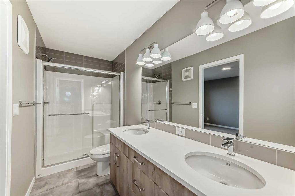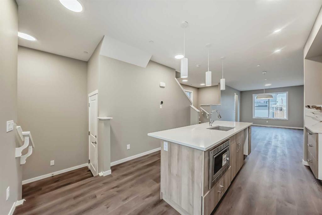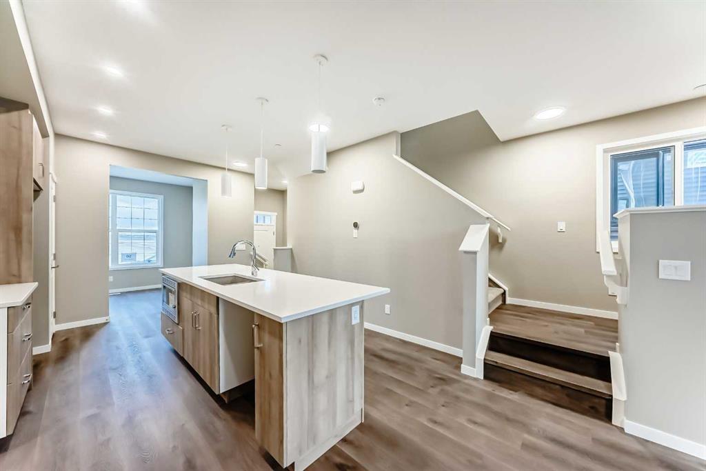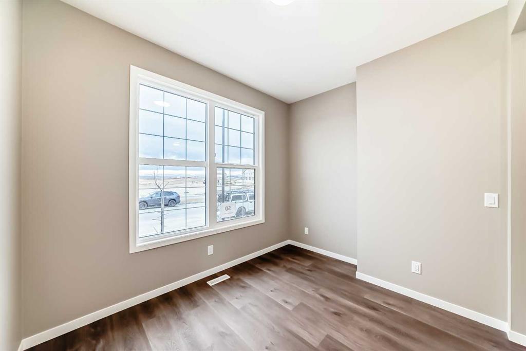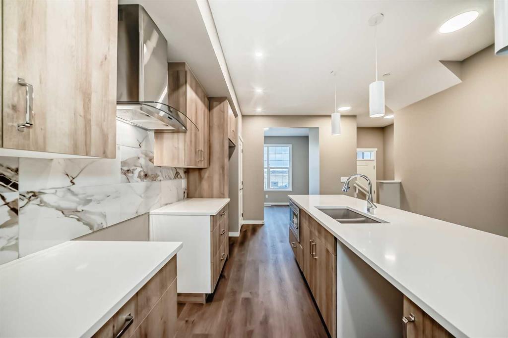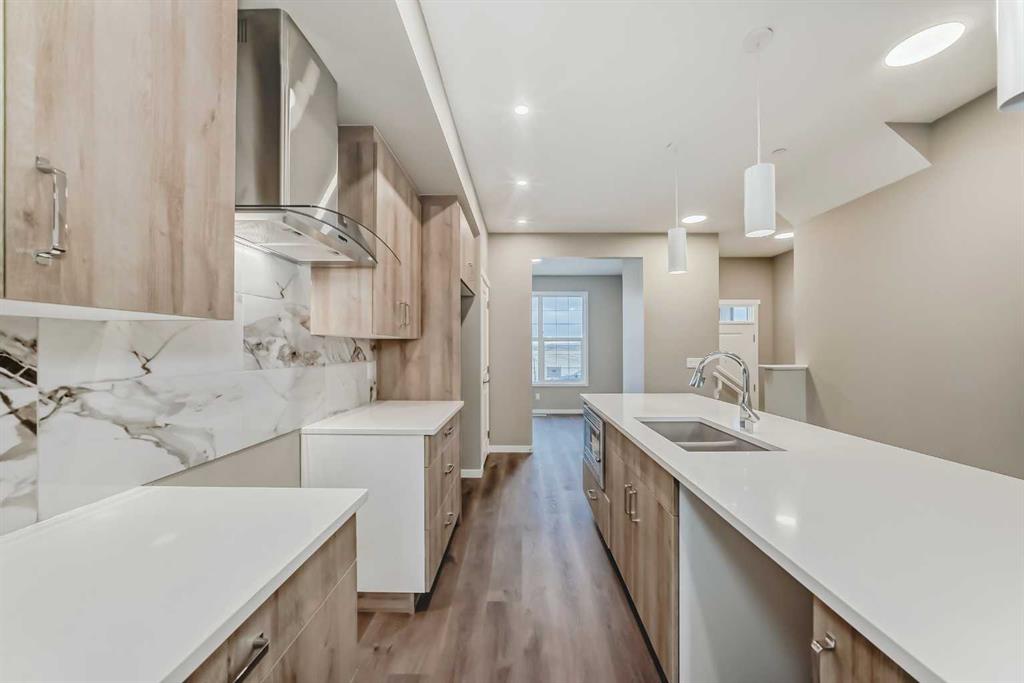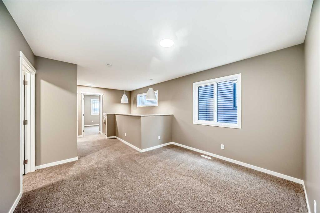 UNBELIEVABLE OPPORTUNITY & A SMART INVESTMENT. This brand-new “Rayn” pairs stylish family living with real income potential thanks to a fully developed 2-bedroom, 1-bathroom legal suite with its own private entrance—perfect for rental revenue or multi-generational living. It’s one of the best 2-bedroom suite layouts you’ll see, with a thoughtfully planned use of space that makes furnishing (and renting) easy from day one. Inside, the main level impresses with warm natural vinyl plank flooring and modern finishes throughout. The central kitchen is the showpiece: natural wood-tone cabinetry to the bulkhead, modern backsplash, chimney hood fan, stainless steel appliances, and bright white quartz that wraps an oversized island—ideal for coffee catch-ups or weekend entertaining. The dining area sits perfectly between kitchen and living, comfortably fitting an extended table for holidays. At the rear, the living room features floor-to-ceiling windows for great light, plus a smartly tucked back entry with a 2-piece bath. Two unique spaces elevate daily life: a versatile flex room just off the kitchen (home office, playroom, or gym) and a raised homework/tech nook overlooking the main floor—clean, functional, and surprisingly fun. Upstairs, a cozy bonus room anchors the level (movie nights, play space, or reading corner). The primary retreat sits quietly at the back with an oversized window, a generous walk-in closet, and a stylish 4-piece ensuite featuring dual sinks and a full-size shower. It feels like it belongs in a much larger home. Hotchkiss is one of southeast Calgary’s newest master-planned communities, celebrated for its wide-open prairie and mountain vistas, quick connectivity, and nature-first design. Framed by Stoney Trail and Highway 22X for easy commuting—and just minutes to nearby Mahogany and Seton—Hotchkiss puts shopping, services, the South Health Campus, and daily essentials within easy reach. The community is anchored by a 30-acre natural wetland with boardwalks and pathways, part of a broader green network that’s planned to include roughly 51 acres of park space and trails, creating a true outdoor playground for walking, jogging, and wildlife watching. Family-friendly planning is central here, with future amenities that include a K-9 school and about four acres of neighbourhood commercial, plus new parks and play areas as the community builds out across its ~237 acres. In short, Hotchkiss offers the calm of nature, the convenience of the southeast, and the promise of a thoughtfully connected community as it grows.
