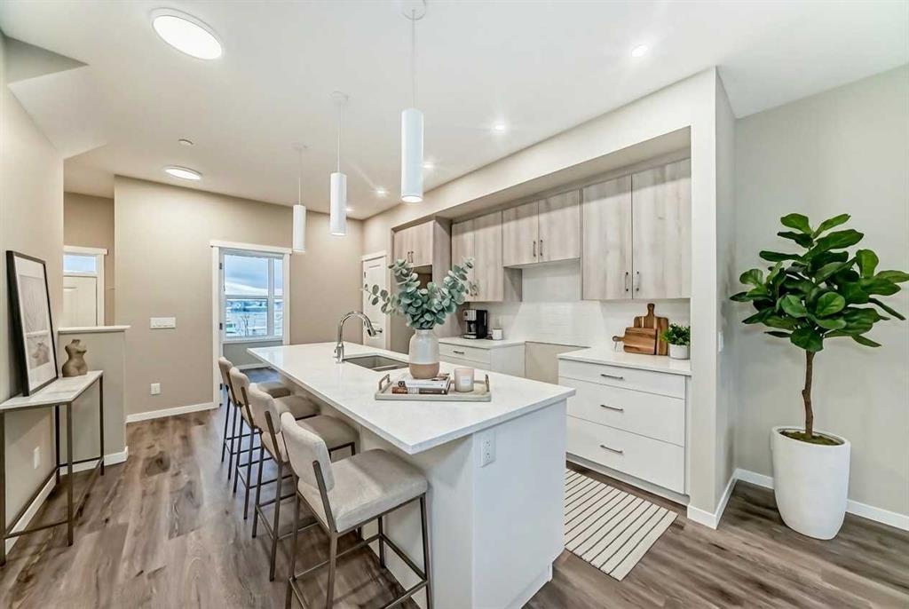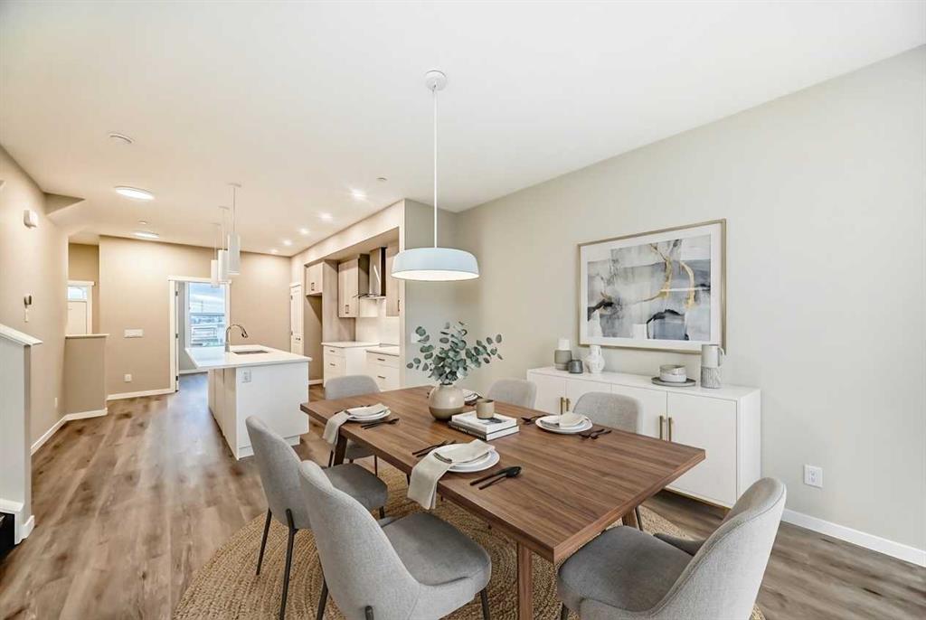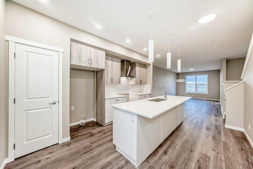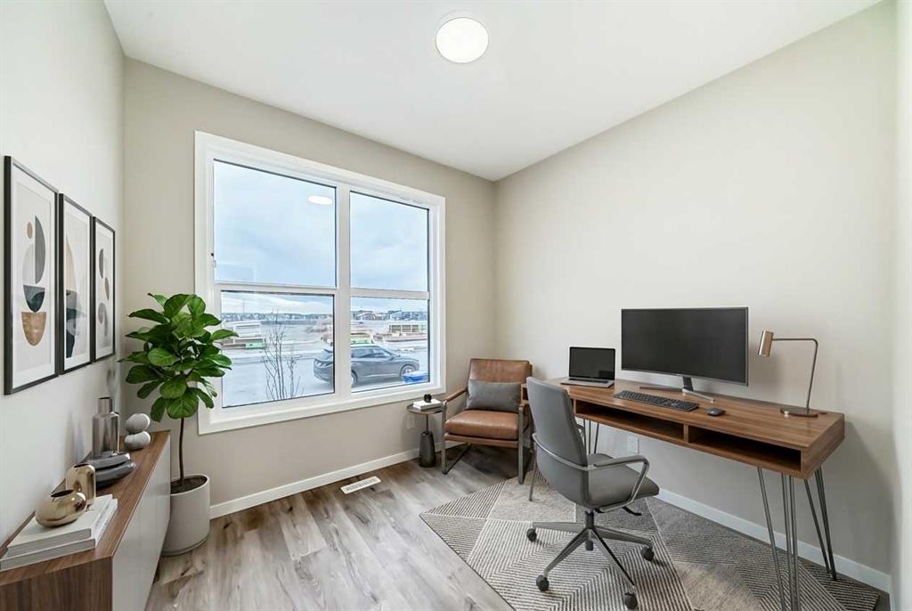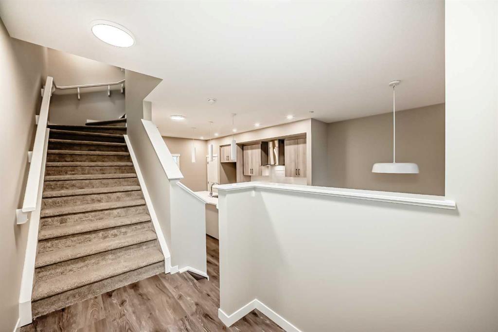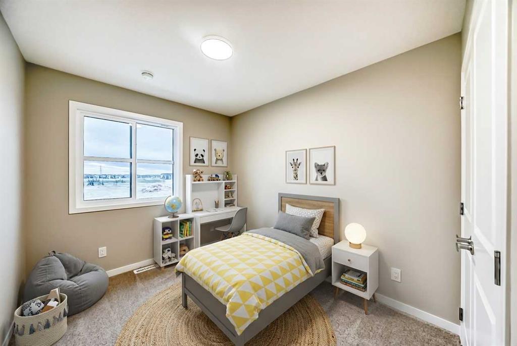 This brand-new “Rayn” pairs stylish family living with built-in flexibility thanks to a separate side entrance—perfect for a future suite or private lower-level development (A secondary suite would be subject to approval and permitting by the city/municipality). Inside, the main level impresses with warm natural vinyl plank flooring and modern finishes throughout. The central kitchen is the showpiece: natural wood-tone upper cabinets to the bulkhead with classic white lower cabinets, sleek subway backsplash, chimney hood fan, stainless steel appliances, and bright white quartz that wraps an oversized island—ideal for coffee catch-ups or weekend entertaining. The dining area sits perfectly between kitchen and living, comfortably fitting an extended table for holidays. At the rear, the living room features floor-to-ceiling windows for great light, plus a smartly tucked back entry with a 2-piece bath. Two unique spaces elevate daily life: a versatile flex room just off the kitchen (home office, playroom, or gym) and a raised homework/tech nook overlooking the main floor—clean, functional, and surprisingly fun. Upstairs, a cozy bonus room anchors the level (movie nights, play space, or reading corner). The primary retreat sits quietly at the back with an oversized window, a generous walk-in closet, and a stylish 4-piece ensuite featuring dual sinks and a full-size shower—finishes you’d expect in a much larger home. Hotchkiss is one of southeast Calgary’s newest master-planned communities, celebrated for its wide-open prairie and mountain vistas, quick connectivity, and nature-first design. Framed by Stoney Trail and Highway 22X for easy commuting—and just minutes to nearby Mahogany and Seton—Hotchkiss puts shopping, services, the South Health Campus, and daily essentials within easy reach. The community is anchored by a 30-acre natural wetland with boardwalks and pathways, part of a broader green network that’s planned to include roughly 51 acres of park space and trails, creating a true outdoor playground for walking, jogging, and wildlife watching. Family-friendly planning is central here, with future amenities that include a K-9 school and about four acres of neighbourhood commercial, plus new parks and play areas as the community builds out across its ~237 acres. In short, Hotchkiss offers the calm of nature, the convenience of the southeast, and the promise of a thoughtfully connected community as it grows.