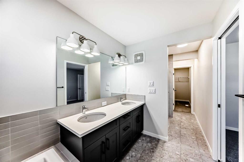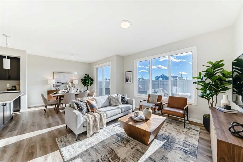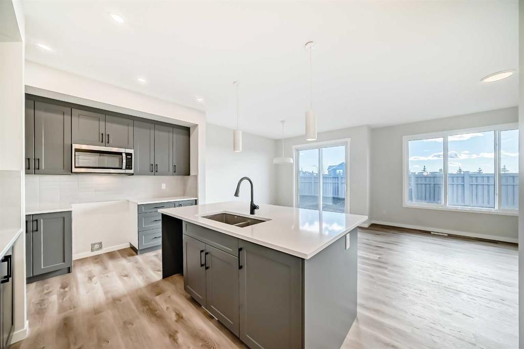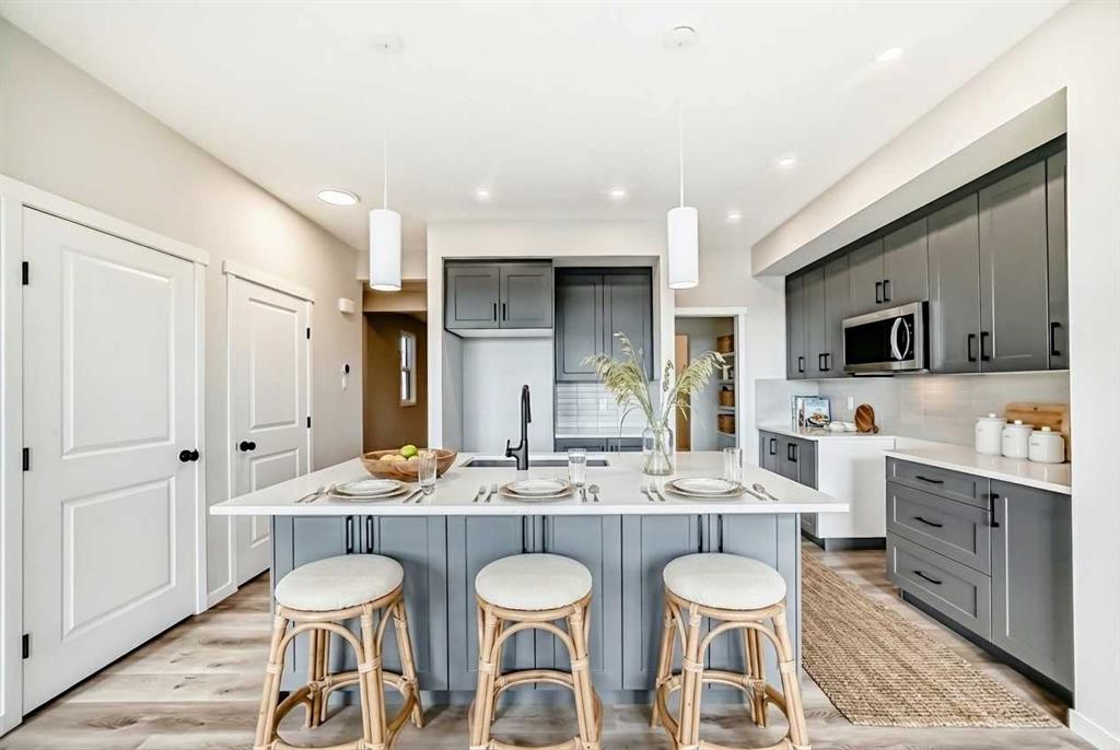Boxing Day pricing starts NOW — brand-new specs, brand-new savings. Welcome to the Kalara—where modern design, flexible living, and everyday functionality come together in one beautifully planned home. A bright, open-concept main floor connects the kitchen, dining, and lifestyle areas, all oriented to a desirable south-facing backyard that fills the space with natural light. The kitchen is a true standout with modern grey cabinetry carried to the bulkhead, black hardware, white quartz counters, a stacked subway tile backsplash, and stainless steel appliances. Thoughtful touches—like pot lighting and clever added storage under the island’s bar seating—make this space as practical as it is stylish. A versatile main-floor flex room adapts easily to a home office, study, or playroom, while upstairs a central loft offers an ideal media zone or reading nook. The upper floor is headlined by a smartly designed laundry room that connects directly to the primary ensuite—streamlining daily routines—alongside a serene primary retreat and two additional bedrooms for family or guests. Designed with tomorrow in mind, the home features a 9' foundation and a secondary side entrance, creating excellent potential for future basement development—think guest or in-law space, or a suite configuration (subject to city/municipality approval and permitting). With its balanced layout, quality finishes, and room to grow, the Kalara nails comfort, function, and value. Set in Mahogany—one of Calgary’s most sought-after lake communities—you’ll enjoy a 63-acre freshwater lake, two private beaches, and an extensive network of parks, pathways, and wetlands. Everyday essentials are close at hand with plentiful nearby shops and services, plus quick access to schools and the South Health Campus. It’s an active, four-season lifestyle wrapped in a vibrant community—an easy place to love calling home.