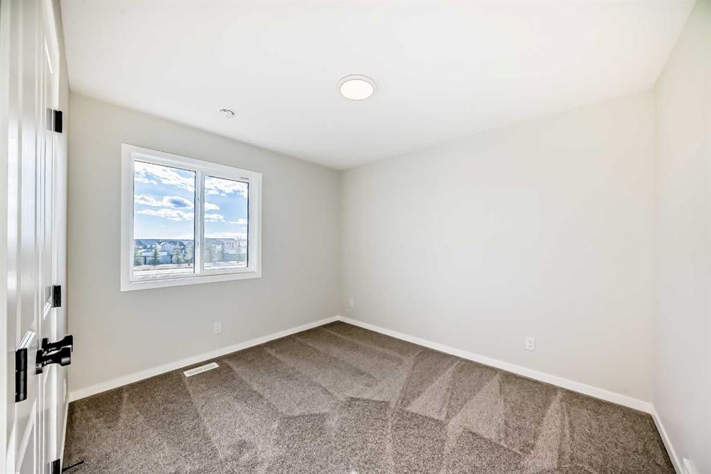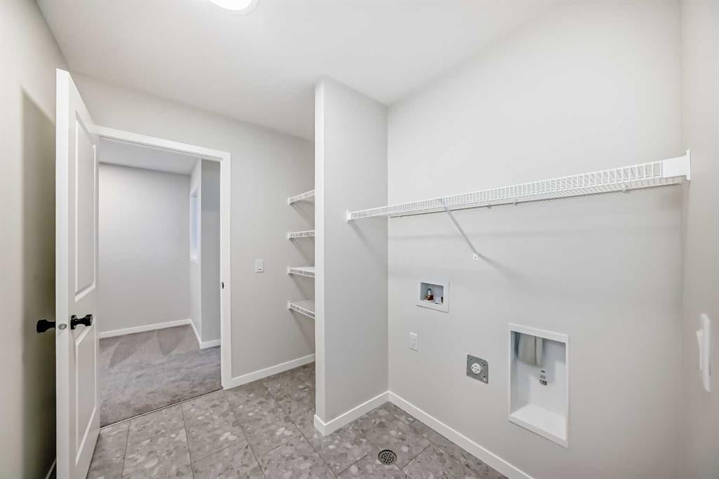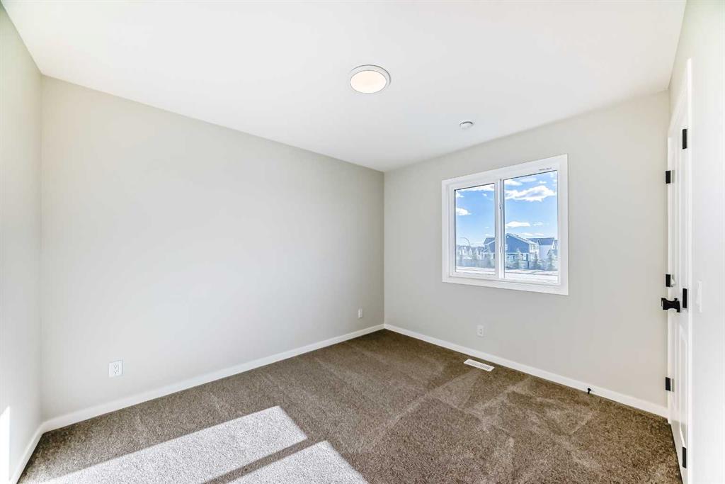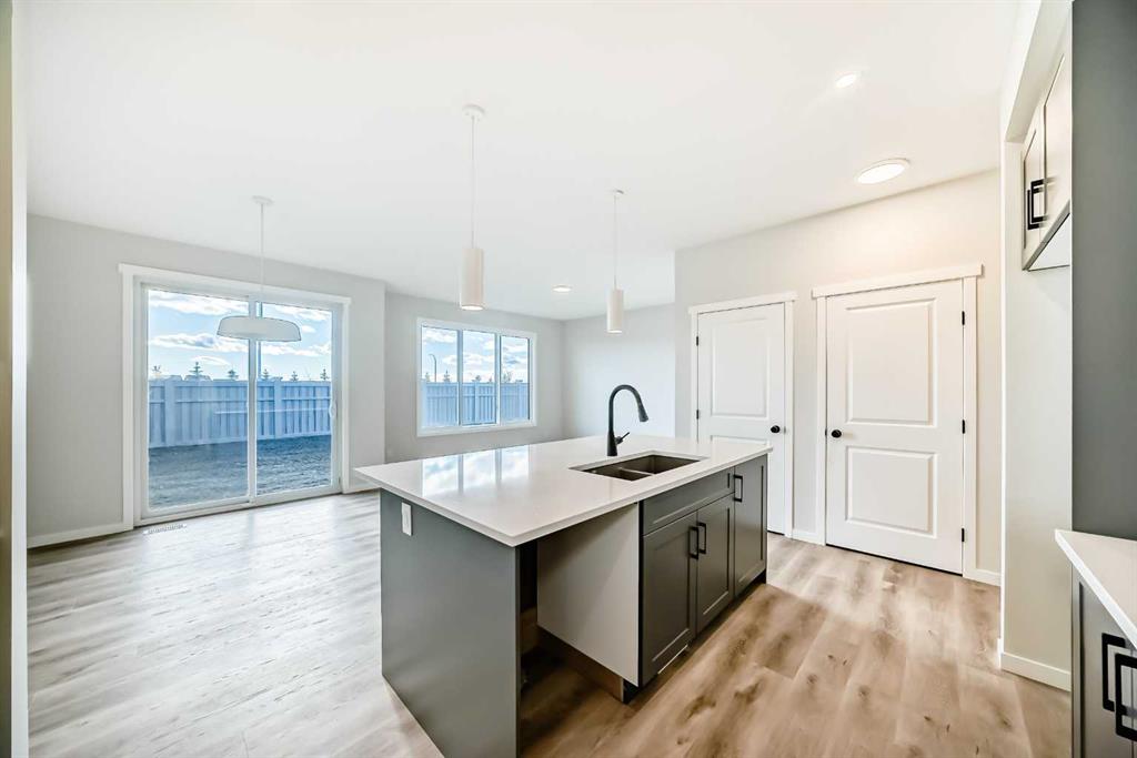 Welcome to the Kalara—where modern design, flexible living, and everyday functionality come together in one beautifully planned home. A bright, open-concept main floor connects the kitchen, dining, and lifestyle areas, all oriented to a desirable south-facing backyard that fills the space with natural light. The kitchen is a true standout with modern grey cabinetry carried to the bulkhead, black hardware, white quartz counters, a stacked subway tile backsplash, and stainless steel appliances. Thoughtful touches—like pot lighting and clever added storage under the island’s bar seating—make this space as practical as it is stylish. A versatile main-floor flex room adapts easily to a home office, study, or playroom, while upstairs a central loft offers an ideal media zone or reading nook. The upper floor is headlined by a smartly designed laundry room that connects directly to the primary ensuite—streamlining daily routines—alongside a serene primary retreat and two additional bedrooms for family or guests. Designed with tomorrow in mind, the home features a 9' foundation and a secondary side entrance, creating excellent potential for future basement development—think guest or in-law space, or a suite configuration (subject to city/municipality approval and permitting). With its balanced layout, quality finishes, and room to grow, the Kalara nails comfort, function, and value. Set in Mahogany—one of Calgary’s most sought-after lake communities—you’ll enjoy a 63-acre freshwater lake, two private beaches, and an extensive network of parks, pathways, and wetlands. Everyday essentials are close at hand with plentiful nearby shops and services, plus quick access to schools and the South Health Campus. It’s an active, four-season lifestyle wrapped in a vibrant community—an easy place to love calling home.