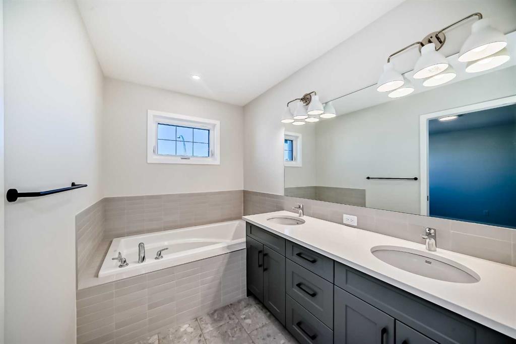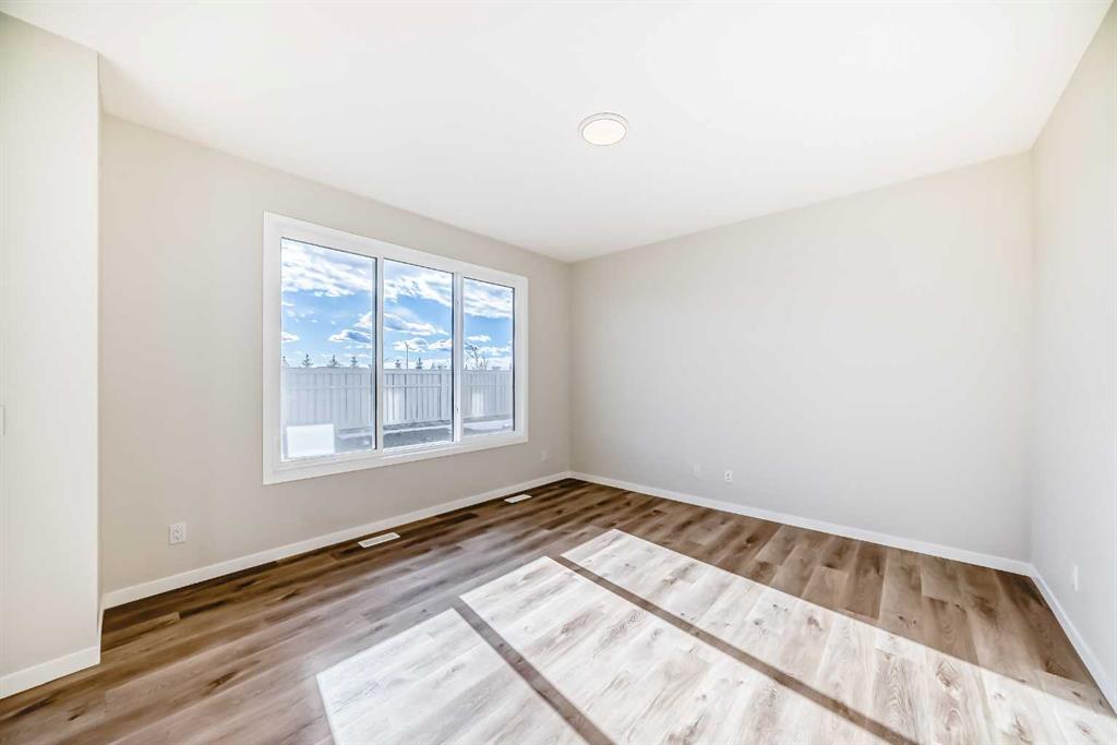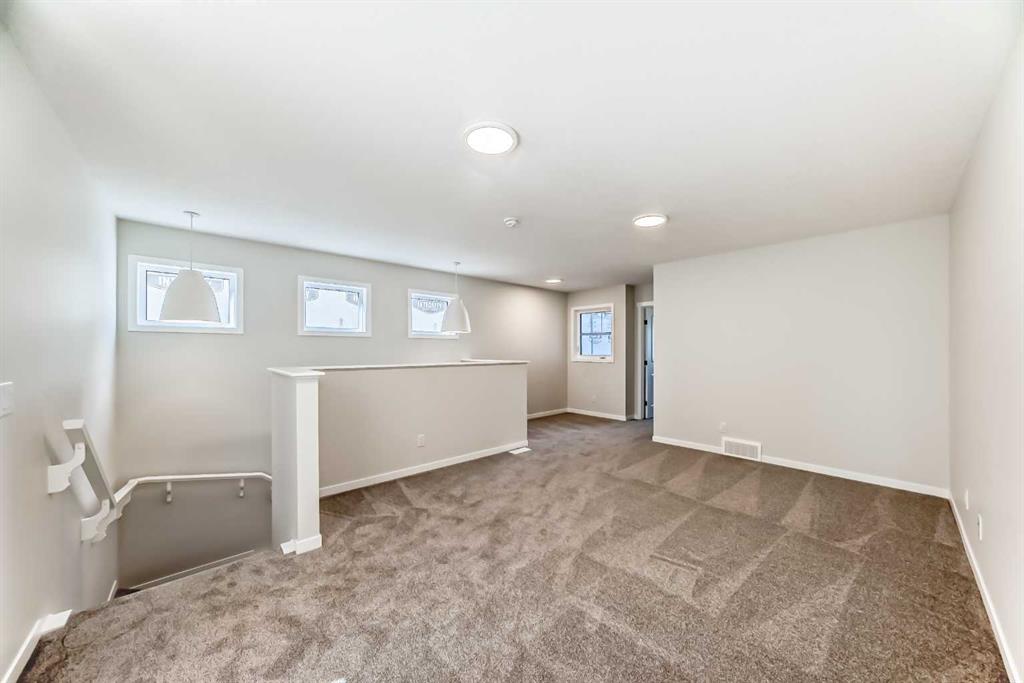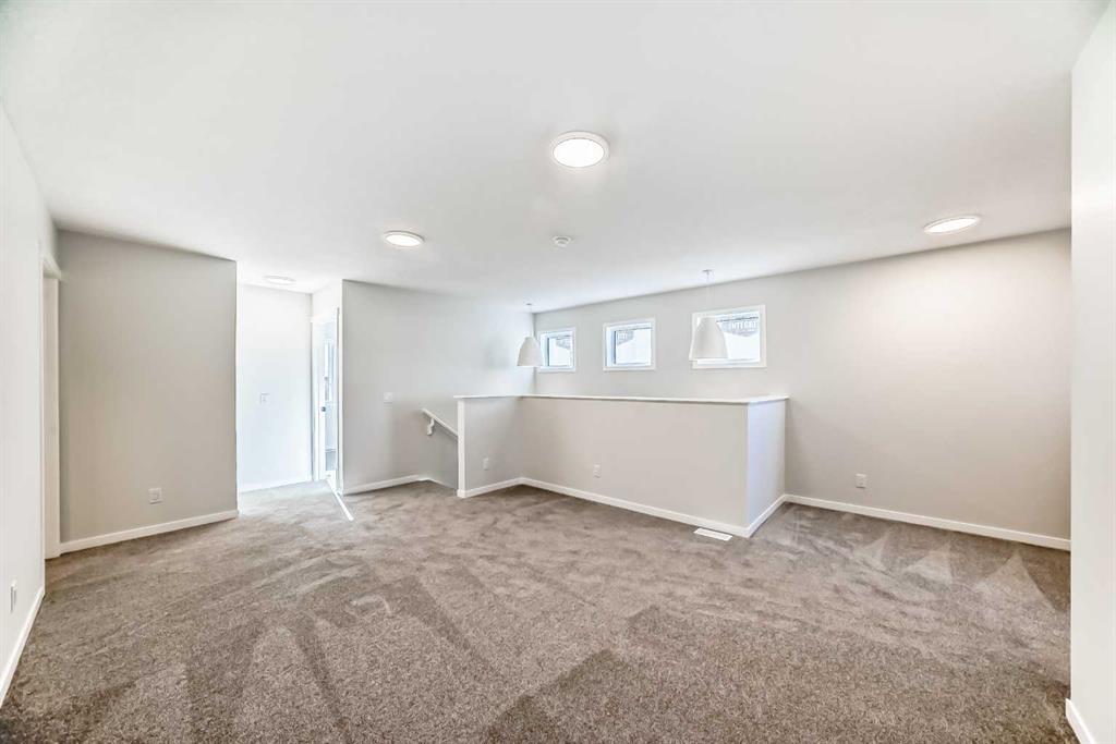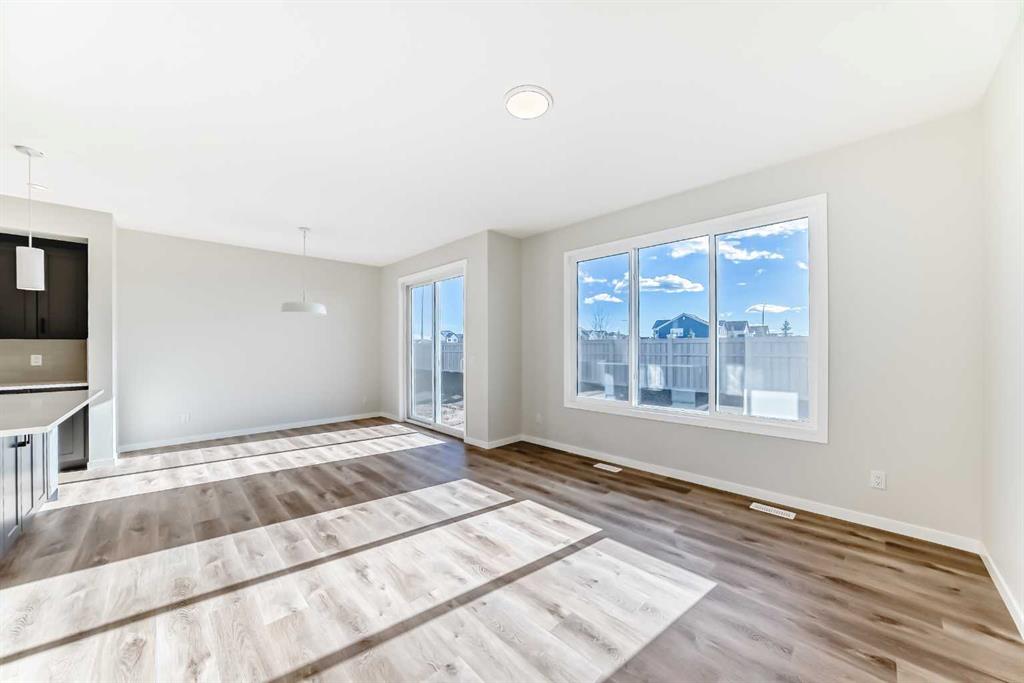 Welcome to the Kalara—where modern design, flexible living, and everyday functionality come together in one beautifully planned home. A bright, open-concept main floor connects the kitchen, dining, and lifestyle areas, all oriented to a desirable south-facing backyard that fills the space with natural light. The kitchen is a true standout with modern grey cabinetry carried to the bulkhead, black hardware, white quartz counters, a stacked subway tile backsplash, and stainless steel appliances. Thoughtful touches—like pot lighting and clever added storage under the island’s bar seating—make this space as practical as it is stylish. A versatile main-floor flex room adapts easily to a home office, study, or playroom, while upstairs a central loft offers an ideal media zone or reading nook. The upper floor is headlined by a smartly designed laundry room that connects directly to the primary ensuite—streamlining daily routines—alongside a serene primary retreat and two additional bedrooms for family or guests. Designed with tomorrow in mind, the home features a 9' foundation and a secondary side entrance, creating excellent potential for future basement development—think guest or in-law space, or a suite configuration (subject to city/municipality approval and permitting). With its balanced layout, quality finishes, and room to grow, the Kalara nails comfort, function, and value. Set in Mahogany—one of Calgary’s most sought-after lake communities—you’ll enjoy a 63-acre freshwater lake, two private beaches, and an extensive network of parks, pathways, and wetlands. Everyday essentials are close at hand with plentiful nearby shops and services, plus quick access to schools and the South Health Campus. It’s an active, four-season lifestyle wrapped in a vibrant community—an easy place to love calling home.