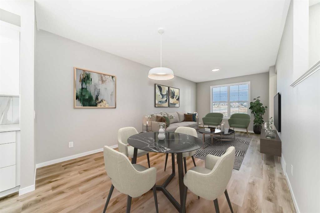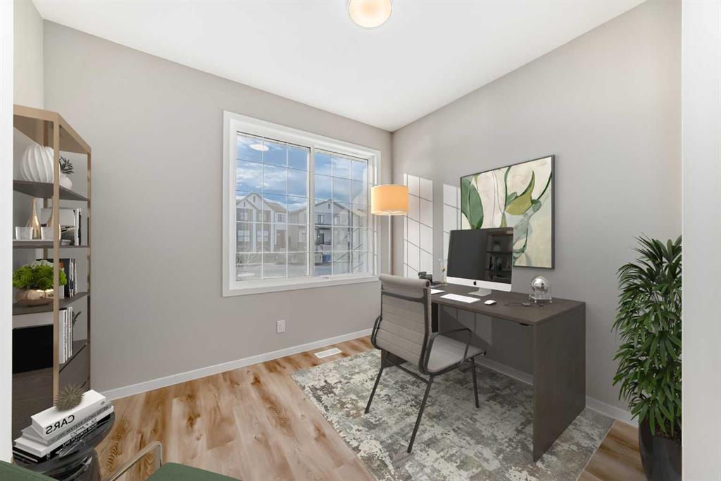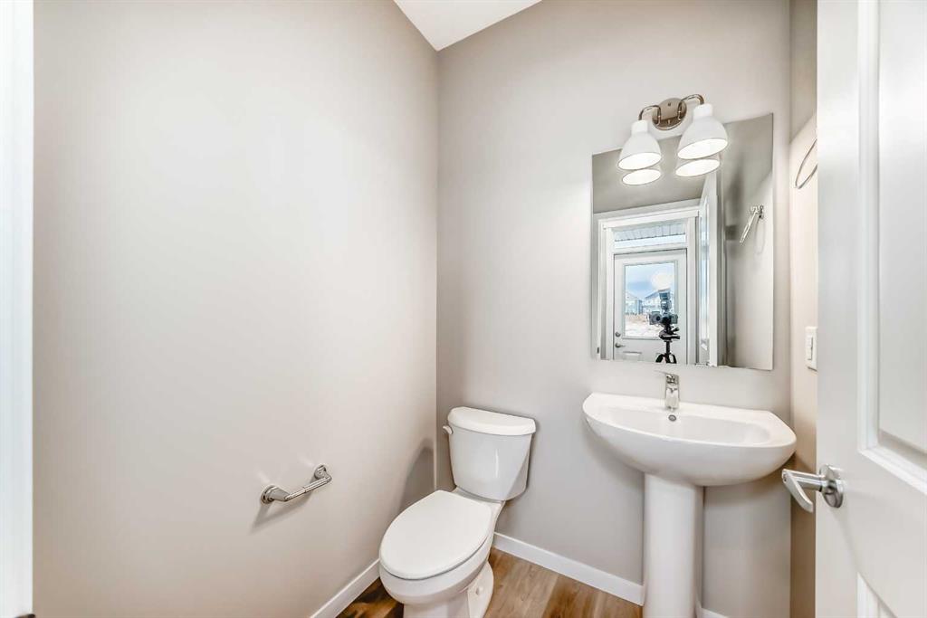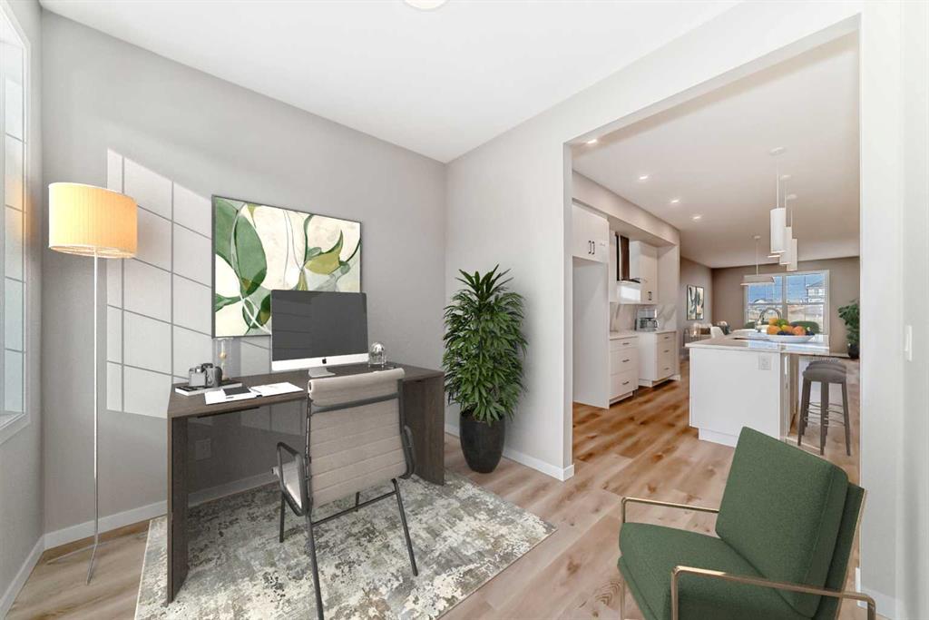 Welcome to this brand-new “Rayn” in Mahogany—a home that blends stylish family living with future flexibility. A separate side entrance offers the option for a private lower-level development or suite down the road (A secondary suite would be subject to approval and permitting by the city/municipality), while the main floor is designed for everyday ease with warm, natural luxury vinyl plank and clean, modern finishes throughout. At the heart of the home, the central kitchen shines with timeless white cabinetry raised to the bulkhead, bright white quartz countertops, and a white marble-style backsplash that wraps the stand-alone chimney hood fan for a seamless, upscale look. Stainless steel appliances and an oversized island make meal prep and casual entertaining effortless. The dining area sits perfectly between kitchen and living—roomy enough for an extended table—while the rear living room enjoys floor-to-ceiling windows and a smart back entry with a 2-piece bath. Just off the kitchen, a versatile flex room adapts to your life (home office, play space, fitness corner), and a raised homework/tech nook overlooks the main floor—organized, functional, and surprisingly fun. Upstairs, a cozy bonus room anchors the level for movie nights or quiet reading. The primary retreat is tucked at the back with an oversized window, a generous walk-in closet, and a chic 4-piece ensuite featuring dual sinks and a full-size shower—finishes you’d expect in a much larger home. Two additional bedrooms are well-proportioned, and the upstairs laundry and linen storage keep day-to-day living simple and tidy. Live the four-season lake lifestyle Mahogany is known for. Centered around Calgary’s largest freshwater lake and a 21-acre beachfront, the community offers private resident beaches, swimming, skating, and year-round events. Stroll the scenic wetlands and extensive pathway network, or head to the Urban Village for coffee shops, restaurants, services, and everyday conveniences. Families appreciate nearby schools and playgrounds; commuters value quick access to Stoney Trail, Deerfoot Trail, and the Seton District’s amenities (South Health Campus, shops, dining, and recreation). Mahogany pairs resort-style living with real-world convenience—making home feel like a getaway, every day.