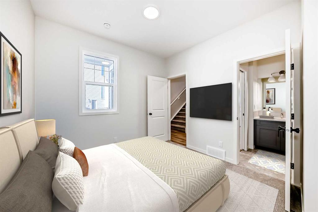 Boxing Day pricing starts NOW — brand-new specs, brand-new savings. Welcome to the Kalara—where modern design, flexible living, and everyday functionality come together in one beautifully planned home—now on one of Hotchkiss’s largest pie-shaped lots with a sunny, private backyard and a true walkout lower level. A bright, open-concept main floor connects the kitchen, dining, and lifestyle areas, all oriented to capture natural light and backyard views. The kitchen is a standout with modern grey cabinetry to the bulkhead, black hardware, white quartz counters, a stacked subway tile backsplash, stainless steel appliances, and thoughtful touches like pot lighting and clever storage under the island’s bar seating. At the front, a main-floor bedroom can act a versatile flex room or is the perfect spot for guests or multi-generational living—complete with a cheater door to a full 3-piece bathroom. Upstairs, a central bonus room creates an ideal media zone or reading nook, while the upper-level laundry connects directly to the primary ensuite for seamless daily routines. The serene primary retreat is complemented by two additional bedrooms for family or guests. Set on a traditional (not zero-lot-line) lot, you’ll appreciate extra side-yard space and easier exterior access. Downstairs, the 9' foundation and true walkout design unlock outstanding potential for future development—think expansive recreation space, additional bedrooms, or a bright lower-level suite configuration (subject to city/municipal approvals and permitting). With its balanced layout, quality finishes, rare lot size, and room to grow, this Kalara nails comfort, function, and long-term value. And of course, the Hotchkiss lifestyle Tucked in Calgary’s southeast with quick connections to Stoney Trail and Deerfoot, Hotchkiss offers a quiet, up-and-coming community feel with new parks, pathways, playgrounds, and wide-open prairie views. Everyday essentials, shopping, dining, and major services are a short drive away in nearby Seton and along 130th Avenue, with schools, recreation, and the South Health Campus comfortably within reach. If you’re after more space, modern design, and an easy commuter location—Hotchkiss delivers.