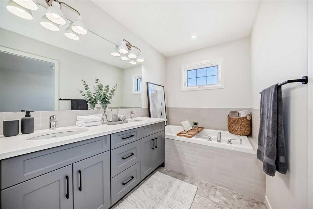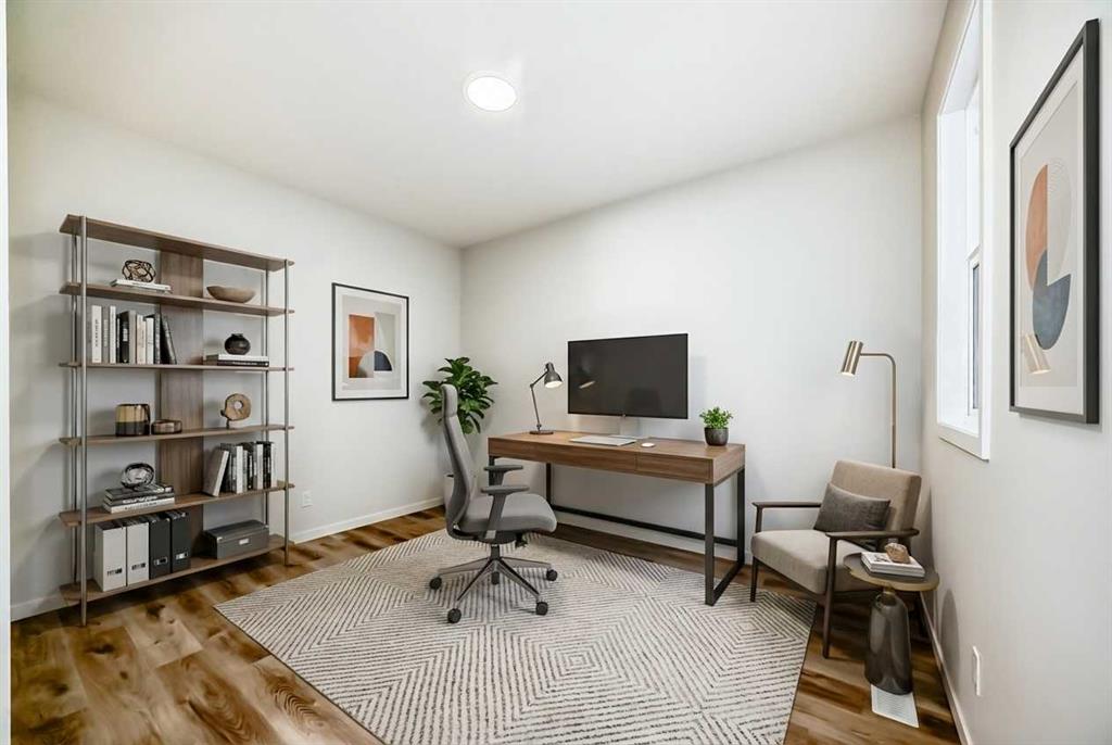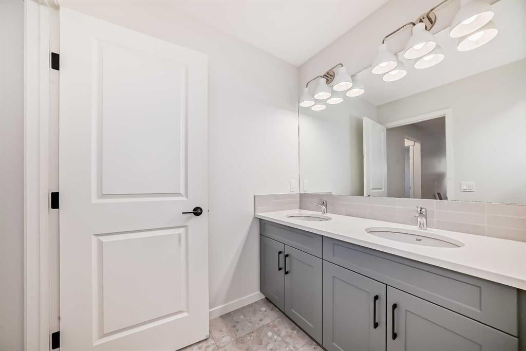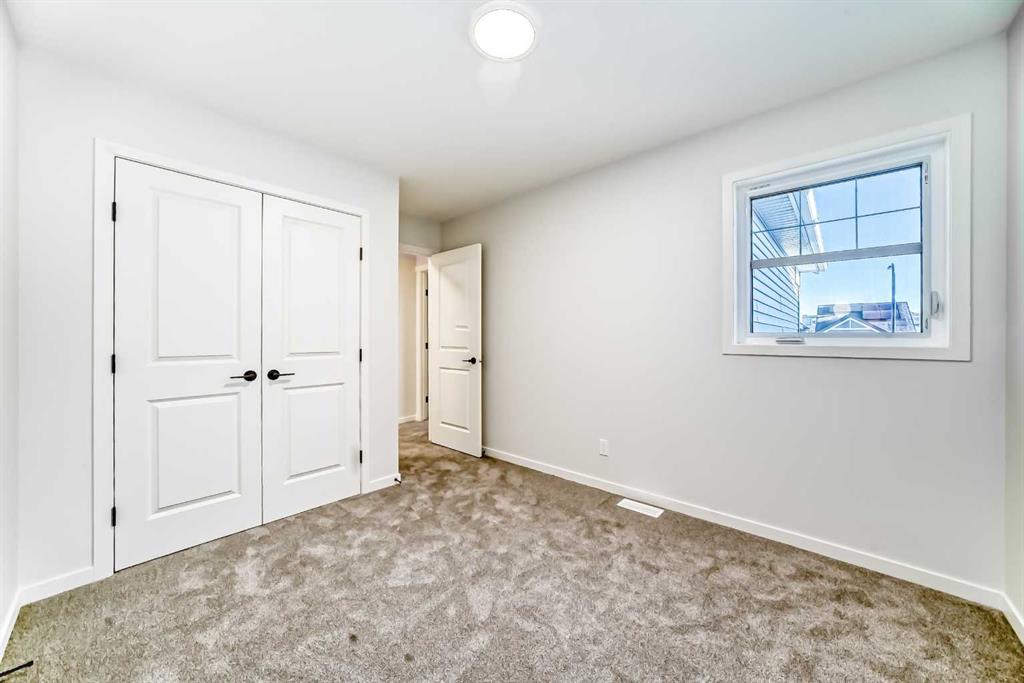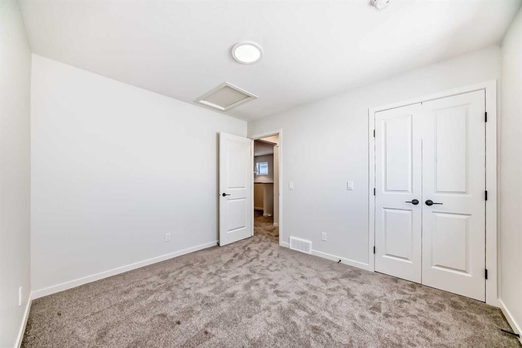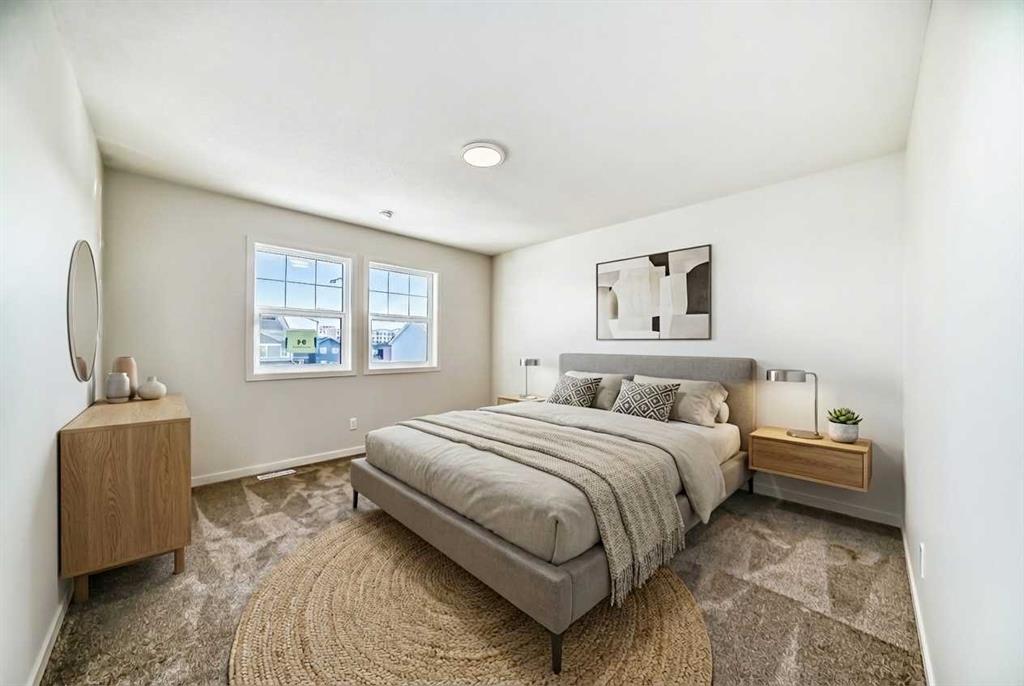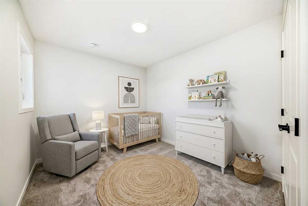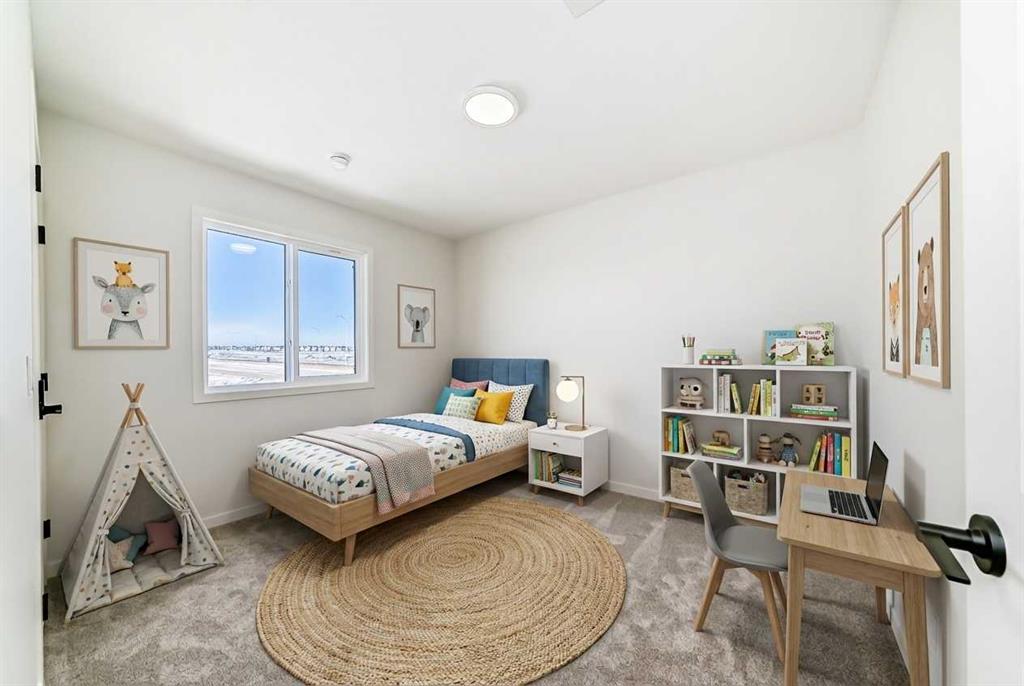 Welcome to the Kalara in Rangeview – a 4-bedroom family home where thoughtful design, modern finishes, and everyday comfort come together at an approachable price point. This beautifully crafted spec home is built for how families really live, offering a smart blend of functionality, flexibility, and style from top to bottom. The open-concept main floor creates a seamless flow between the kitchen, dining, and lifestyle areas—perfect for everything from casual weeknights to hosting friends and family. Large windows and a west-facing backyard flood the main living space with natural light all afternoon, giving the home a warm, inviting feel. Throughout the main floor you’ll find luxury vinyl plank flooring, providing a durable, low-maintenance surface that looks great and stands up to busy family life. At the heart of the home is a stylish, modern kitchen that truly shines. You’ll love the modern grey cabinetry paired with white quartz counters, a stacked subway tile backsplash, and black hardware that adds a clean, contemporary contrast. A sleek chimney-style hood fan, built-in microwave, and pot lights elevate the look and function, while the spacious island offers extra prep space and seating. The walk-in pantry keeps everything organized and close at hand, making meal prep and grocery storage a breeze. A main floor flex room adds valuable versatility—use it as a home office, study space, playroom, or hobby room depending on your needs. Upstairs, a centrally located loft provides even more flexibility, working perfectly as a cozy media area, kids’ hangout, or quiet reading space. The upper floor layout is designed with families in mind, featuring 4 bedrooms up plus the loft, so everyone has their own space. The primary suite is a relaxing retreat, complete with a generous walk-in closet and a gorgeous 5-piece ensuite with dual sinks, separate shower, and soaker tub. The kids’ wing is equally impressive, featuring a 5-piece main bathroom with double sinks—ideal for busy mornings and bedtime routines. Convenient upper floor laundry means no more hauling baskets up and down the stairs. Additional perks include a double front attached garage, providing ample parking and storage, and it’s roughed in for a future EV charger, making this home a smart choice for the future. The 9-foot foundation and separate side entrance offer excellent potential for future basement development (subject to city approval), whether you envision a guest suite, multi-generational space, or an income helper down the road. Located in Rangeview, Calgary’s first garden-to-table community, this home is part of a neighbourhood designed around connection, sustainability, and lifestyle. Enjoy parks, pathways, community gardens, and welcoming gathering spaces, all while being conveniently close to schools, shopping, and the South Health Campus. The Kalara offers the space, style, and community setting to support your family for years to come.
