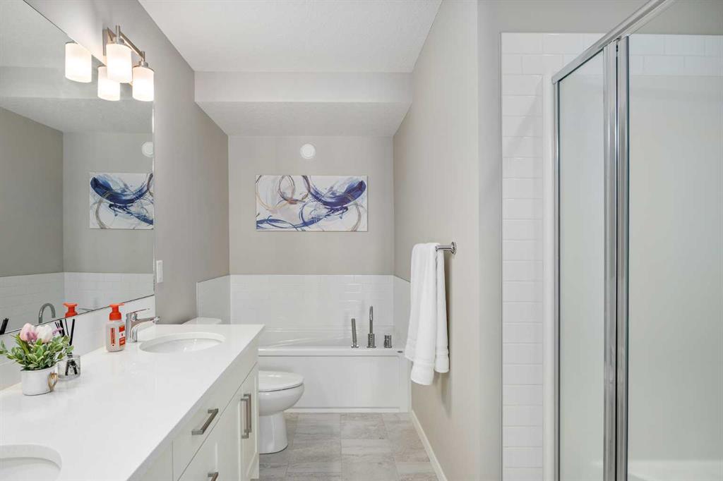 Lakeside Living in Mahogany—Where Every Day Feels Like a Getaway. Welcome to Mahogany and this gorgeous 2 storey, a thoughtfully designed 3-bedroom, 2.5-bathroom home offering the perfect blend of elevated comfort and year-round lifestyle in Calgary’s premier lake community. Located just a short walk from the beach club, scenic wetlands, and nearby schools, this home places you at the centre of everything Mahogany has to offer—whether it’s paddleboarding on the lake in the summer, skating under the stars in the winter, or taking in peaceful evening strolls along the winding pathways. Inside, you’re welcomed by a bright, open-concept layout filled with natural light. The main floor combines stylish functionality with everyday comfort. A cozy front living room with soaring windows creates the perfect space for relaxing or hosting, while the dedicated office/den offers privacy for remote work or quiet study. At the heart of the home, the chef-inspired kitchen features timeless white cabinetry, quartz countertops, a gas stove, stainless steel appliances, classic subway tile backsplash, and pot lighting. The oversized dining area is ideal for both casual family dinners and entertaining friends. Large windows across the back of the home above the sink provide picturesque views of the yard and fill the space with warm sunlight. Upstairs, the primary suite is a serene retreat with oversized windows, a walk-in closet, and a spa-inspired ensuite complete with modern finishes. Two additional bedrooms and a full bath offer comfort and flexibility for family or guests, and the upper-floor laundry room adds convenience where it matters most. The unfinished basement is a blank canvas giving you the flexibility to design a home gym, kids’ play area, fourth bedroom, or media room. Step outside to a south-facing backyard built for enjoyment. A large deck is perfect for summer BBQs and evening hangouts, while the double detached garage includes EV charging capabilities—ready for today and tomorrow. Bonus features like central A/C ensure year-round comfort no matter the season. Living in Mahogany means more than just owning a home—it’s a lifestyle. With 84 acres of lake and beachfront, two private beach clubs, 22 kilometres of trails, playgrounds, wetlands, and an adult outdoor fitness park, there’s something for everyone. The home is also just minutes from Mahogany Village Market, Westman Village, the South Health Campus, and major roadways for an easy city commute. Don’t miss your chance to live in one of Calgary’s most vibrant and connected lake communities. Book your private showing today!