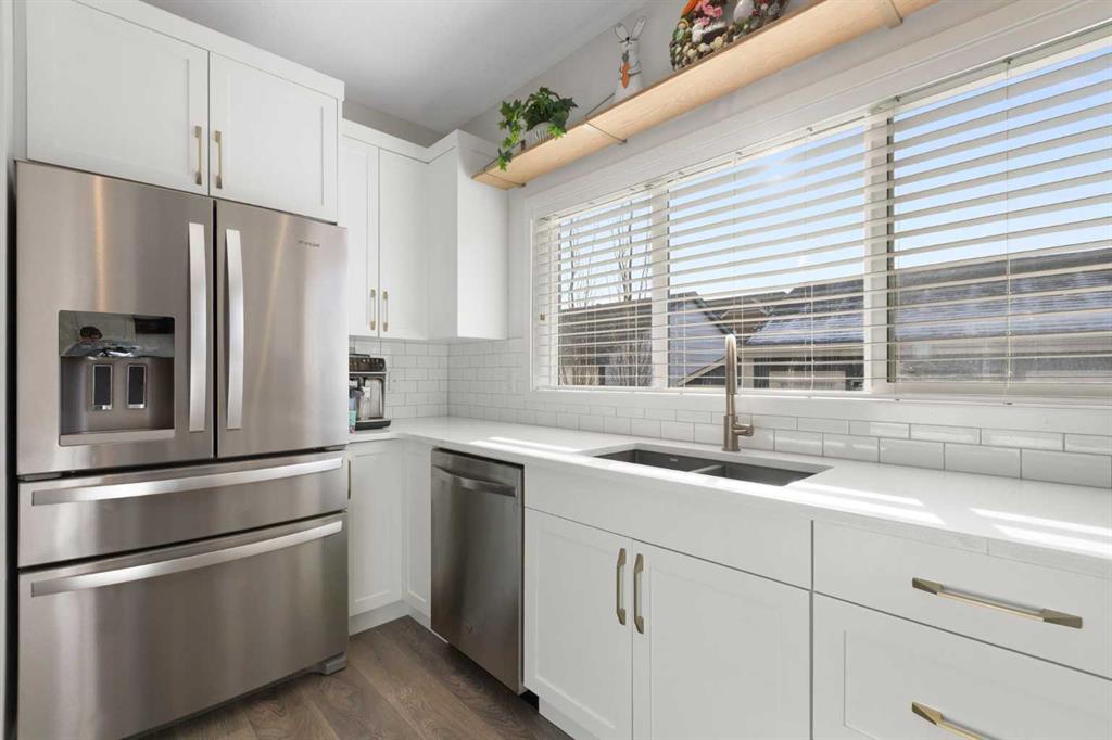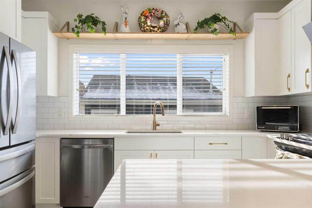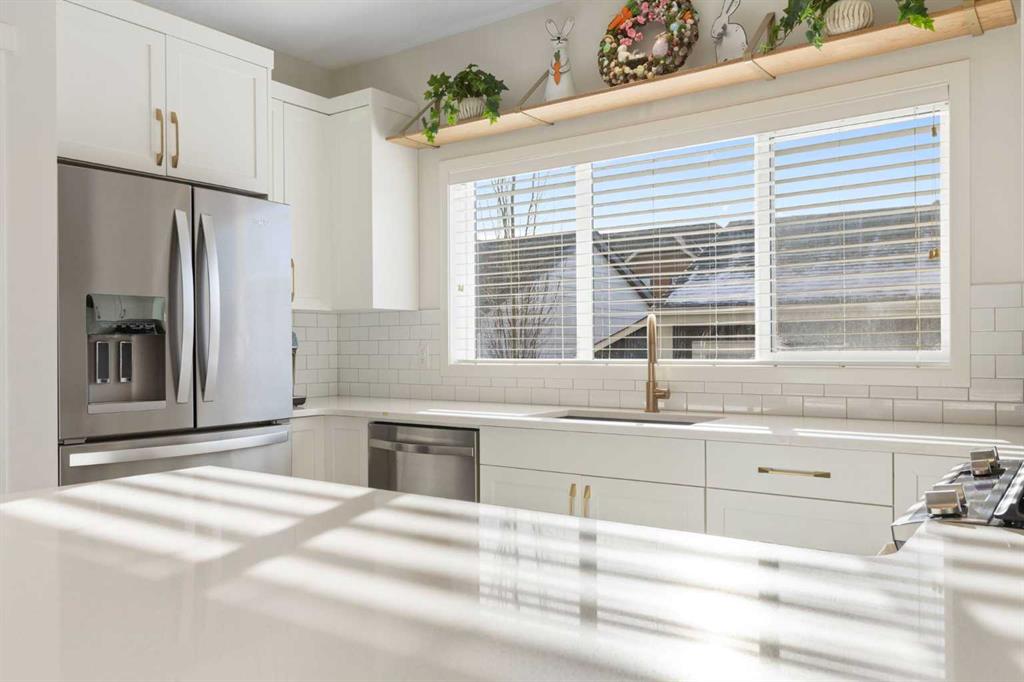 Set on a prime corner lot at the end of a quiet cul-de-sac, this home offers the kind of privacy and “no through-traffic” setting families love—while the extra corner-lot windows bring in noticeably more natural light. Add in the sun-soaked south-facing backyard and you’ve got a property that feels bright, warm and welcoming. From the moment you arrive, it’s clear this home has been thoughtfully upgraded and beautifully maintained. Fully finished on all three levels with over 2,200 sq. ft. of designer-finished living space, it offers both the function you need and the style you want. The main level is both comfortable and inviting, anchored by a spacious living room overlooking the quiet front street. At the back of the home, the sunny south-facing kitchen overlooks the landscaped yard, keeping you connected to outdoor living while you cook, entertain, or keep an eye on the kids. The kitchen is finished with quartz countertops, a gas stove and bar seating that naturally becomes the gathering spot for family and guests. The dining area flows seamlessly with the kitchen and living space, creating an open layout that works well on busy mornings and for holiday meals. A bonus is the private office, complete with built-in workspace—ideal for working from home or homework time. A functional mudroom with custom millwork rounds out the main floor. Upstairs, the primary bedroom is a standout. This isn’t just a place to sleep—it’s a space that’s been elevated with extensive custom built-ins and cabinetry, offering a clean, finished look and serious storage. A walk-in closet and a spa-like 5-pce ensuite complete the retreat. Two additional generously sized bedrooms provide flexibility for kids or guests and the laundry room includes extra storage to keep everything tidy and efficient. The basement is finished to match the rest of the home, here you’ll find a comfortable fourth bedroom, a separate hobby room perfect for crafts, home gym, or workspace and a rec area anchored by a custom media unit and built-ins—ideal for movie nights, gaming, or creating a second hangout area for the family. With an additional bathroom and smart storage, this level is set up to handle everything from guests to growing families. Outside, the backyard is a true highlight—fully landscaped and thoughtfully designed for entertaining and everyday enjoyment with a raised deck and lower patio, creating multiple areas to barbecue, lounge, and soak up the sun. The oversized heated double garage on the paved back lane is a rare bonus, and the large paved area beside it is the perfect “kids zone” for shooting hoops, road hockey, or outdoor games—letting them play safely without being out on the street. Packed with upgrades including Gemstone lighting, California Closets built-ins, air conditioning, and underground sprinklers, this home checks every box. And the location ties it all together: steps to the wetlands, close to schools, parks, pathways and the unbeatable year-round lake lifestyle.