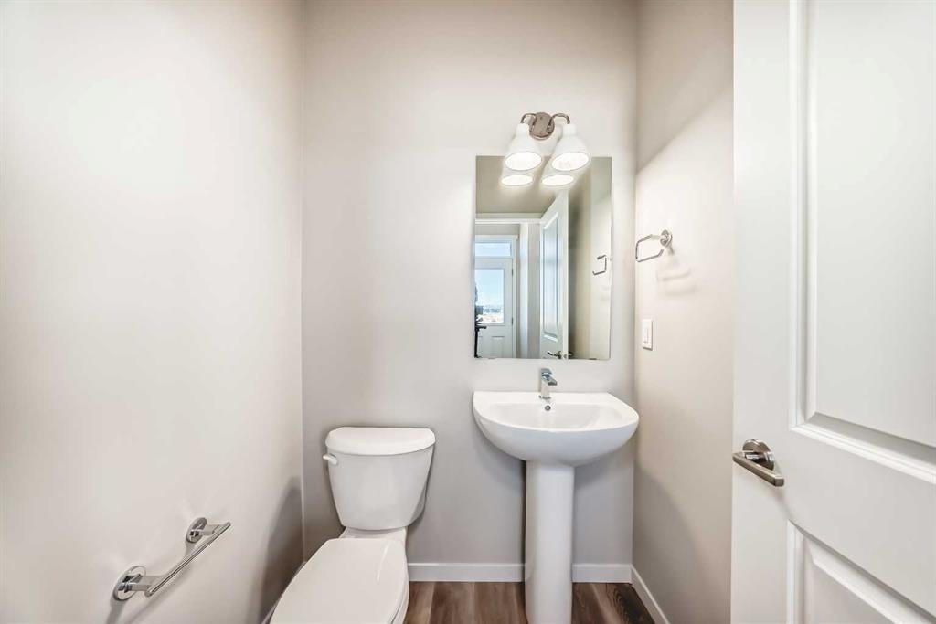 This brand-new “Rayn” is designed for real life—bright, modern, and thoughtfully laid out so it feels easy from the moment you walk in. Warm natural vinyl plank flooring, clean lines, and a fresh, timeless palette set the tone, while abundant windows keep the main level airy and sun-filled throughout the day. Thoughtful sightlines create an open feel without sacrificing defined, usable rooms. At the heart of the home, the central kitchen blends style and function with natural wood-tone cabinetry to the bulkhead, a sleek marble style backsplash, chimney hood fan, stainless steel appliances, and crisp white quartz coounters. The oversized island is made for morning coffee, quick meals, and casual entertaining, with space for seating so guests naturally gather where you want them. The dining area sits perfectly between the kitchen and living room with space for a full-sized table, ideal for holiday dinners, board-game nights, or weekend brunches. The rear living room is anchored by an oversized window, creating a comfortable space for movie nights and relaxing evenings. A smart rear entry keeps everyday life organized, and the convenient 2-piece bath is perfectly placed for guests and busy mornings. Two standout flex spaces elevate the layout: a versatile main-floor flex room just off the kitchen (home office, playroom, or gym) and a raised homework/tech nook overlooking the main floor—practical, clean, and great for keeping laptops, homework, and daily clutter off the kitchen island. Upstairs, a cozy bonus room offers a second lounge for kids, reading, or a media space. The primary retreat is tucked quietly at the back with an oversized window, a generous walk-in closet, and a stylish 4-piece ensuite featuring dual sinks and a full-size shower, finishes you’d expect in a much larger home. Two additional rooms are perfect for the growing family and the upper floor laundry ensures wash day is a breeze. Downstairs, the walkout basement adds major lifestyle value with direct backyard access and the potential for a bright future rec space. Step outside to enjoy the rear deck—perfect for BBQs and summer evenings. And later, you’ll appreciate a key planning advantage: the separate side entrance for future flexibility, ideal for a suite or private lower-level development (secondary suite subject to approval and permitting by the city/municipality). Set in southeast Calgary’s growing Hotchkiss community, you’ll enjoy quick access to Stoney Trail and 22X, plus nearby Mahogany, Seton, shopping, services, and the South Health Campus—along with pathways and natural spaces that make it easy to get outside and enjoy the neighbourhood.