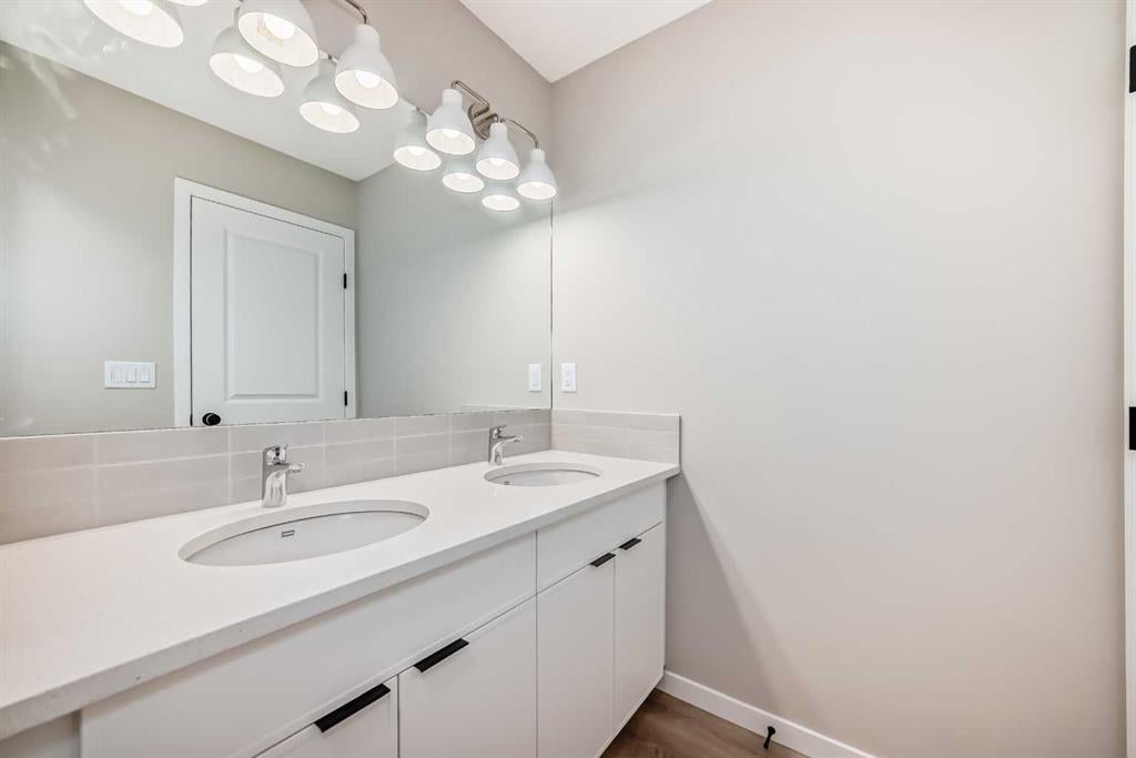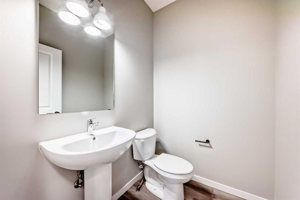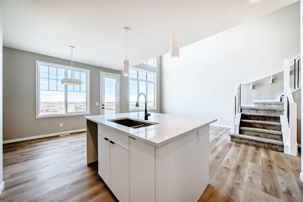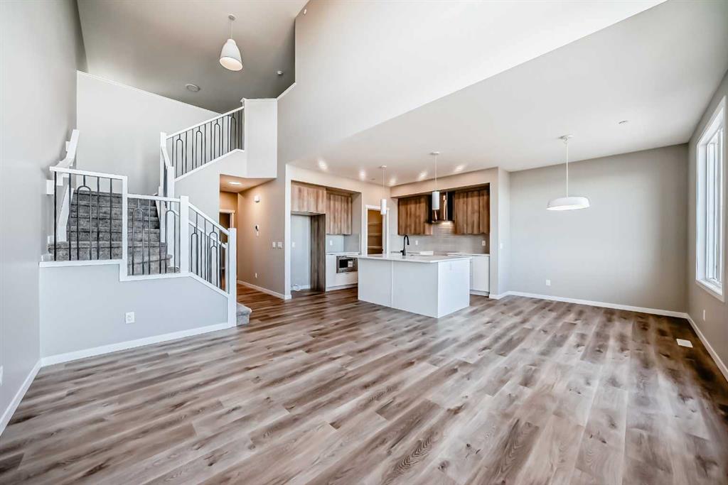 Welcome to the “Grada” by Hopewell Residential—where contemporary design meets family-friendly functionality in the vibrant community of Hotchkiss. This beautifully crafted home spans 2,112 sq. ft. and offers 3 spacious bedrooms with a layout designed to make everyday life feel easier, brighter, and more connected. Step inside and you’ll immediately feel how the main floor is built for real life. Just off the entry, a versatile flex space with a glass insert door is perfect for a home office, playroom, homework zone, or quiet retreat. The heart of the home opens up into an inviting dining area and lifestyle room that flow effortlessly for both daily routines and entertaining. The soaring open-to-above living room adds a wow factor with an airy, light-filled feel, and large windows keep the space feeling fresh from morning to evening. At the center of it all, the kitchen is designed to impress and perform. You’ll love the upgraded layout with a stylish chimney-style hood fan, built-in microwave, extra storage drawers, elegant quartz countertops, and a large island that anchors the space for casual meals, coffee catch-ups, or hosting friends. The two-tone cabinetry is a standout feature, with wood grain upper cabinets extended to the bulkhead and crisp white lower cabinets, paired with a classic subway tile backsplash for a clean, timeless look. Thoughtful upgrades continue with black interior hardware and knockdown ceiling textures, adding a modern edge throughout. The entertainment potential extends outdoors with a walkout lot and a generous 15’ x 10’ deck—perfect for summer dinners, morning coffee, or relaxing at the end of the day. An exterior gas line is already in place for a future BBQ, making it easy to enjoy Calgary’s long warm evenings. Upstairs, you’ll find three spacious bedrooms, including a luxurious primary suite featuring a step-in shower—your own private retreat. The additional bedrooms are the perfect size for the growing family and served by a beautiful full bathroom, while the upper-floor laundry room is perfectly placed to keep day-to-day life running smoothly. Downstairs, the walkout basement is ready for your future plans with a 9-foot foundation, offering the opportunity for added living space or a potential mortgage-helper suite (a secondary suite would be subject to approval and permitting by the city/municipality). Located in southeast Calgary, Hotchkiss offers stunning mountain views, 51 acres of park space, walking pathways, and a beautiful central wetland. Designed with families in mind, this community delivers the green space, connectivity, and lifestyle that make it easy to settle in and feel at home. Discover the next chapter of your life with The Grada.