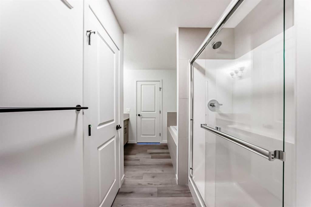 Welcome to the “Grada” by Hopewell Residential, where contemporary design meets family-friendly functionality in the vibrant community of Rangeview. Offering 2,112 sq. ft. of thoughtfully planned living space, this home features 3 spacious bedrooms and a bright, connected layout designed to make everyday life feel easier and more enjoyable. Step inside and you’ll immediately appreciate how the main floor is built for real life. Just off the entry, a versatile flex space with a glass insert door is ideal for a home office, playroom, homework zone, or quiet retreat. From there, the home opens into an inviting dining area and lifestyle room that flow effortlessly for both daily routines and entertaining. The soaring open-to-above living room adds a true wow factor, flooded with natural light and framed by large windows. An electric fireplace anchors the space, bringing a cozy focal point that makes it feel just as inviting on quiet evenings as it does when you’re hosting. At the centre of it all, the kitchen is designed to impress and perform. You’ll love the upgraded layout with a stylish chimney-style hood fan, built-in microwave, extra storage drawers, elegant quartz countertops, and a large island that anchors the space for casual meals, coffee catch-ups, and gathering with friends. The cabinetry is a standout with rich wood grain cabinets throughout, complemented by a stacked square modern backsplash for a crisp, contemporary finish. Thoughtful upgrades continue with spindle railing and knockdown ceiling textures, adding a modern edge across the home. Outside, this home offers something just as valuable: a large west-facing lot that’s made for sunshine and lifestyle. Whether it’s afternoon light pouring into the backyard, room for kids to play, or space to create the outdoor setup you’ve been dreaming of, this is the kind of lot that makes everyday living feel bigger, especially during Calgary’s long summer evenings. Upstairs, you’ll find three good-sized bedrooms, including a luxurious primary suite featuring a step-in shower, your own private retreat. The additional bedrooms are perfect for a growing family, served by a beautiful full bathroom, while the upper floor laundry room is perfectly placed to keep day-to-day life running smoothly. Downstairs, the basement is ready for your future plans with a 9-foot foundation, and the separate side entrance adds valuable flexibility, ideal for a future development or the potential of a mortgage-helper suite (a secondary suite would be subject to approval and permitting by the city/municipality). Set in southeast Calgary, Rangeview is designed around connection, pathways, parks, and a community feel that encourages getting outside, meeting neighbours, and enjoying a more lifestyle-forward neighbourhood. Discover your next chapter with The Grada.