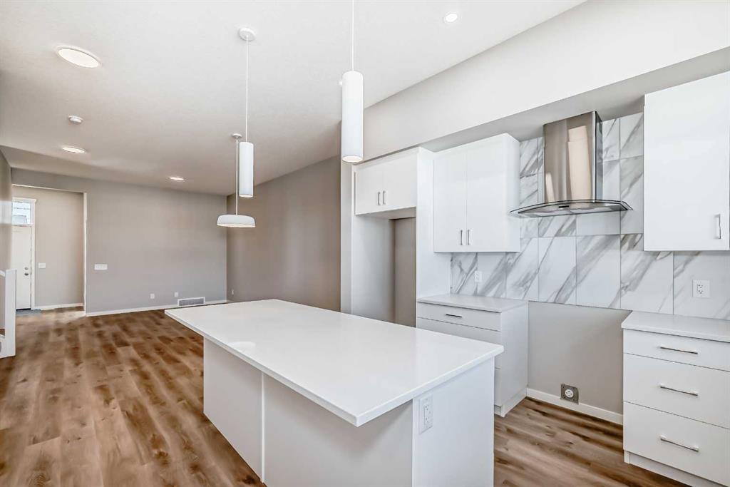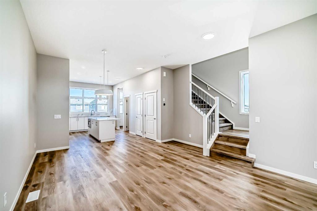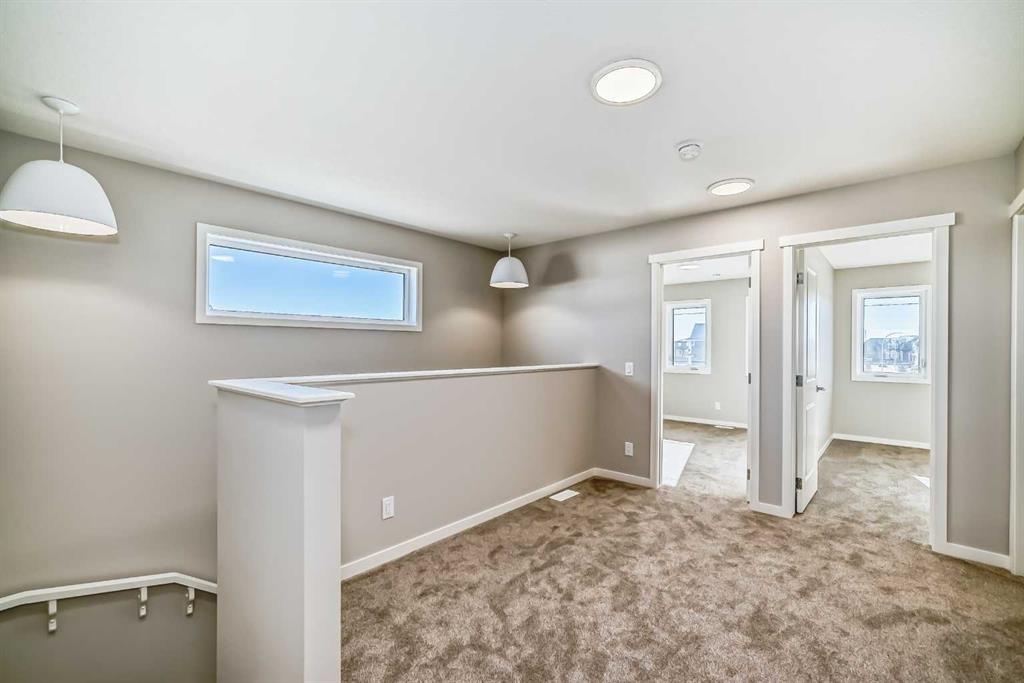 Welcome to this brand-new “Lyall”—a polished, modern home that blends designer style with everyday practicality, all set on a great location and a walkout lot that adds real lifestyle value. Step inside and you’re greeted by soaring 10’ ceilings and warm luxury vinyl plank flooring that carries through the main level, setting the tone for a bright, open feel. A flexible front flex room is perfect for a home office, reading lounge, or play space, whatever your day-to-day needs most. Toward the back, the layout opens up for easy living and entertaining, with an inviting living room, an oversized dining area, and a kitchen designed to anchor the home. Here, you’ll find quartz countertops, a gorgeous marble style tile backsplash, stainless steel appliances, and a large island that naturally becomes the gathering spot, finished off with sleek black hardware that ties everything together with a clean, contemporary look. Upstairs, a centrally located loft creates a true second living space while providing great separation between bedrooms. The primary suite feels like a retreat with a spacious walk-in closet and a spa-inspired 4-piece ensuite featuring dual sinks—ideal for busy mornings. Two additional bedrooms, a full 4-piece bath, and convenient upper-floor laundry round out the upper level with the kind of functionality families appreciate. Downstairs, the walkout basement is the game-changer, bringing in extra natural light and opening up flexible options for future development, media space, gym, or guest area. The walkout basement also provides a secondary entrance that adds even more versatility for a future suite(subject to city/municipality approval and permitting). And then there’s Mahogany—a true four-season lake community where lifestyle leads the way. From Calgary’s largest freshwater lake and two private beaches to the Beach Club, tennis courts, skating rinks, fishing spots, playgrounds, and 22+ km of pathways and wetlands, it’s the kind of neighbourhood that keeps you outside and connected. Add in the Village Market’s restaurants, cafés, shops, fitness studios, and quick access to South Health Campus and the Seton Urban District, and you’ve got a location that’s as practical as it is fun. A beautifully finished home, a walkout lot, and a prime setting in Mahogany, this is one you’ll want to see in person.