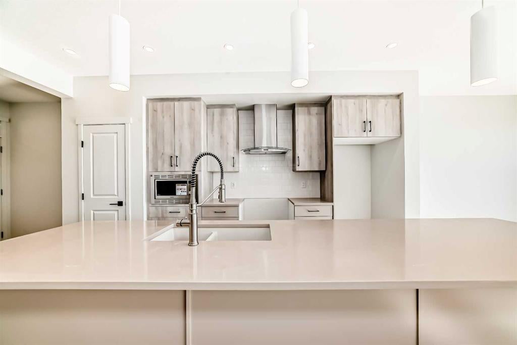 Introducing the exquisite “Tilsa” by Hopewell Residential in Calgary’s award-winning lake community of Mahogany, where thoughtful design, modern finishes, and four-season lifestyle all come together. From the moment you arrive, this home feels inviting and functional, with an expansive floor plan that’s made for busy families, casual get-togethers, and everything in between. Step inside and you’re greeted by a versatile main-floor flex room that can easily adapt as your life does—home office, kids’ homework zone, playroom, or hobby space. Just beyond, the open-concept living and dining area creates a seamless flow that’s perfect for entertaining. Large windows draw in natural light and frame your main floor in a warm, comfortable glow, whether you’re hosting friends for dinner or enjoying a quiet night in. At the heart of the home sits a chef-inspired kitchen that’s as beautiful as it is functional. The spacious central island offers plenty of seating for casual breakfasts or after-school snacks, while the gorgeous quartz countertops, wood grain cabinetry raised to the bulkhead, extra drawers for organized storage, and classic subway tile backsplash elevate the space with timeless style. A sleek chimney hood fan and stainless steel appliances complete the picture, giving you a kitchen that’s ready for everything from weeknight meals to holiday hosting. Upstairs, the layout is designed with family living in mind. A perfectly placed central bonus room separates the primary suite from the additional bedrooms, adding privacy and creating an ideal spot for movie marathons, game nights, or watching the big game. The primary bedroom is a true retreat—spacious, serene, and tucked away—featuring a luxurious 5-piece ensuite with dual sinks, a soaker tub, separate shower, and a large walk-in closet to keep everything neatly organized. The additional bedrooms are bright and comfortable, ideal for kids, guests, or a second home office. The upper-floor laundry is just steps away from all bedrooms, making day-to-day living that much easier. Outside, this home is set up for sun-filled outdoor living. With sunny south exposure, you’ll enjoy warm, bright days on your future deck or patio, perfect for summer BBQs, backyard hangouts, or just unwinding after a day at the lake. The 9' foundation and secondary side entrance open the door to future basement development, making this home ready for a potential secondary suite or extended family space down the road (a secondary suite would be subject to approval and permitting by the city/municipality). A double attached garage provides plenty of room for vehicles, storage, and all your lake toys. Living in Mahogany means you’re not just buying a home—you’re stepping into a lifestyle. This is one of Calgary’s most sought-after communities, centred around a 63-acre freshwater lake with two private beaches, perfect for swimming, paddleboarding, and lakeside picnics in the summer, plus skating and winter fun when the seasons change.
