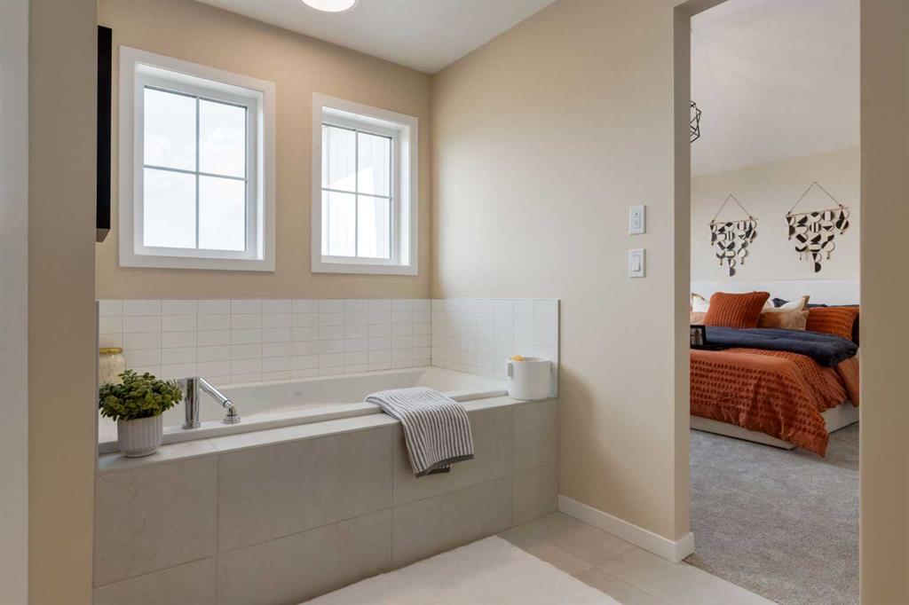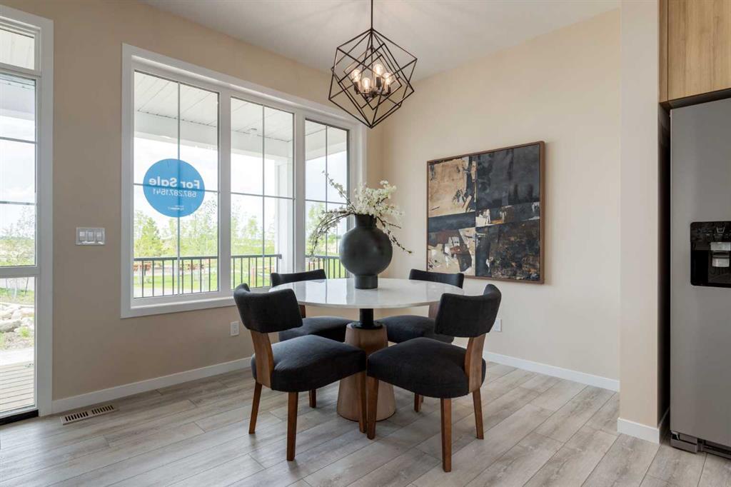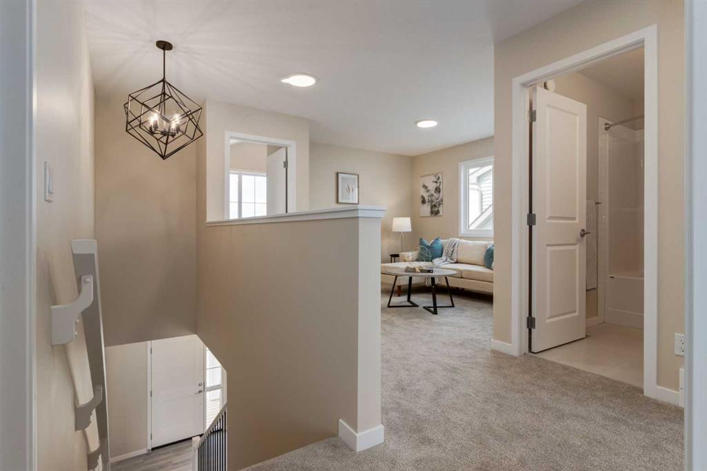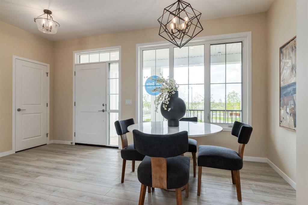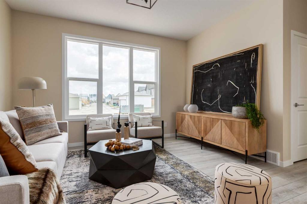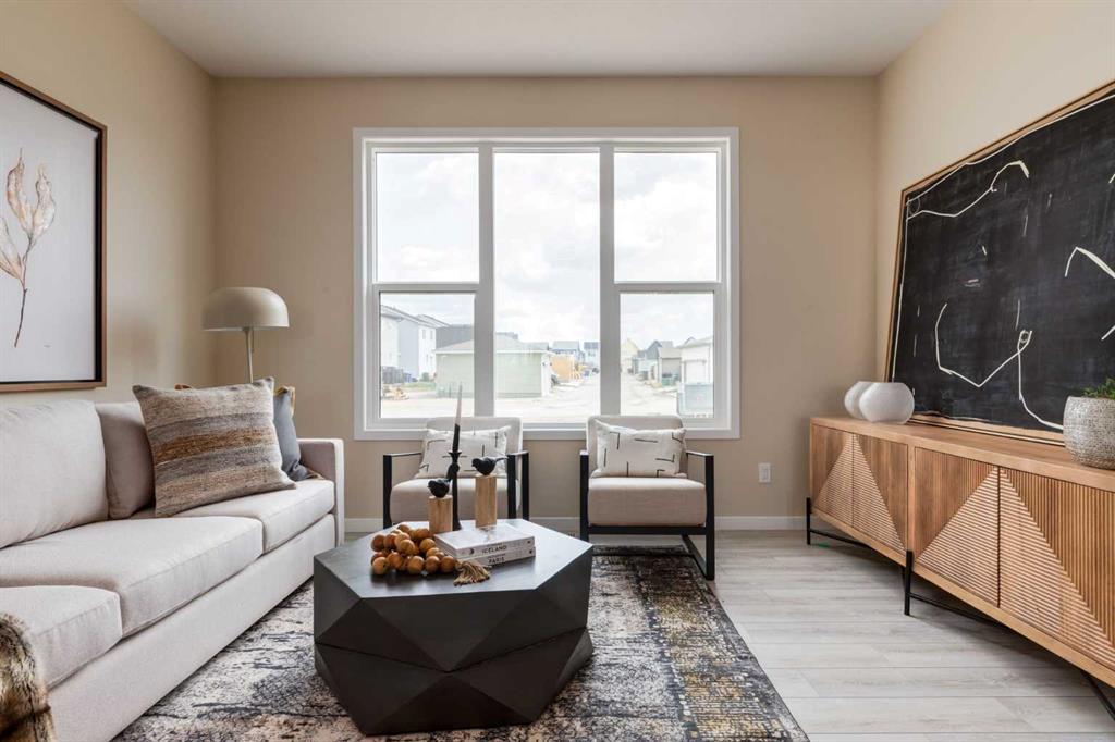 Welcome to The Copeland—a beautifully designed, family-forward home that blends functionality, flexibility, and style in all the right ways. Situated on a quiet street facing a large park, this home offers more than just a place to live—it delivers the kind of space, layout, and location that grows with you. From the moment you arrive, the curb appeal sets the tone. A charming front porch not only enhances the exterior but also creates the perfect morning coffee spot or a welcoming space to relax and watch the kids play in the park just out front. Inside, the main floor shines with oversized front and rear windows, letting natural light pour through the open-concept layout. The heart of the home is a striking galley-style kitchen that’s anything but standard. You'll love the two-toned cabinetry with timeless white lowers and rich wood uppers, sleek black subway tile backsplash, white quartz countertops, and a large central island—perfect for everything from prepping meals to helping with homework. A modern light fixture hangs above the dining space, adding a designer touch to your everyday moments. Just off the kitchen, a gracious back hall leads to the triple car garage and offers plenty of space for coats, backpacks, and muddy boots. Need an office, playroom, or guest room? The main floor flex space is ready for whatever your family needs today—and tomorrow. Throughout the main level, thoughtful touches like open railing to the upper floor elevate the overall feel. Upstairs, the layout is designed with families in mind. A spacious bonus room offers a second living space, ideal for movie nights or quiet reading. The vaulted owner’s suite is a true retreat with large windows, a walk-in closet, and a luxurious 5-piece ensuite featuring dual sinks, a soaker tub, and a separate shower. Winged secondary bedrooms are positioned for added privacy, and the conveniently located upper floor laundry room makes day-to-day chores that much easier. Whether you're hosting, relaxing, or simply living your daily routine, every inch of this home is thoughtfully planned to bring comfort & convenience. The triple car garage with a driveway means there's room for all your vehicles + guests vehicles, bikes, & storage needs. Light, bright, and just right—The Copeland is a place where your family can come together, spread out, & create lasting memories. Living in Vista Crossing means enjoying the best of both worlds: the convenience of city living just a short drive from Calgary, paired with the charm and slower pace of small-town life in Crossfield. This thoughtfully planned community fosters a strong sense of belonging and connection, where neighbours look out for one another and life revolves around family. Vista Crossing offers endless opportunities for recreation with its 4 kms of walking trails, 5 acres of protected wetlands, 20 acres of green spaces, and a community garden. Sports enthusiasts will love the mini soccer field, outdoor hockey rink, skateboard park, and sports fields.