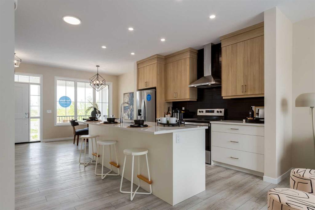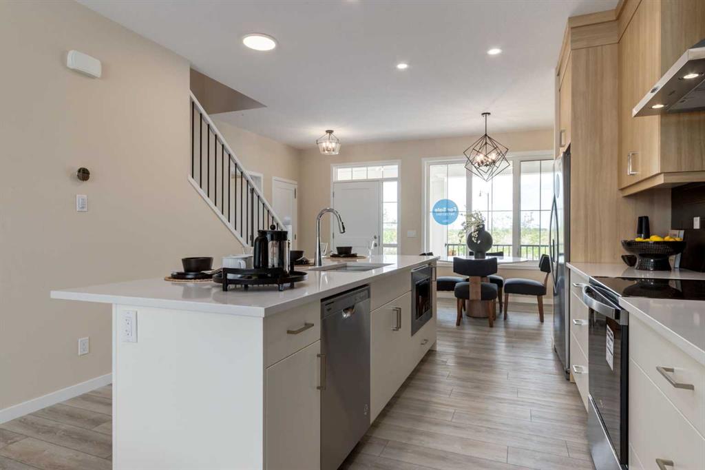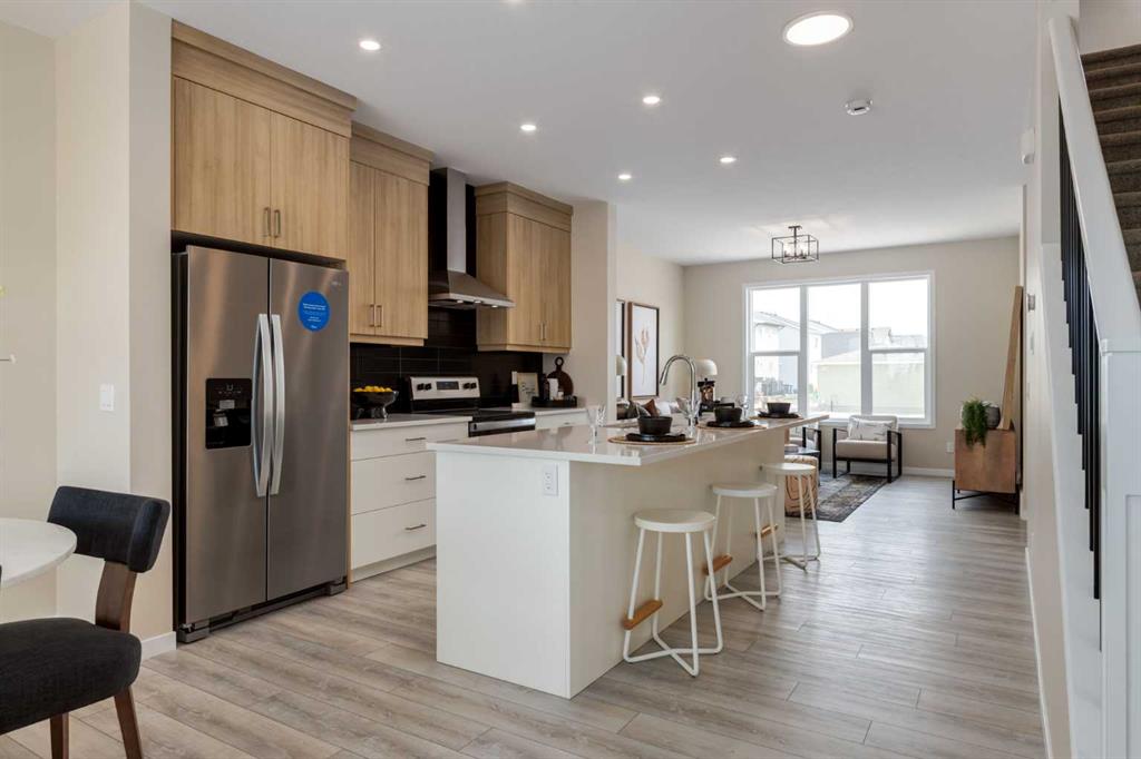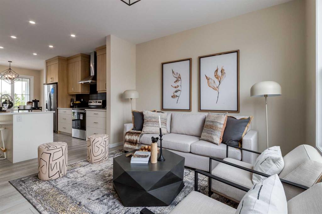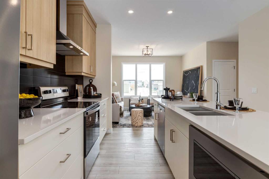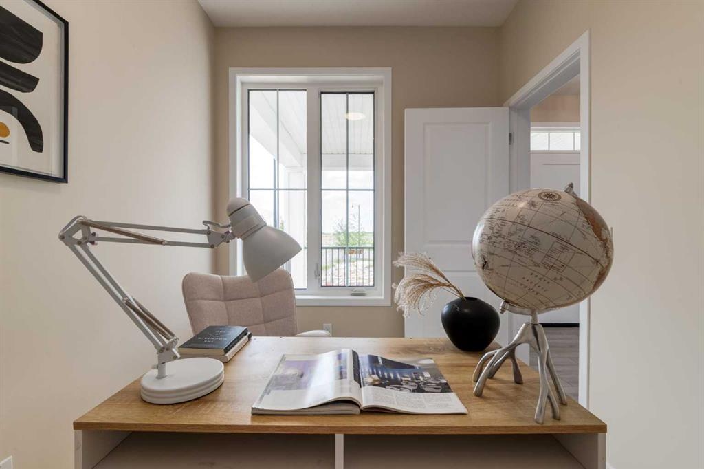 Welcome to The Copeland—a beautifully designed, family-forward home that blends functionality, flexibility, and style in all the right ways. Situated on a quiet street facing a large park, this home offers more than just a place to live—it delivers the kind of space, layout, and location that grows with you. From the moment you arrive, the curb appeal sets the tone. A charming front porch not only enhances the exterior but also creates the perfect morning coffee spot or a welcoming space to relax and watch the kids play in the park just out front. Inside, the main floor shines with oversized front and rear windows, letting natural light pour through the open-concept layout. The heart of the home is a striking galley-style kitchen that’s anything but standard. You'll love the two-toned cabinetry with timeless white lowers and rich wood uppers, sleek black subway tile backsplash, white quartz countertops, and a large central island—perfect for everything from prepping meals to helping with homework. A modern light fixture hangs above the dining space, adding a designer touch to your everyday moments. Just off the kitchen, a gracious back hall leads to the triple car garage and offers plenty of space for coats, backpacks, and muddy boots. Need an office, playroom, or guest room? The main floor flex space is ready for whatever your family needs today—and tomorrow. Throughout the main level, thoughtful touches like open railing to the upper floor elevate the overall feel. Upstairs, the layout is designed with families in mind. A spacious bonus room offers a second living space, ideal for movie nights or quiet reading. The vaulted owner’s suite is a true retreat with large windows, a walk-in closet, and a luxurious 5-piece ensuite featuring dual sinks, a soaker tub, and a separate shower. Winged secondary bedrooms are positioned for added privacy, and the conveniently located upper floor laundry room makes day-to-day chores that much easier. Whether you're hosting, relaxing, or simply living your daily routine, every inch of this home is thoughtfully planned to bring comfort & convenience. The triple car garage with a driveway means there's room for all your vehicles + guests vehicles, bikes, & storage needs. Light, bright, and just right—The Copeland is a place where your family can come together, spread out, & create lasting memories. Living in Vista Crossing means enjoying the best of both worlds: the convenience of city living just a short drive from Calgary, paired with the charm and slower pace of small-town life in Crossfield. This thoughtfully planned community fosters a strong sense of belonging and connection, where neighbours look out for one another and life revolves around family. Vista Crossing offers endless opportunities for recreation with its 4 kms of walking trails, 5 acres of protected wetlands, 20 acres of green spaces, and a community garden. Sports enthusiasts will love the mini soccer field, outdoor hockey rink, skateboard park, and sports fields.