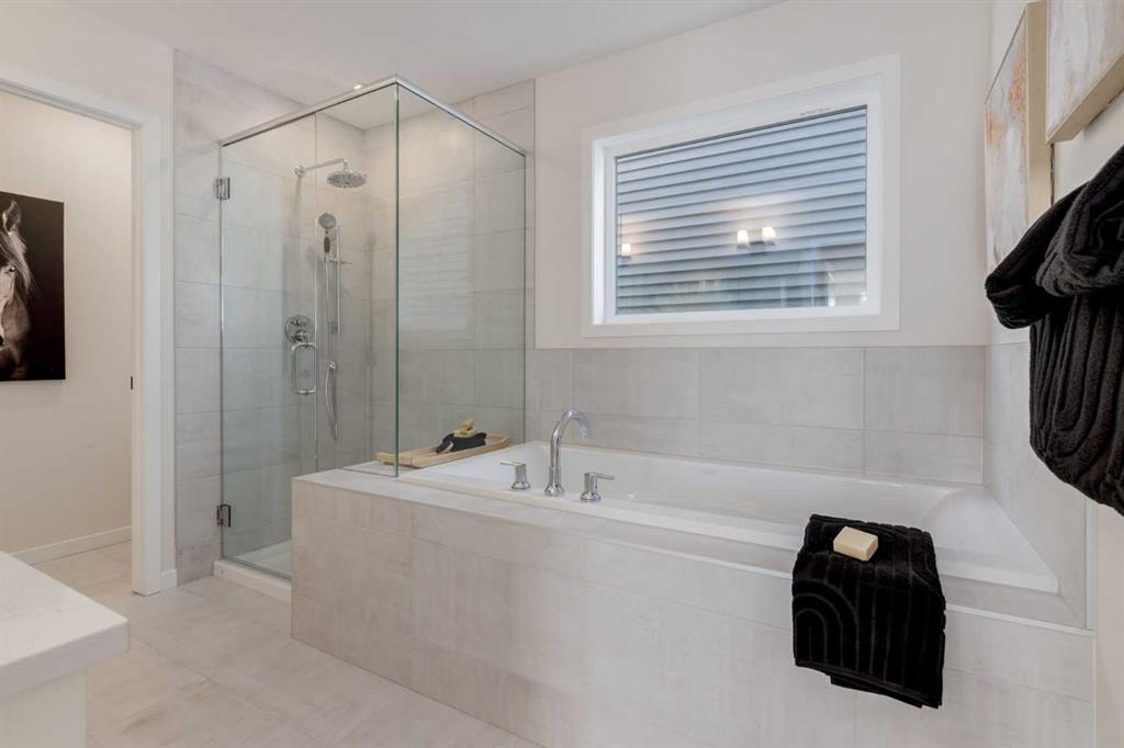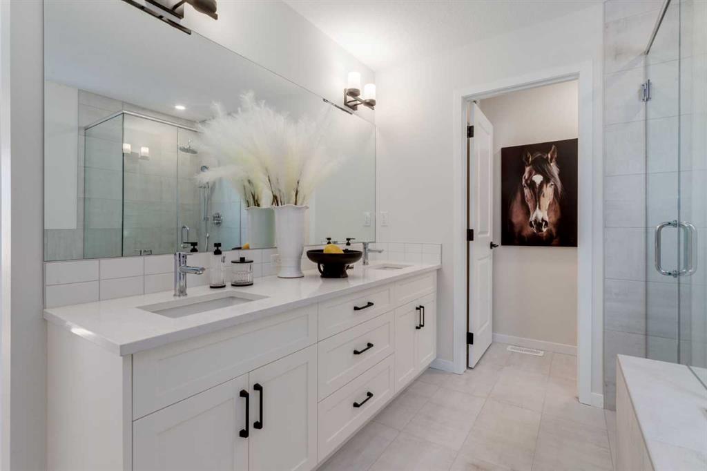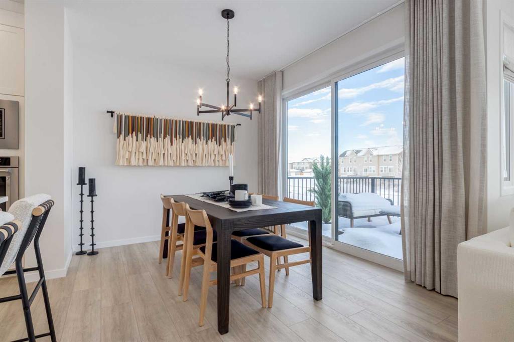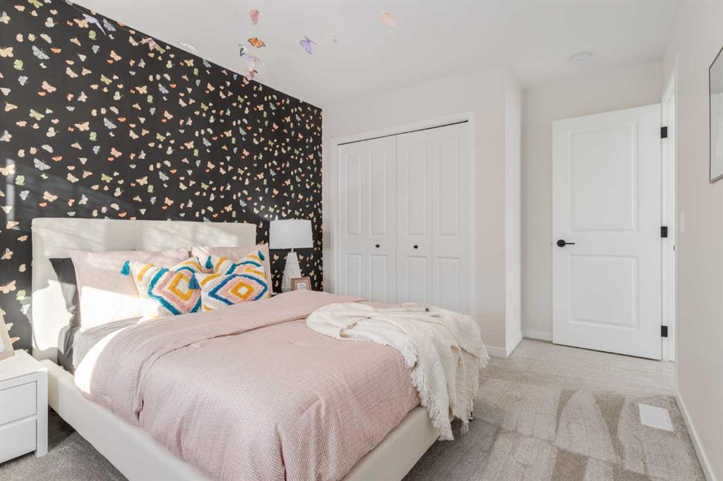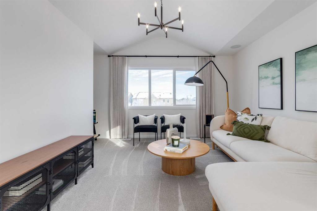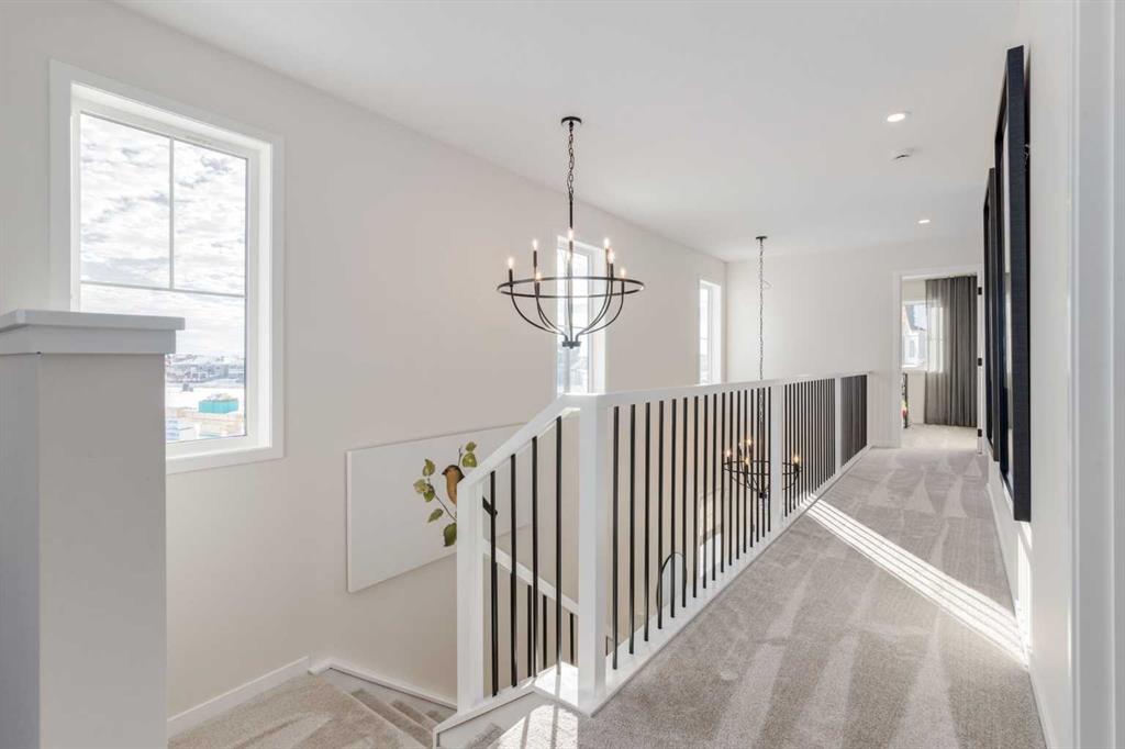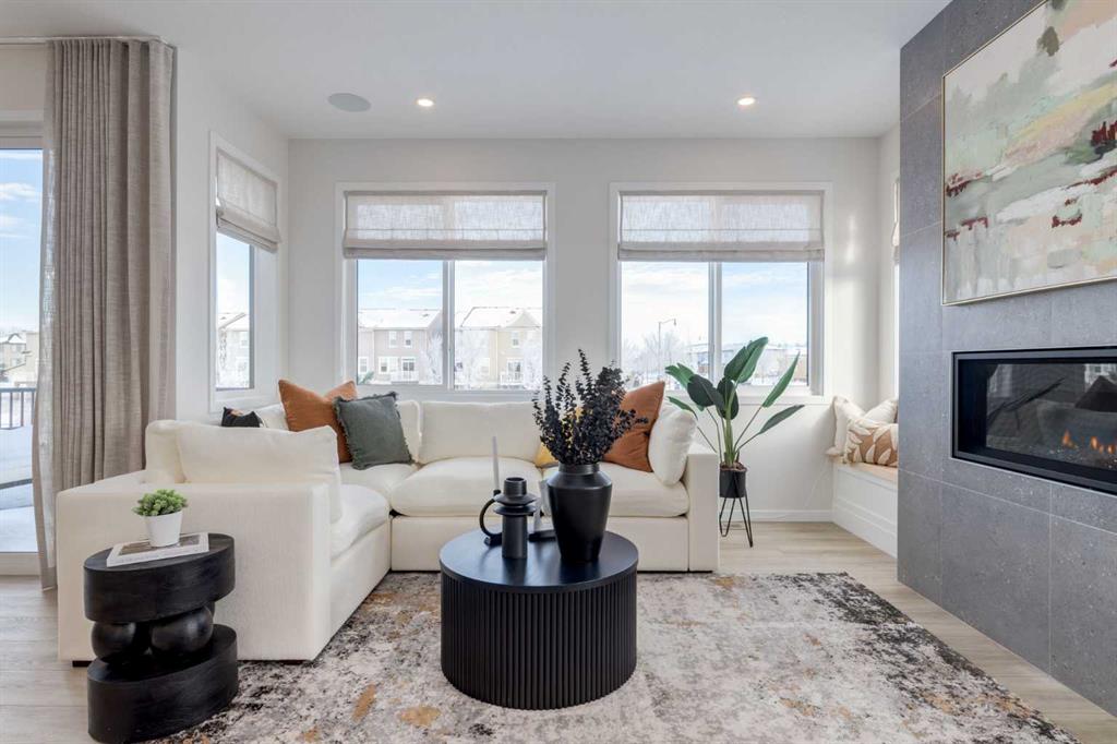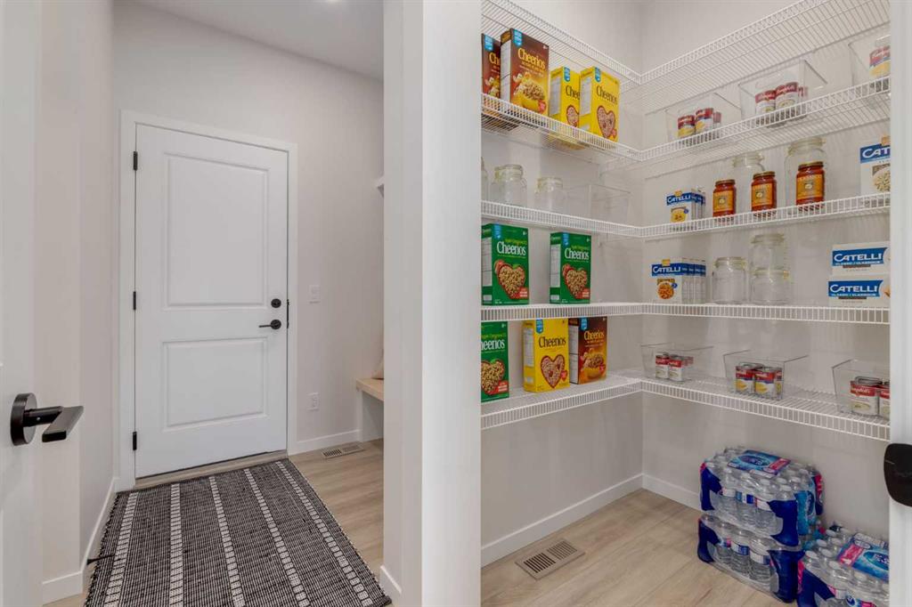 Meet The Strickland—a thoughtfully designed 2,093 sq. ft. home that blends everyday function with elevated finishes. With 3 bedrooms, 2.5 baths, a double attached garage, and a rear wood deck, this plan is built for modern family living and easy entertaining. A grand entryway makes a great first impression, paired with an oversized front closet that keeps coats, boots, and gear out of sight. At the back of the home, the mudroom with built-in locker creates the perfect drop zone for backpacks and busy routines. The main floor is designed around connection, with a centralized kitchen that links the living and dining areas so you can cook, visit, and relax in one open, welcoming space. The gourmet kitchen upgrade is the showpiece: full-height cabinetry, quartz countertops, two sets of pot & pan drawers, and a statement chimney hood fan framed by open shelving and finished with a tile backsplash to the ceiling. The premium KitchenAid appliance package includes a built-in wall oven & microwave, 5-burner gas cooktop, French door/bottom freezer fridge, and dishwasher. An oversized island is highlighted by upgraded matte black pendant lighting, and a smart walk-through pantry keeps clutter tucked away and grocery days simple. Luxury vinyl plank flooring spans the main level, with upgraded windows and an electric fireplace adding warmth. Upstairs, the thoughtful plan continues. A vaulted bonus room becomes your private family hub—movie nights, a kids’ lounge, or a quiet retreat away from the main level. Second-floor laundry is centrally located to simplify day-to-day life. The front kids’ wing features two spacious secondary bedrooms with easy access to the family bath, while the primary suite is a true escape with a large walk-in closet and a spa-inspired 5-piece ensuite with generous vanity space and storage. Outside, enjoy summer evenings and weekend BBQs on your rear wood deck and appreciate the durability and curb appeal of a Hardie board exterior. Modern details continue with metal railings on the stairs and upper floor. Future-focused features include solar-ready infrastructure with 200-amp service, a 64-panel breaker, and conduit to the roof. Montrose is a master-planned community on High River’s south side with parks, pathways, and a signature pond—great for walks, biking, and year-round time outdoors. Enjoy quick access to schools, recreation, and everyday amenities. A home that’s stylish, bright, and built around real life—The Strickland is one you’ll want to experience in person. **Photos are from the show home/previous builds to demonstrate quality of construction & finishes and may not be an exact representation of this home**