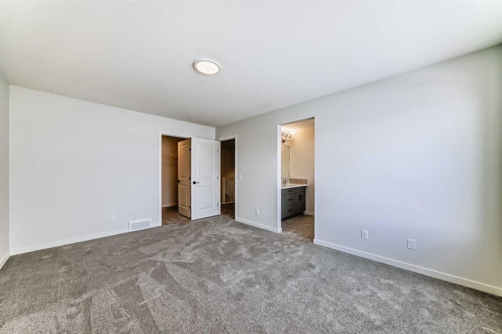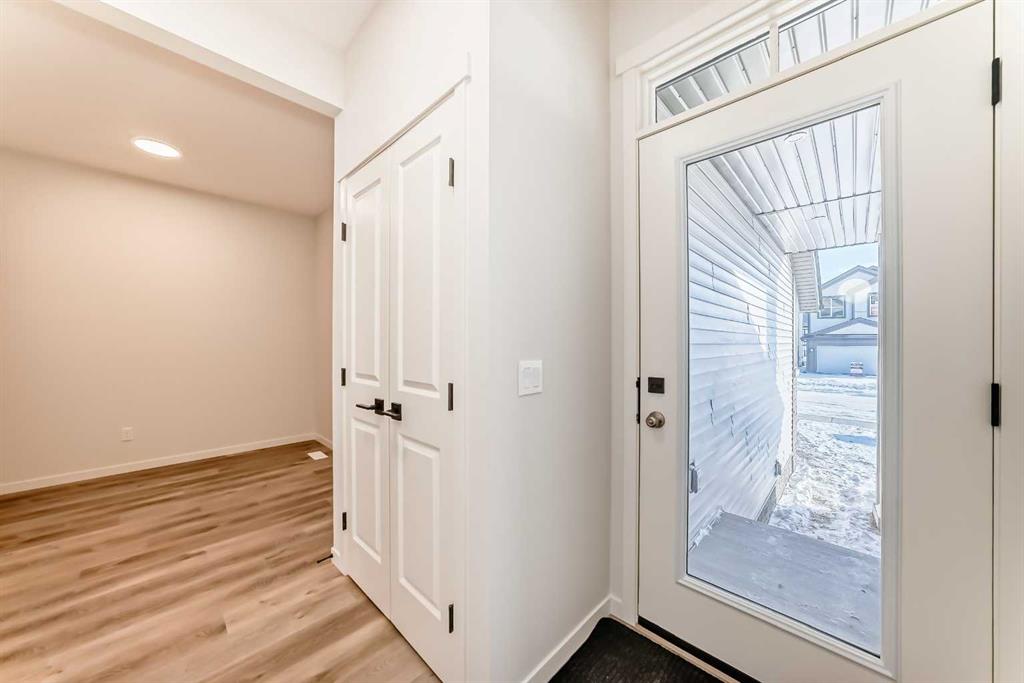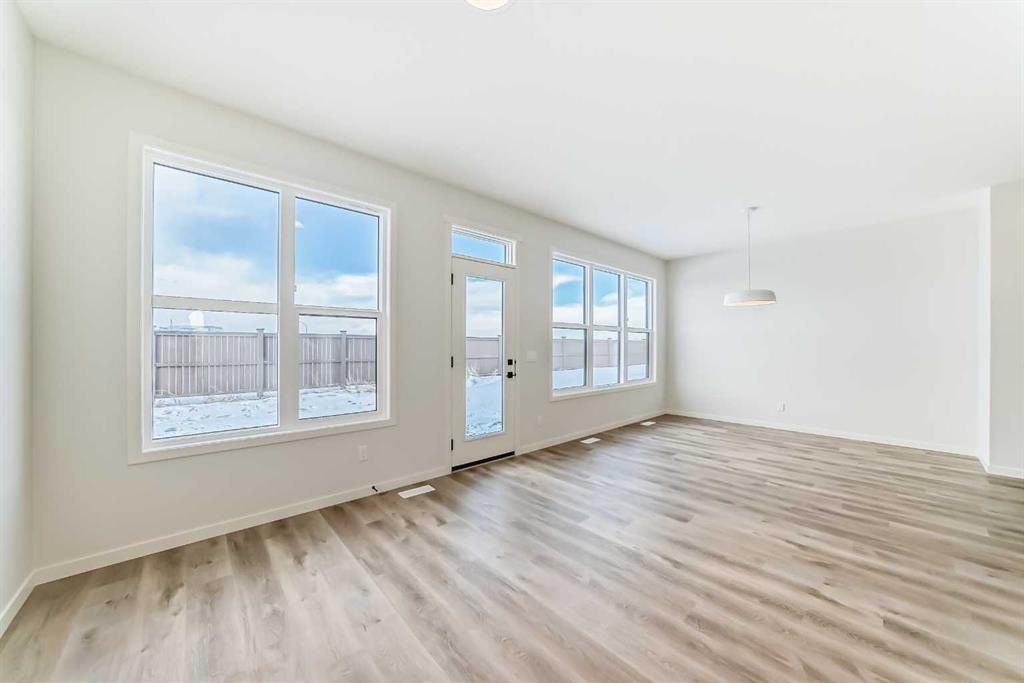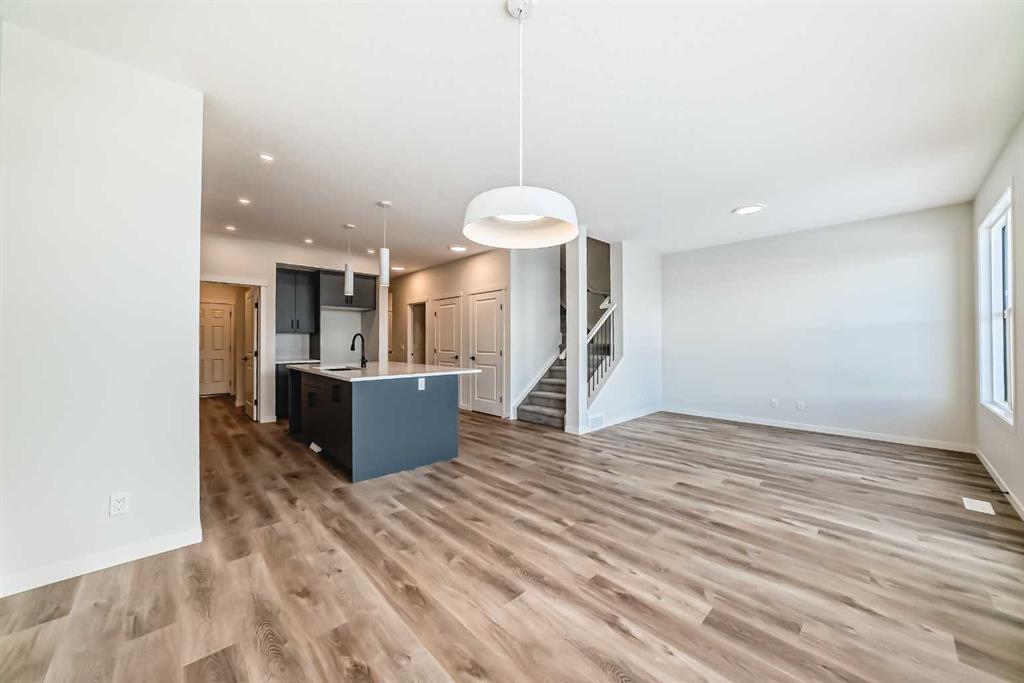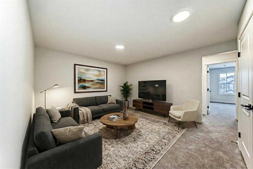 Welcome to The "Luna" a beautifully designed home in the vibrant, garden-to-table community of Rangeview—where modern style, smart function, and everyday comfort come together in a layout that simply lives well. From the moment you step inside, the home feels bright and open thanks to wall-to-wall windows and an airy main floor design that’s ideal for both busy weekdays and easy entertaining. At the front of the home, an open flex room adds incredible versatility, perfect as a home office, reading nook, homework zone, or a kids’ playroom, giving you a dedicated space that can evolve with your lifestyle. The heart of the home is the upgraded kitchen, designed to look sharp and work hard. You’ll love the modern grey flat panel cabinetry raised to the bulkhead, paired with crisp white quartz countertops and sleek black hardware for a clean, contemporary finish. The upgraded kitchen layout offers improved flow and function, while a statement chimney hood fan is framed by a modern vertically laid, stacked subway tile backsplash that adds just the right amount of texture and style. Light wood grain vinyl plank flooring runs throughout the main level, bringing warmth and contrast to the modern palette and tying the space together beautifully. The open-concept design keeps the kitchen connected to the dining area and living room so you can cook, host, and relax without missing a beat—made even better by all the natural light pouring in throughout the day. Upstairs is where this floor plan really shines, offering the kind of space and separation families appreciate. A large central entertainment room/bonus room becomes the natural hub of the upper level, ideal for movie nights, a gaming setup, a play area, or a cozy lounge for teens and guests. It’s the perfect “second living room” that keeps the main floor tidy and gives everyone a place to spread out. The primary suite feels like a true retreat, offering plenty of space for a king sized bed and furniture, along with a generous walk in closet and a spa inspired ensuite where you can unwind at the end of the day. Two additional bedrooms are thoughtfully positioned to offer comfort and privacy, each with excellent natural light and enough room for growing kids, guests, or a dedicated second office. A well appointed secondary bathroom completes the upper level, keeping daily routines easy and organized. Downstairs, the home continues to deliver long-term value with a separate entrance and 9’ foundation height, offering exciting flexibility for the future, whether your vision includes additional living space, extended family options, or potential for a future basement suite (subject to approval and permitting by the city/municipality). Outside, the west-facing backyard is a standout feature, perfect for soaking up afternoon sun, enjoying evening BBQs, or creating a patio and outdoor living space you’ll actually use all summer long. Set in Rangeview, a community known for its welcoming vibe!