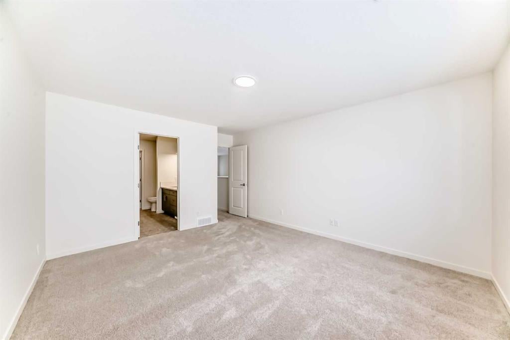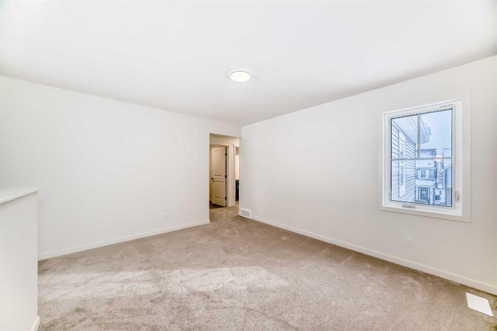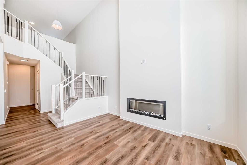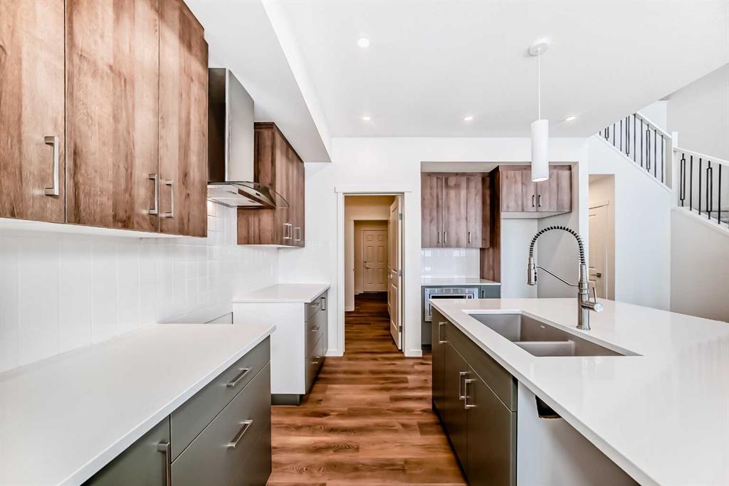 Welcome to the “Grada” by Hopewell Residential, where elevated design and everyday functionality come together in Calgary’s visionary garden-to-table community of Rangeview. Offering 2,119 sq. ft., 4 total bedrooms, and a thoughtfully designed layout that balances style with practicality, this is a home that feels as good as it looks. From the moment you step inside, you’ll appreciate how well this home is designed for modern family living. Just off the front entry, a main floor bedroom is paired with a convenient 3-piece bathroom, creating exceptional flexibility for a variety of lifestyles. Whether used for multi-generational living, a live-in nanny, overnight guests, or even as a private home office, this space adds versatility that is increasingly hard to find. As you move further into the home, the main floor opens beautifully into a spacious dining area and inviting lifestyle room, creating an effortless flow for both everyday routines and entertaining. The open-to-above living room creates a dramatic sense of space, while floor-to-ceiling windows flood the home with natural light. A beautiful fireplace anchors the room, adding warmth and character to this impressive central gathering space. The kitchen is a true standout, blending contemporary style with timeless finishes. Designed to impress, it features quartz countertops, a large central island, built-in microwave, upgraded storage drawers, and a striking stand-alone hood fan wrapped in a classic white 4x4 backsplash that adds texture and charm. The two-tone cabinetry offers a designer look with modern green lower cabinets paired with wood grain upper cabinetry, creating a warm and sophisticated aesthetic that sets this home apart. Upstairs, the thoughtful layout continues with a central bonus room overlooking the main living space below and benefiting from the home’s oversized two-storey windows, which fill the upper level with light and create an airy, open feel. You’ll also find three spacious bedrooms, including a well-appointed primary retreat featuring a step-in shower for a spa-inspired feel. A full bathroom and conveniently located upper floor laundry. The lower level provides excellent future potential with a 9-foot foundation, giving you flexibility to expand your living space over time or explore the possibility of a secondary suite (a secondary suite would be subject to approval and permitting by the city/municipality). Located in Rangeview, one of Calgary’s most unique new southeast communities, this home offers more than just beautiful interior finishes—it offers a lifestyle rooted in connection, nature, and community. Designed around a garden-to-table vision, Rangeview brings residents together with thoughtfully planned green spaces, pathways, gathering areas, and a strong sense of belonging. It’s the perfect setting for families looking for a fresh start in a neighbourhood built with lifestyle in mind. Discover the perfect blend of comfort, style, and community with The Grada in Rangeview.